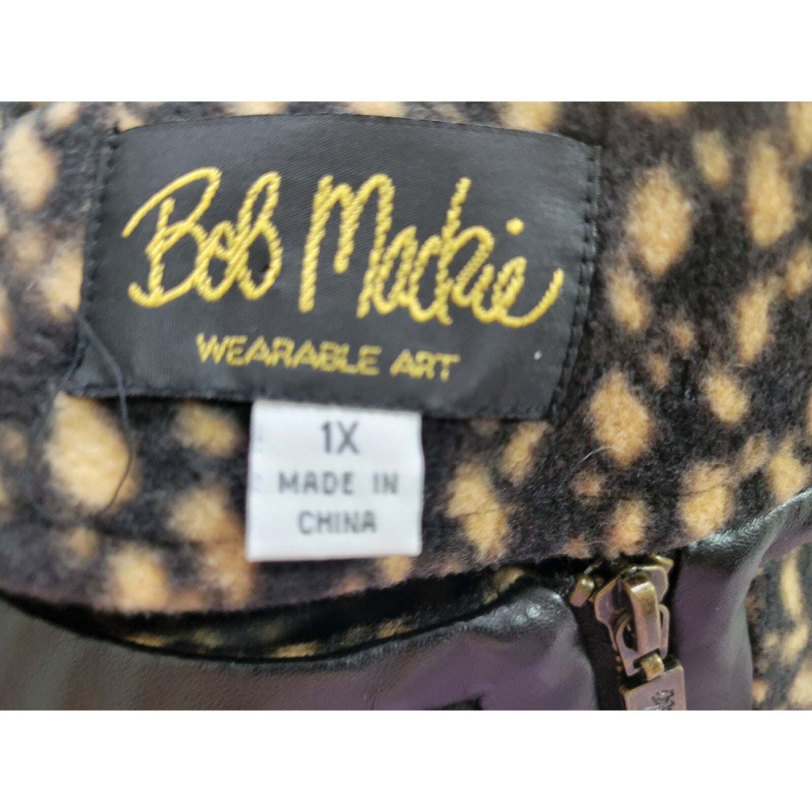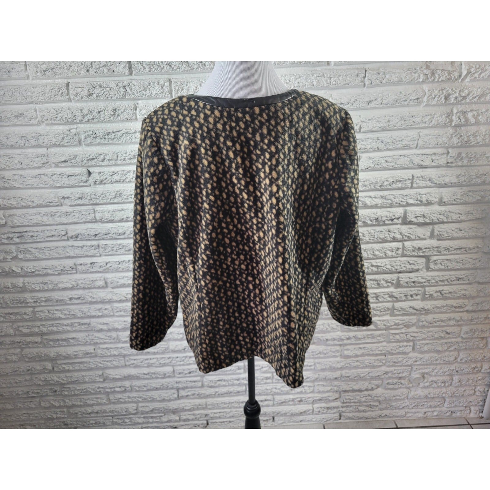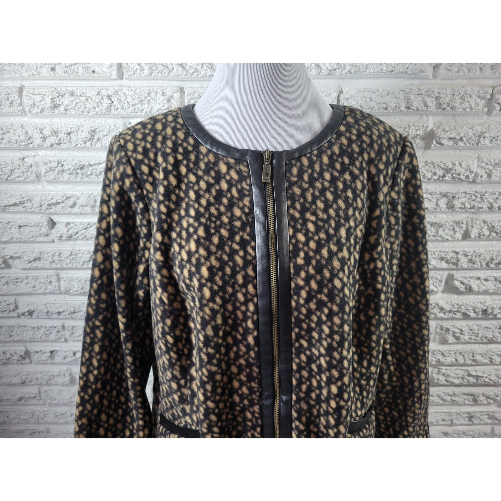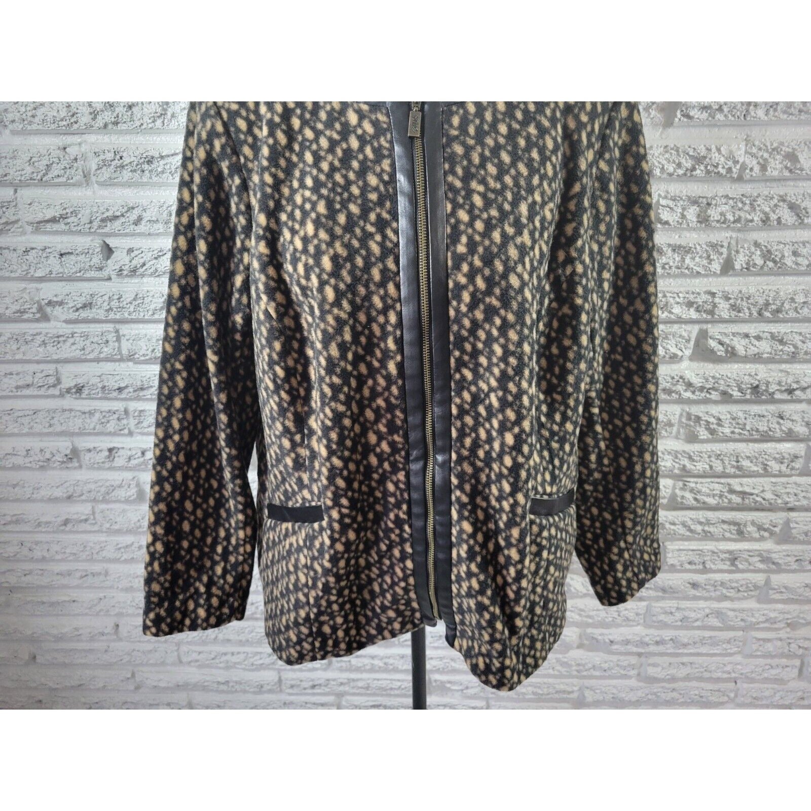 Bob Mackie Wearable Art Womens Jacket 1X Plus Full Zip Fleece Black Animal Print