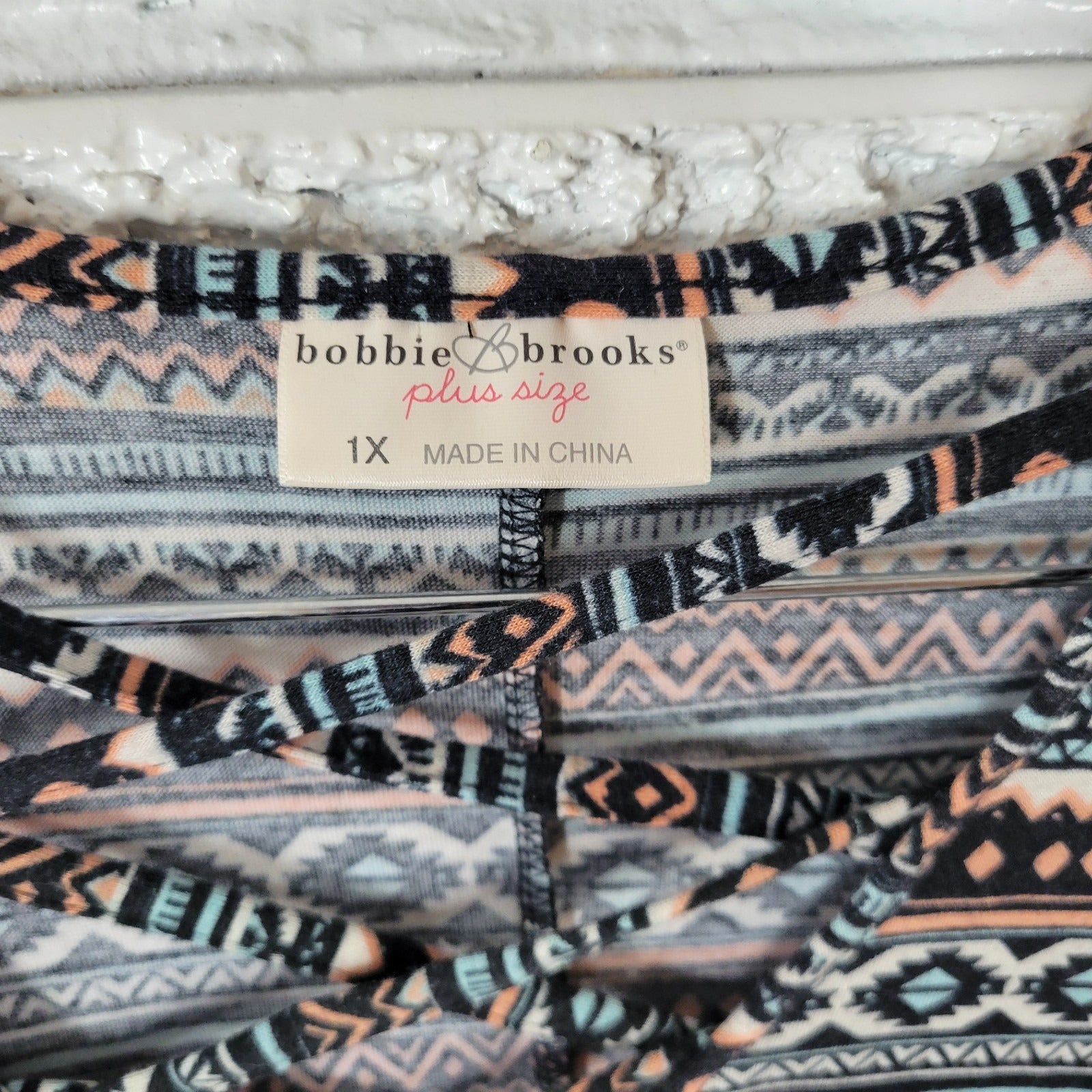 This Bobbie Brooks Women's Top in size 1X Plus is a stylish and comfortable tunic in black /pink with a geometric pattern. It features a lattice neck, sleeveless design, and pullover closure, making it ideal for travel and casual occasions. Made from a polyester blend with stretch, this blouse is machine washable and perfect for all seasons. The addition of pockets adds both functionality and style to this versatile piece from the reputable brand Bobbie Brooks.