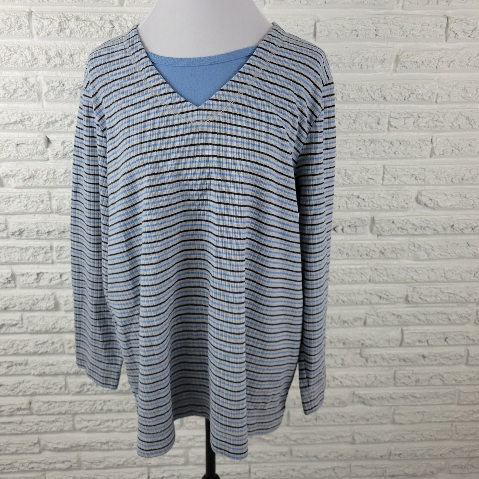 Bobbie Brooks Women Top 22 24 Plus Long Sleeve Pullover Blue Stripe Heavy Knit