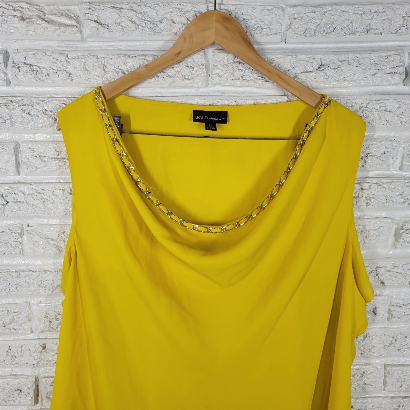 Bold Elements Womens Top 2X Plus Sleeveless Yellow Cowl Chain Neck