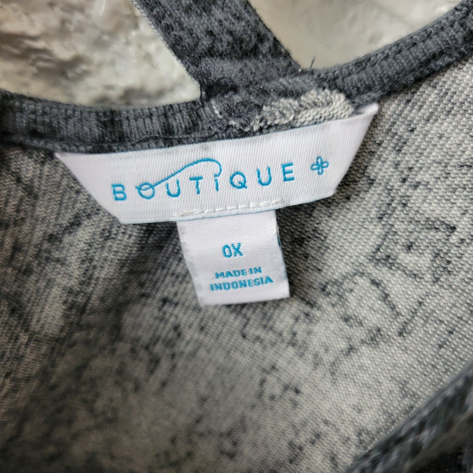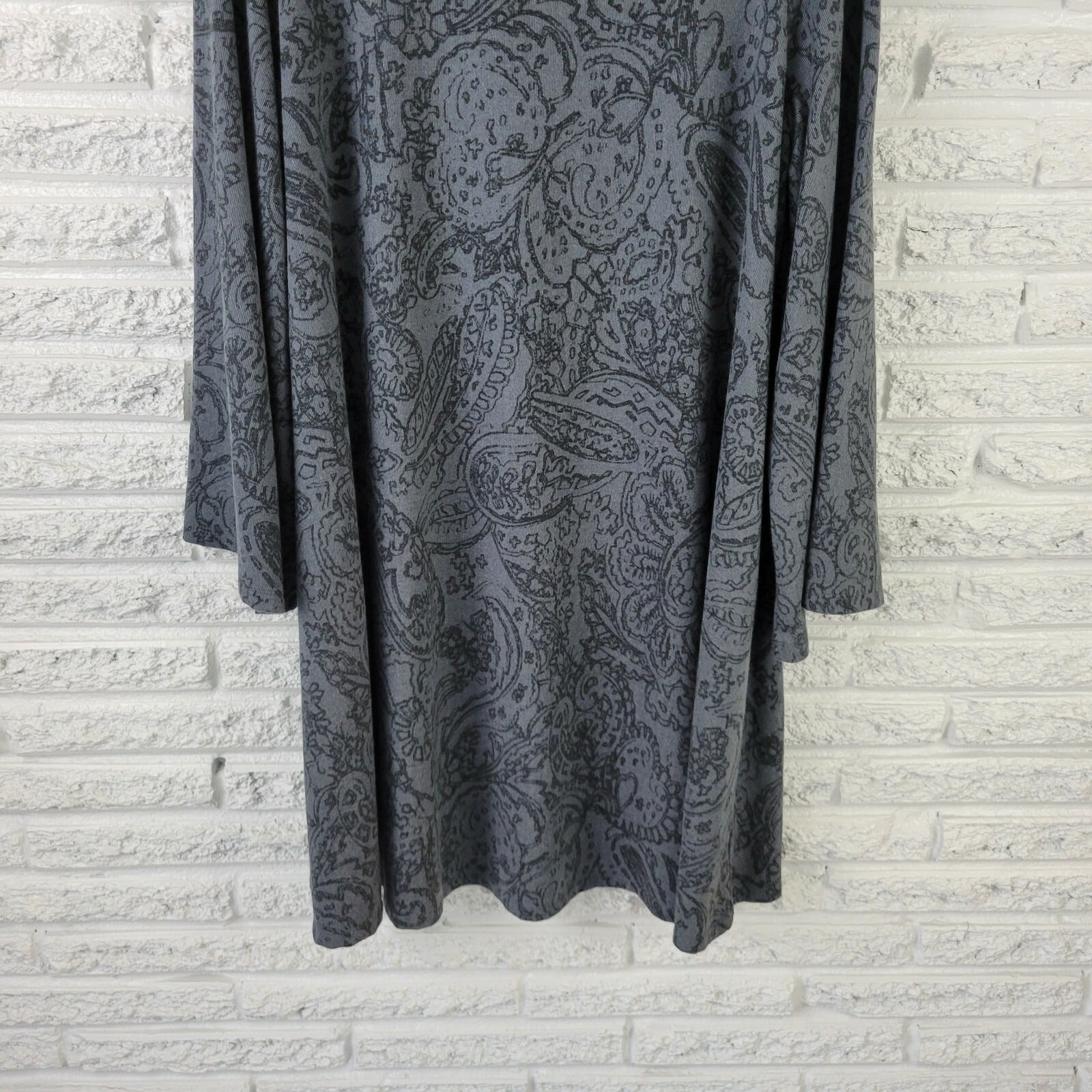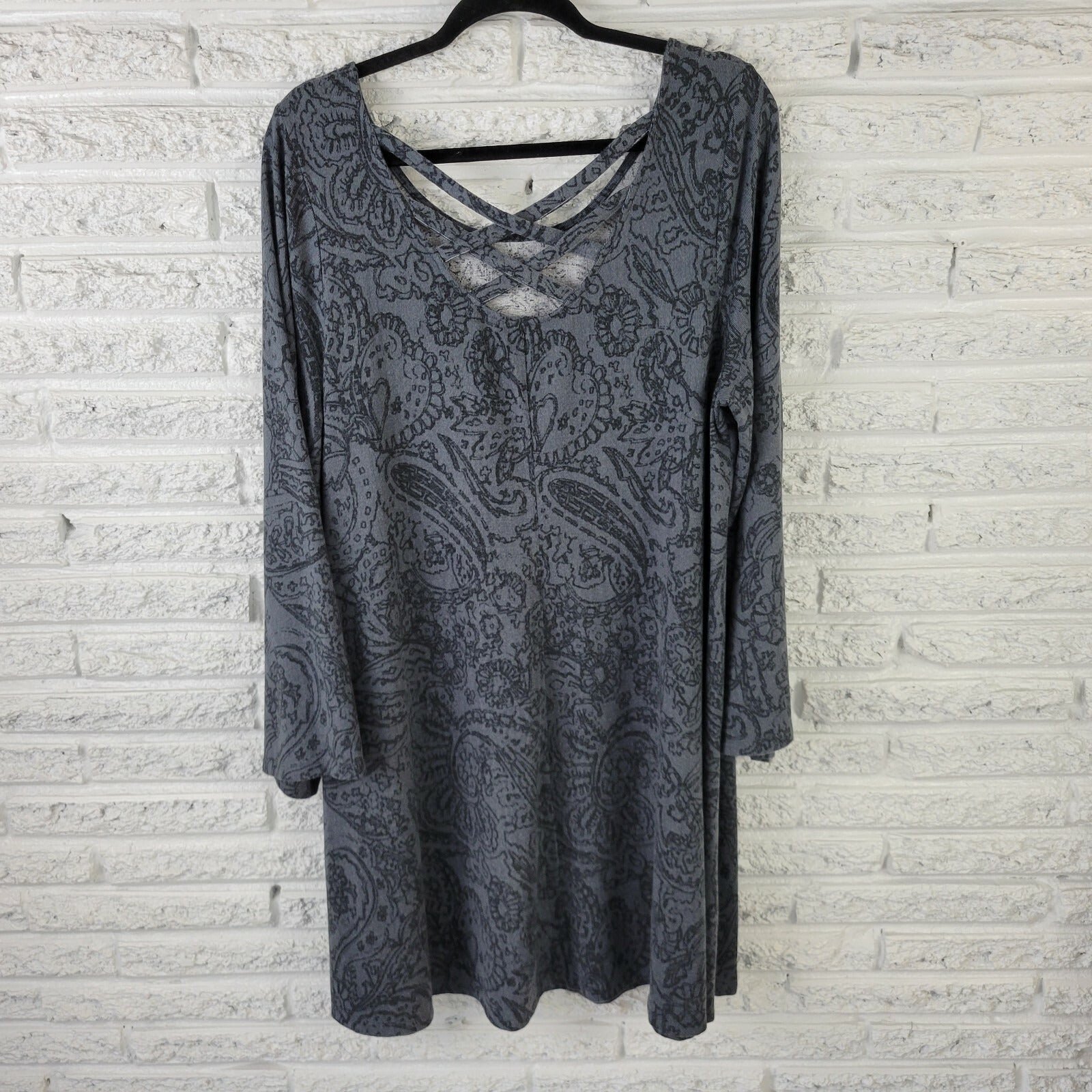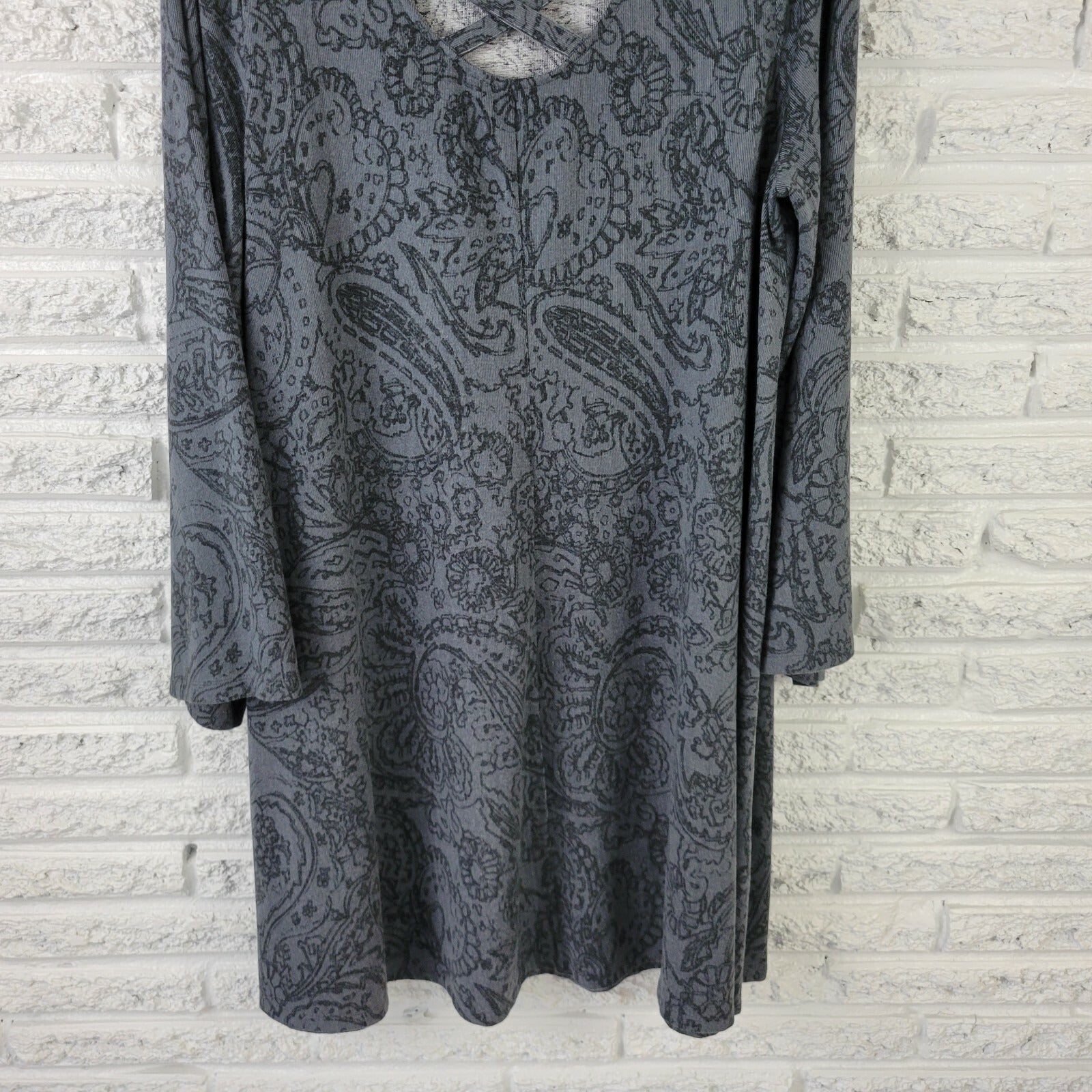 Boutique Women Dress 0X Plus Long Sleeve Gray Paisley Lattice Back Knee Length