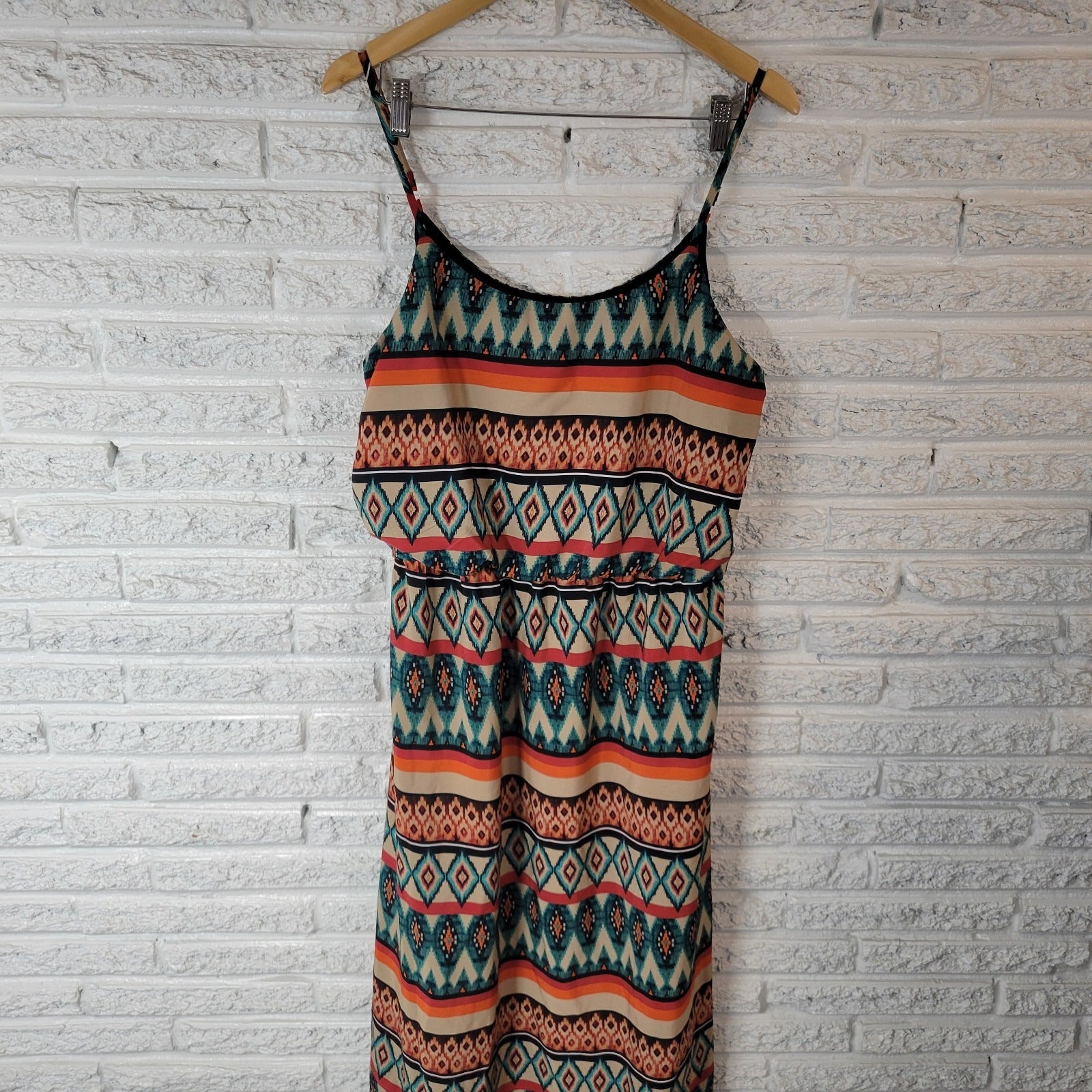 By & By Womens Dress Extra Large Slip Sheath Blue Red Geometric Spaghetti Strap