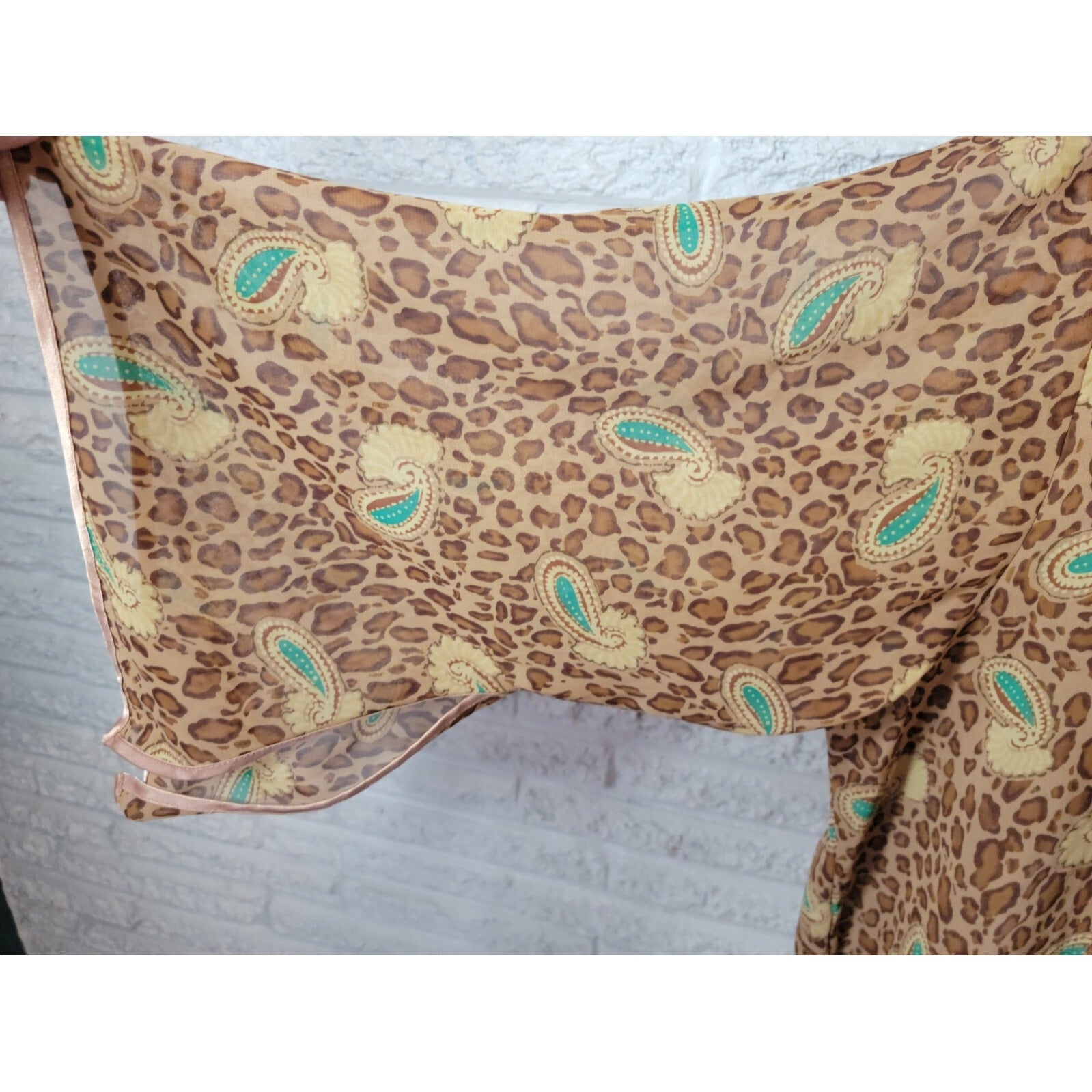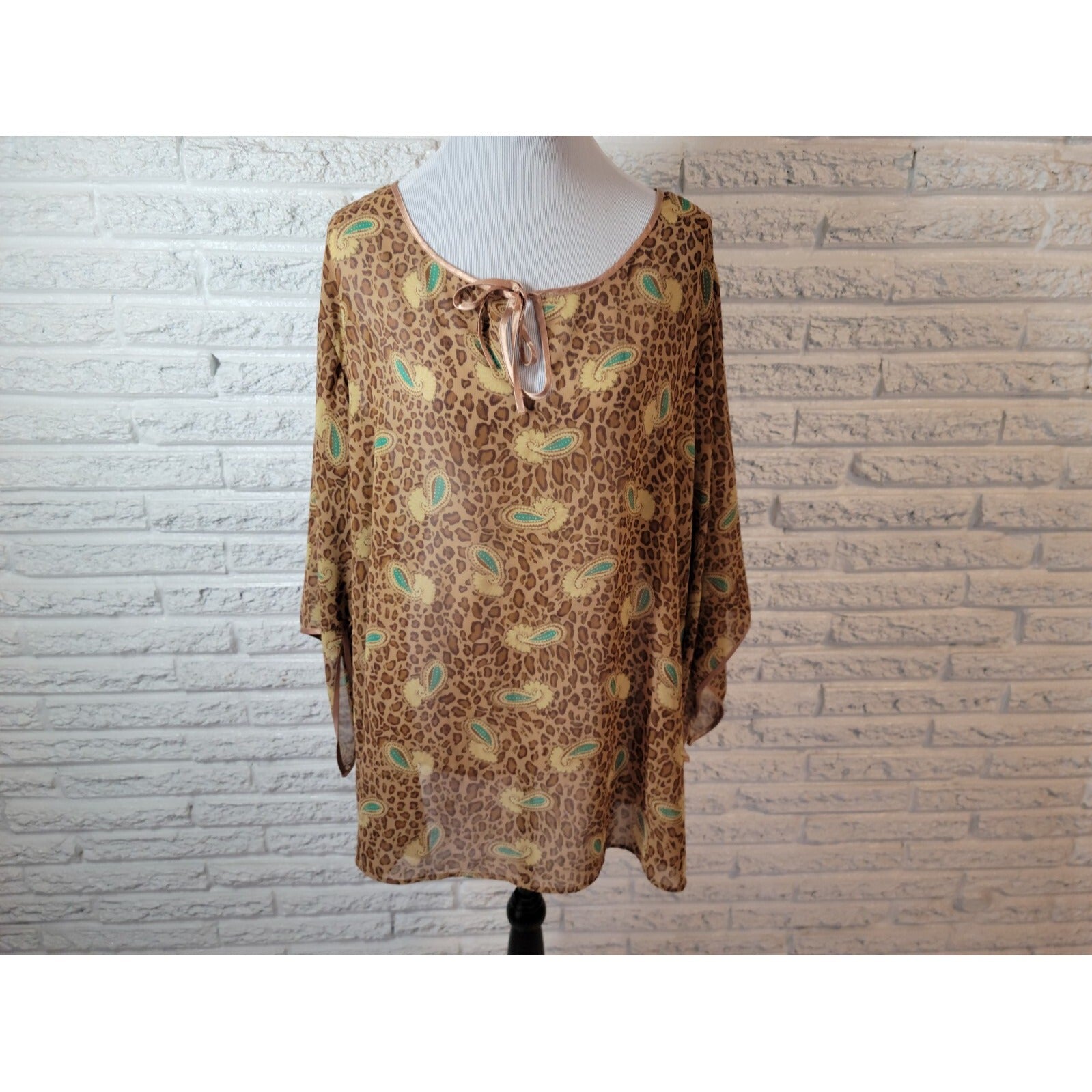 Cabernet Women Pajama Top 2X Plus Slit 3/4 Sleeve Tan Animal Print Sheer Sexy