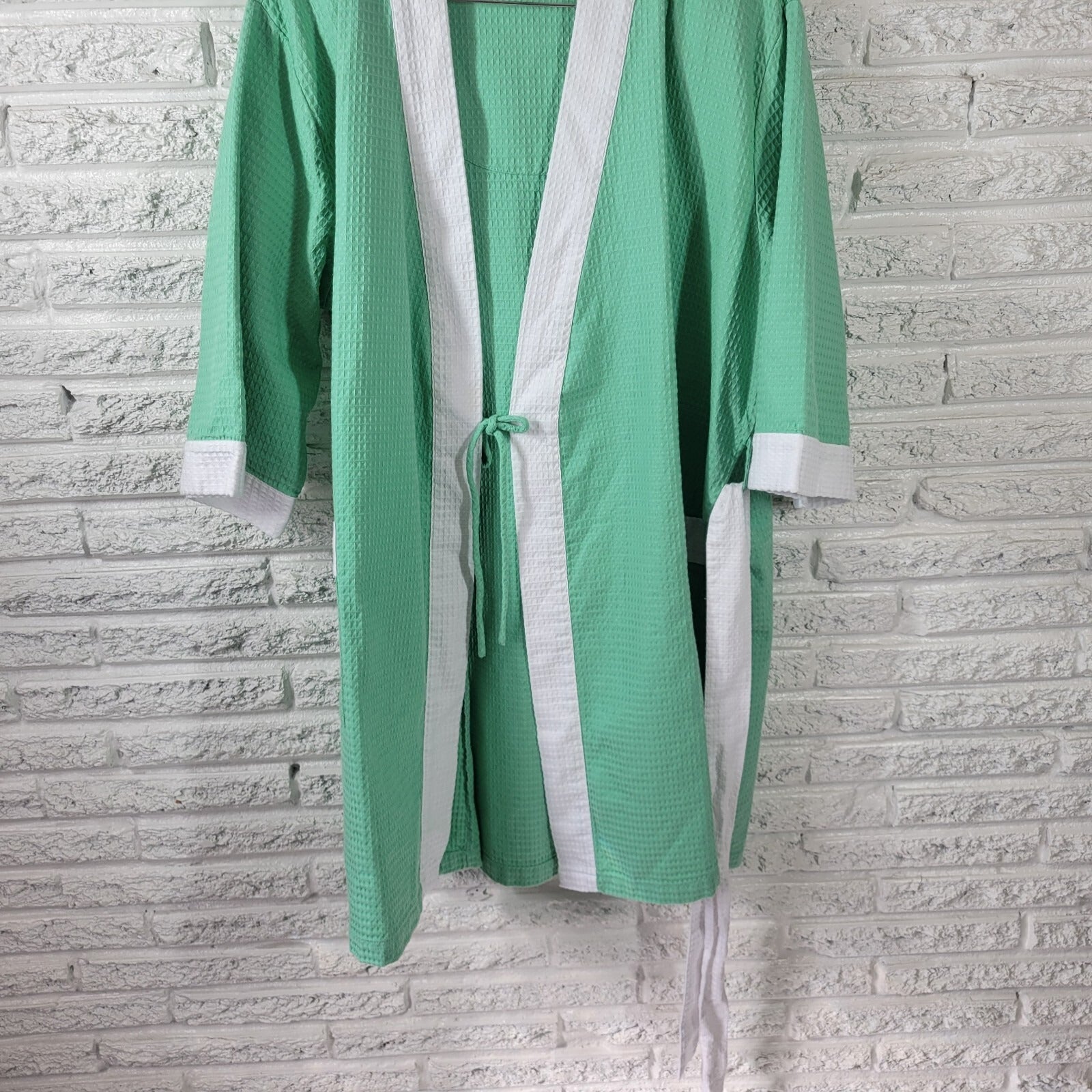 Cabernet Womens Robe Extra Large XL 3/4 Sleeve Green Loungewear Sash Waffle