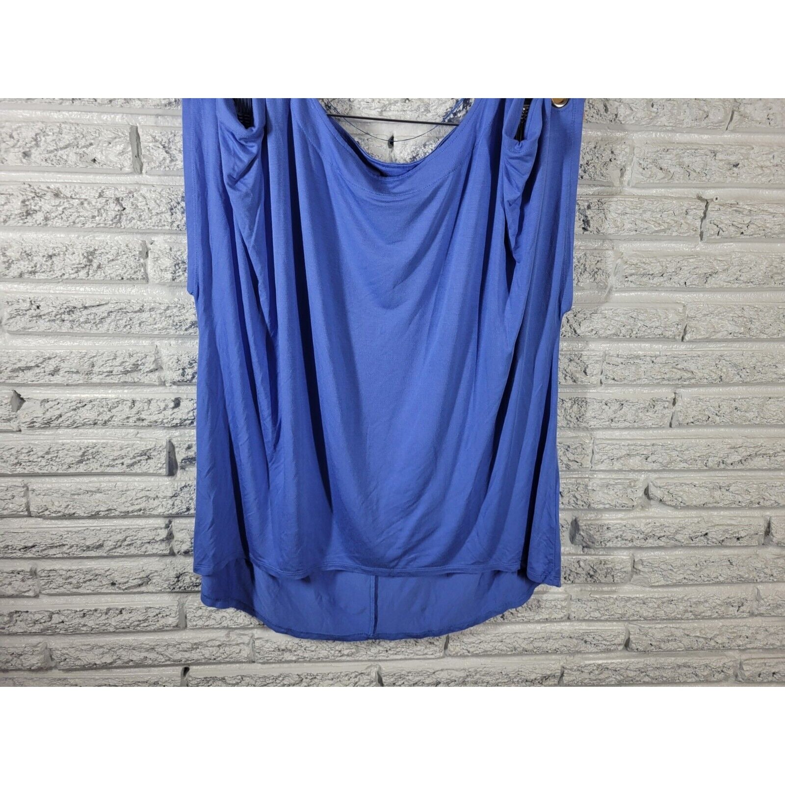 Cable Gauge Womens Top 1X Plus Sleeveless Cold Shoulder Grommets Blue Stretchy