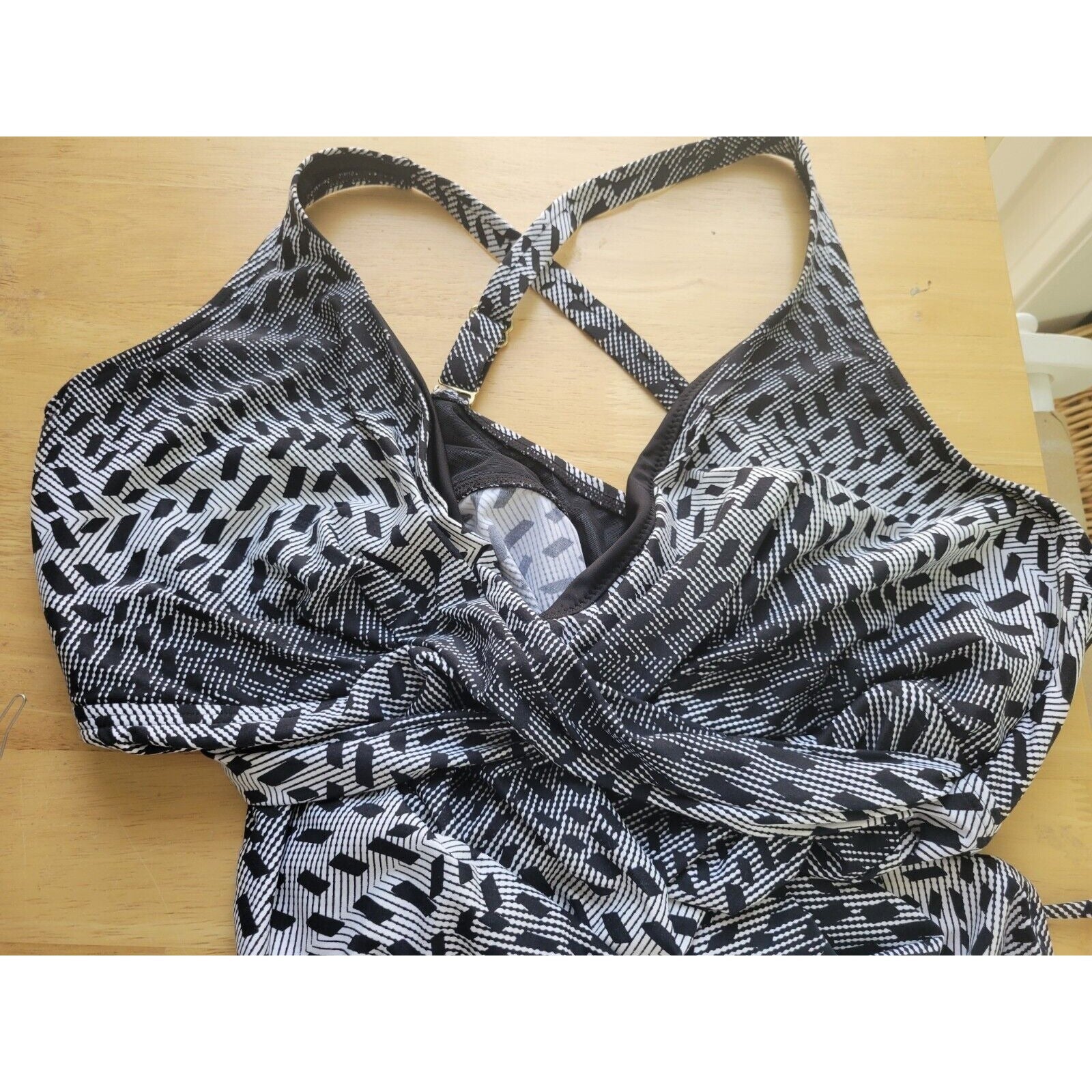 Make a statement at the beach with this Captiva Christina one-piece swimsuit in size 2X. The gray color and criss-cross back design add a touch of elegance to this plus-size swimsuit. The wide straps and adjustable strap ensure a comfortable and secure fit for all-day wear. This swimsuit features a built-in bra and stretch material for added comfort. Hand wash only to keep it looking its best. Made in China, this swimsuit is perfect for any woman who wants to look and feel her best while at the beach.