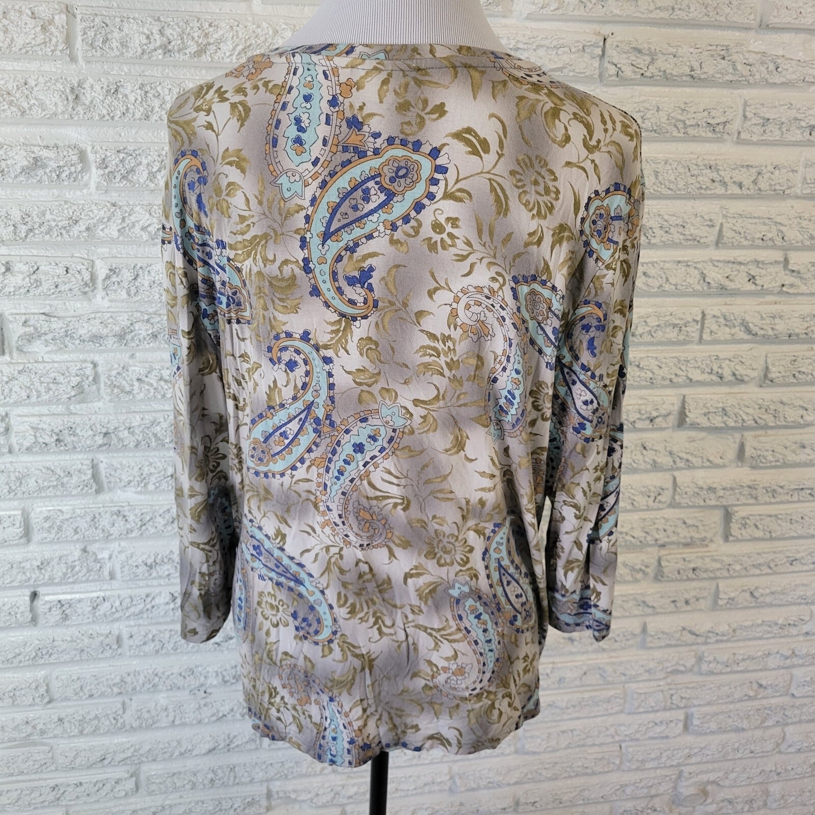 Caribbean Joe Womens Top Extra Large XL 3/4 Sleeve Blue Green Paisley Comfy
