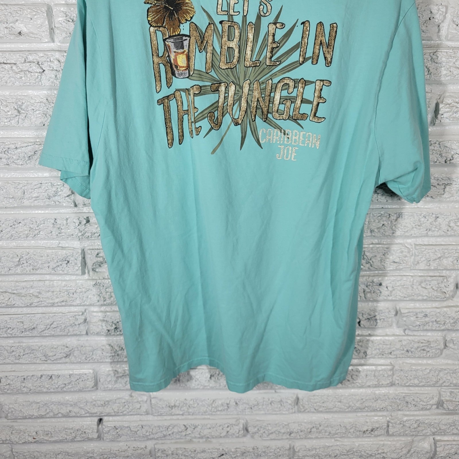 Caribbean Joe Womens Top XL Tee Short Sleeve Blue Lets Rumble in Jungle Cotton