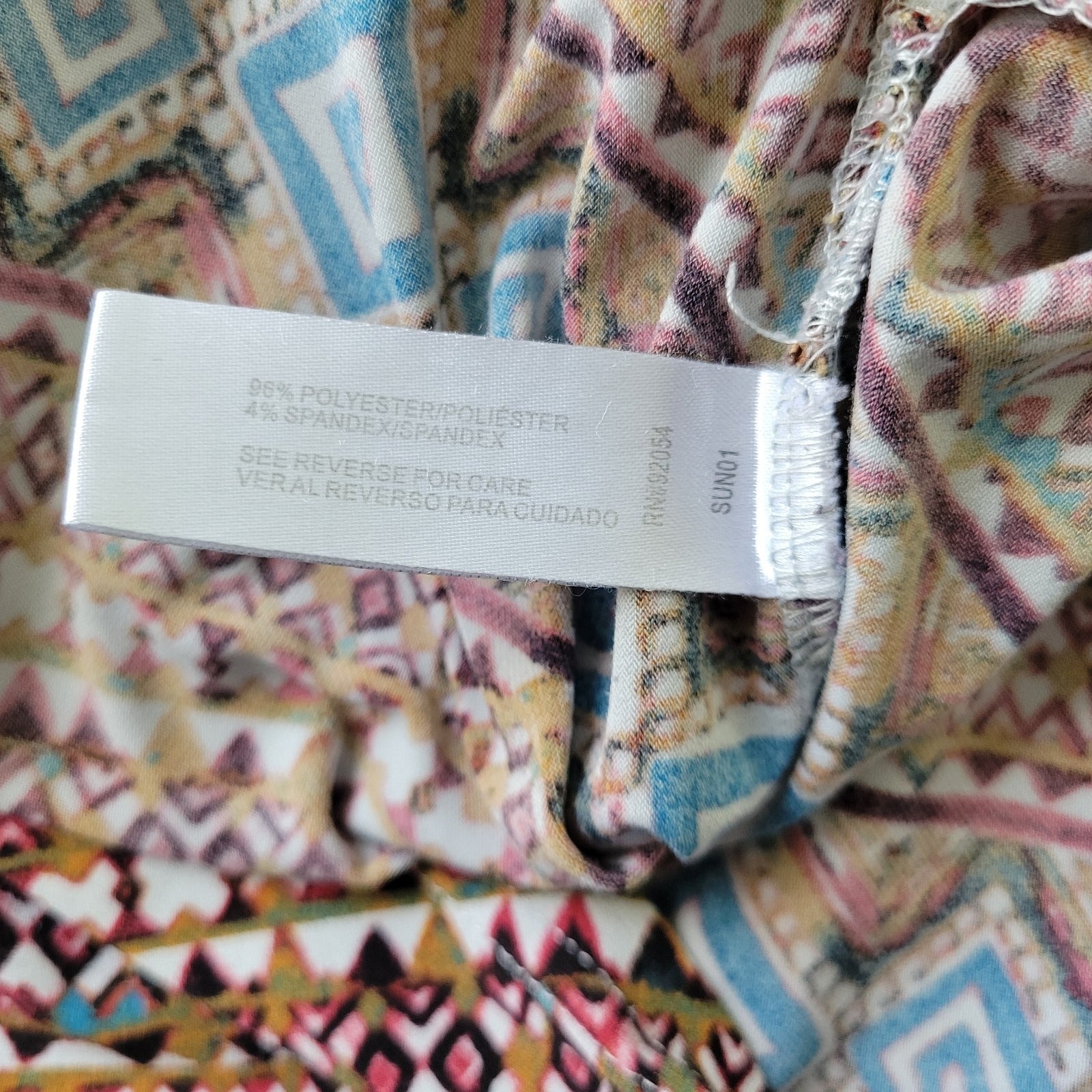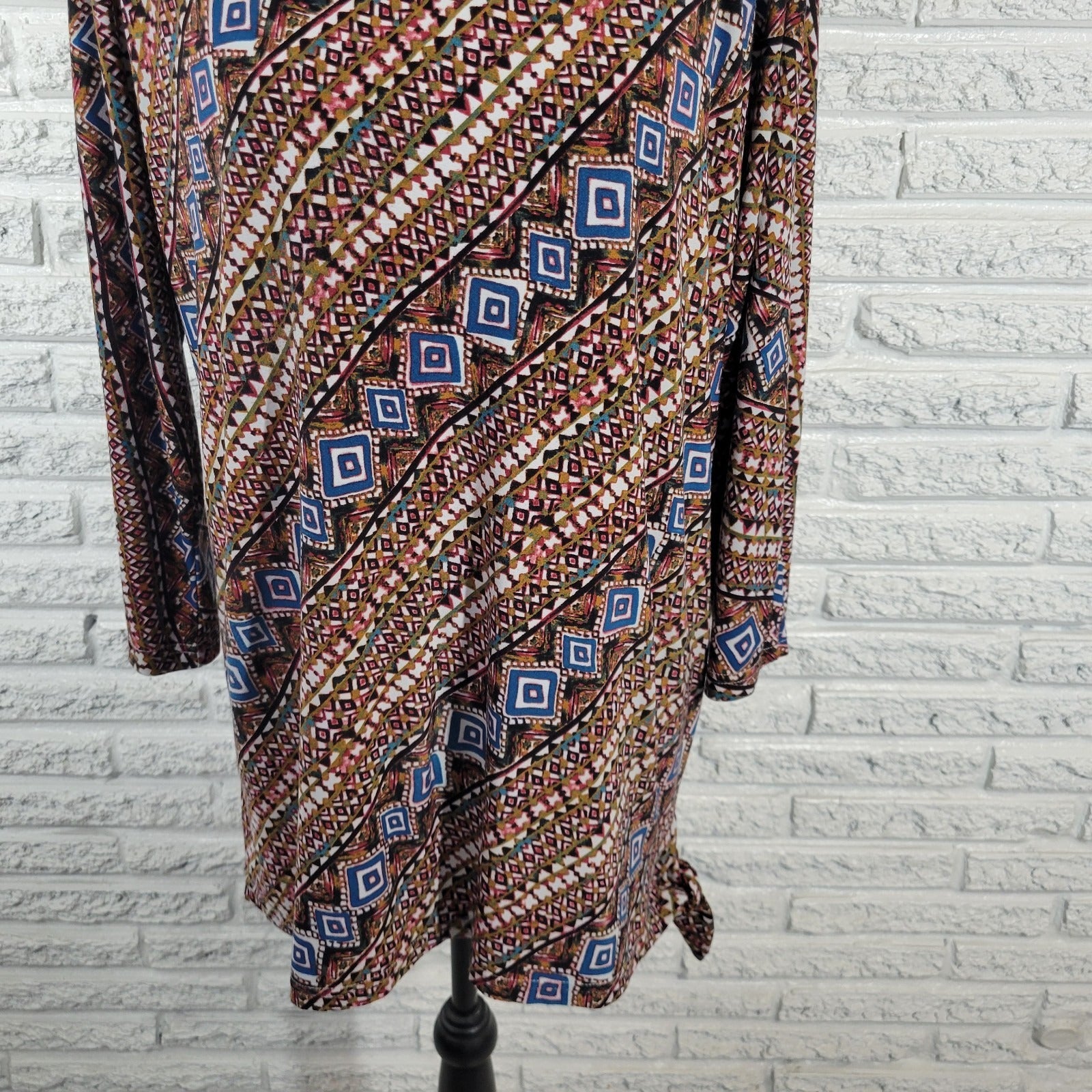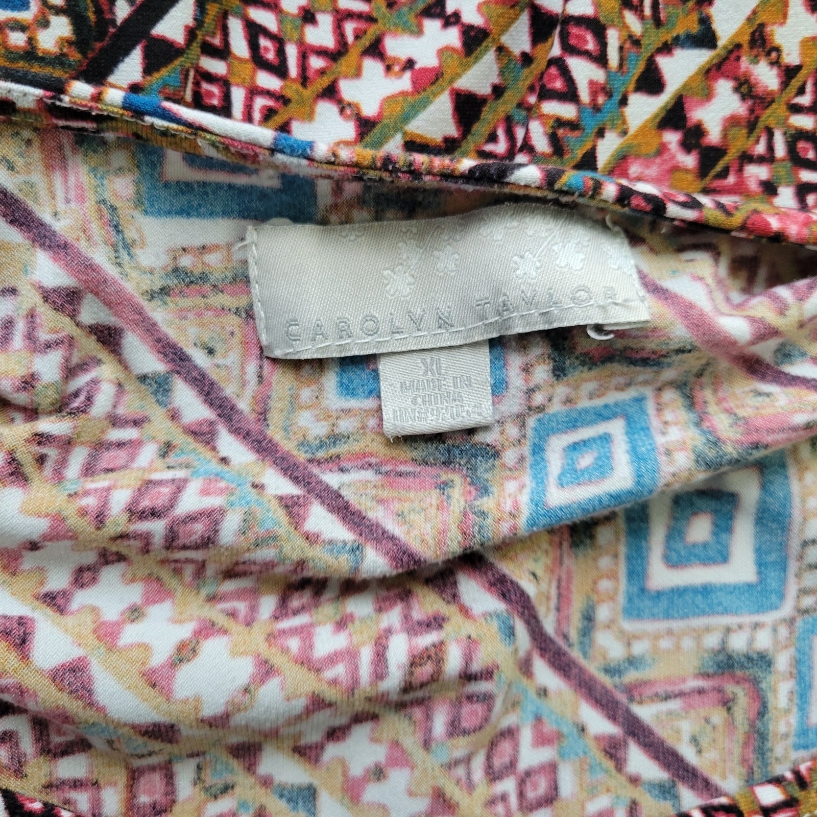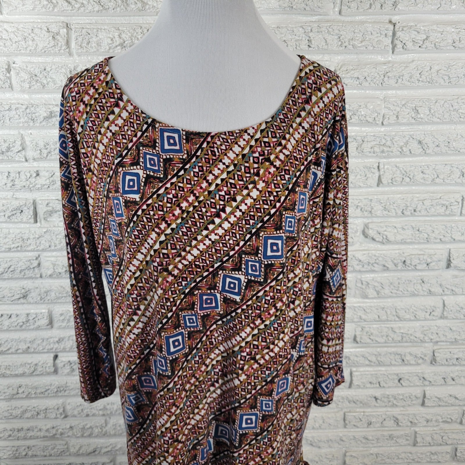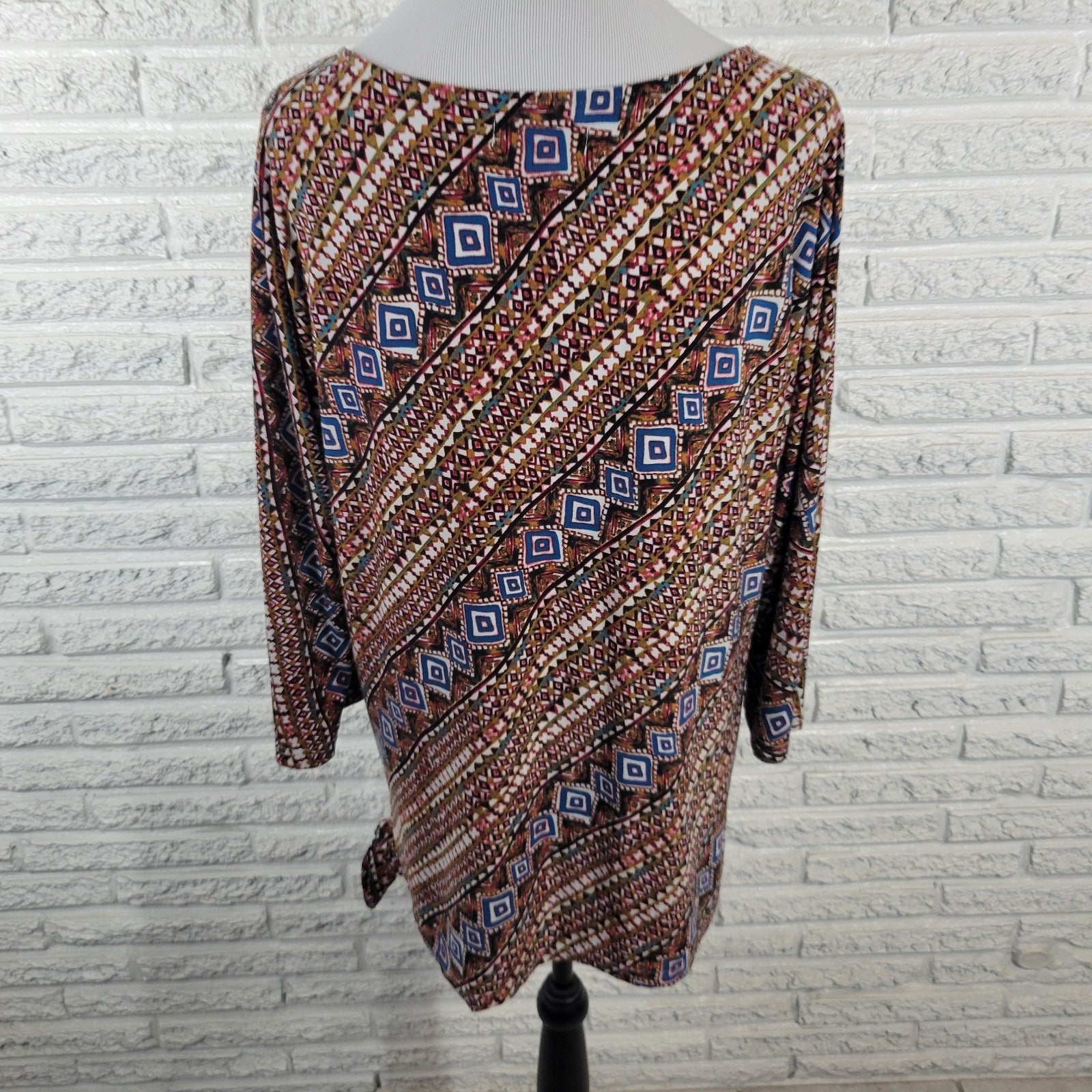 Carol Taylor Womens Top XL 3/4 Dolman Sleeve Brown Geometric Tied Hem Poly Blend