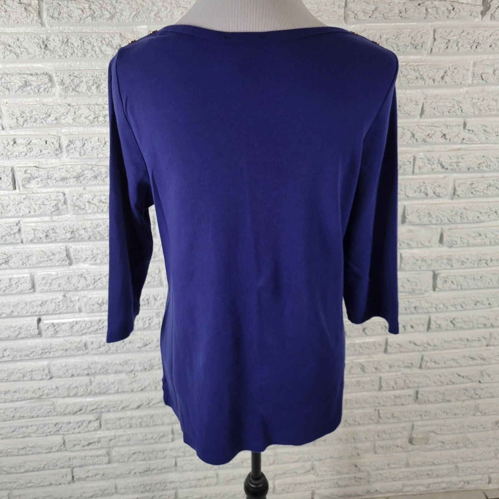Carole Little Womens Top 1X Plus 3/4 Sleeve Blue Cotton Casual Deco Buttons