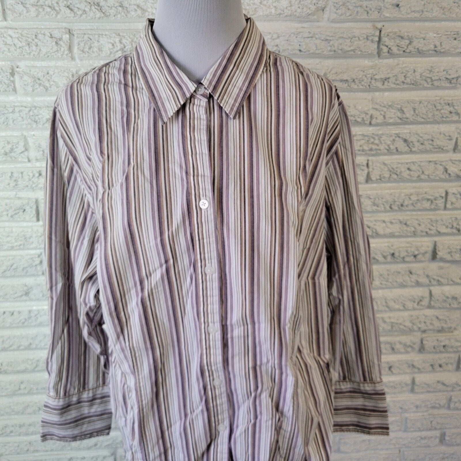 Casual Corner Annex Women Top 2X Lavender Stripe Collar Lightweight Cotton Blend