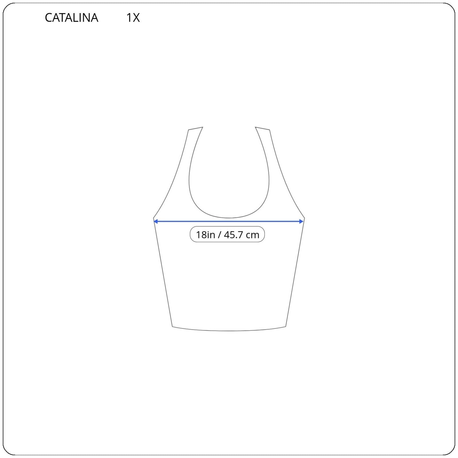 The Catalina Women's Swim Top is a pink floral halter top designed for plus-size women. It features a tiered design and is made of a poly blend material. The top comes with a built-in bra and is lined. It is recommended to hand wash only.