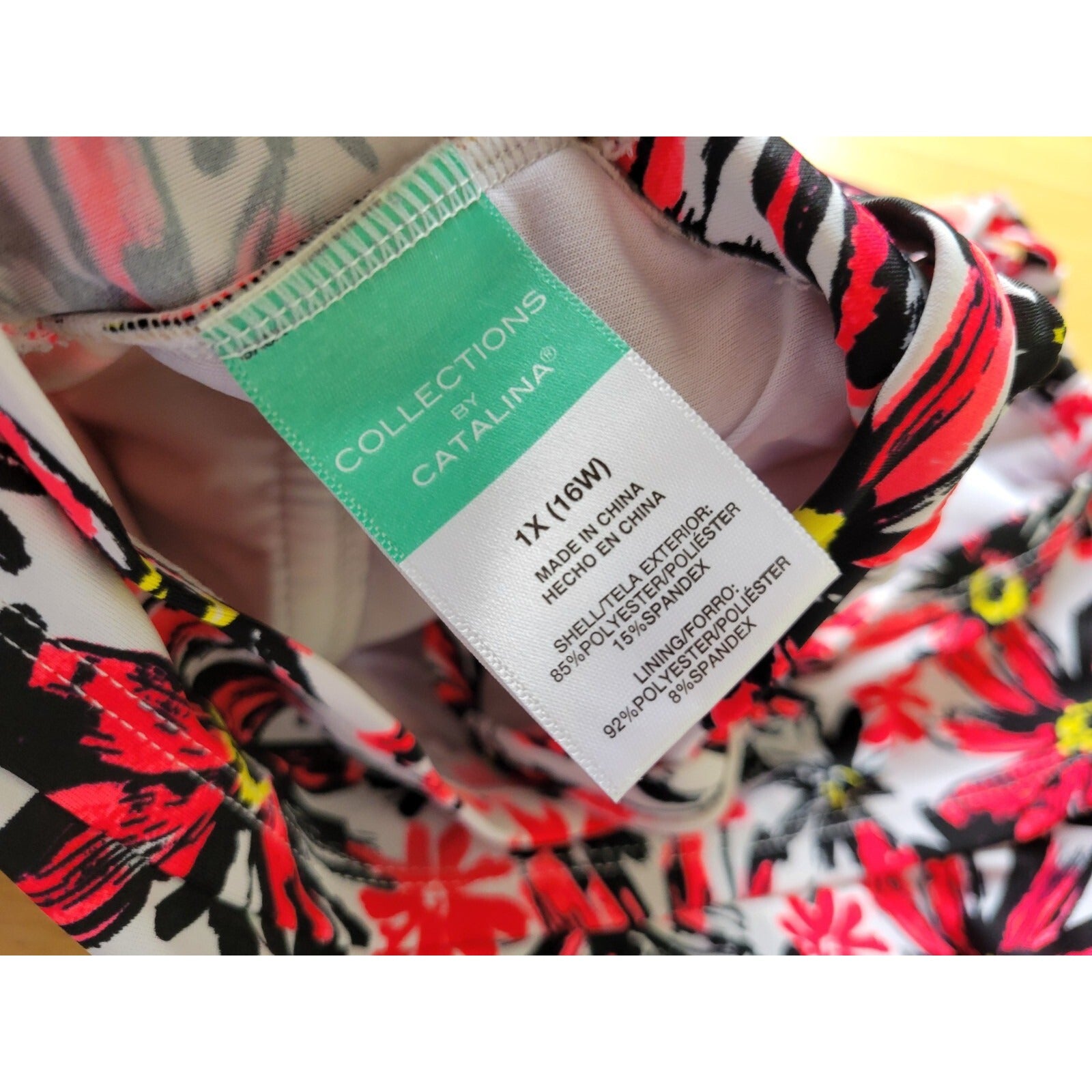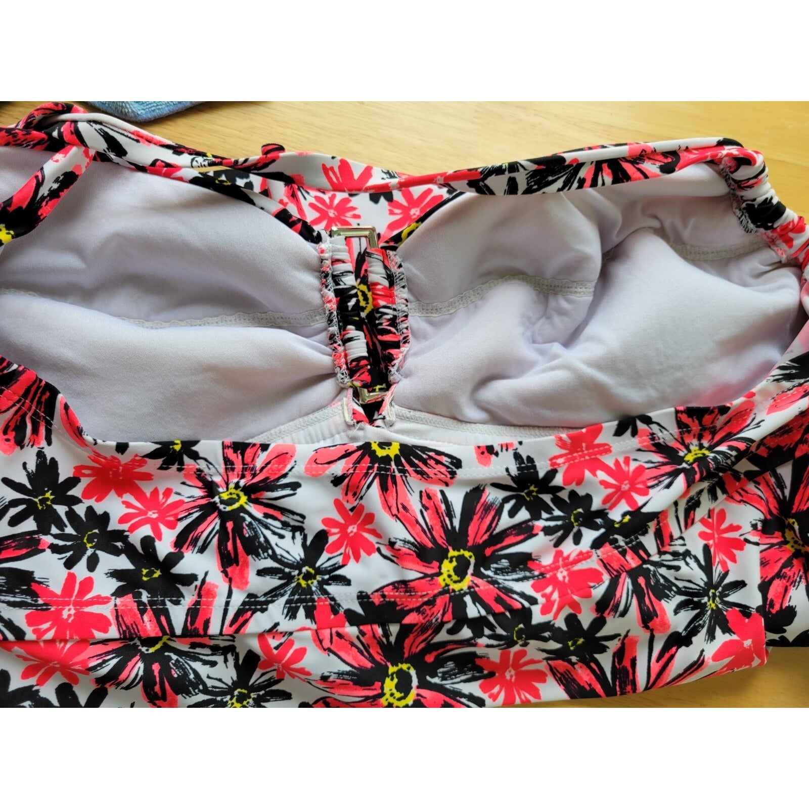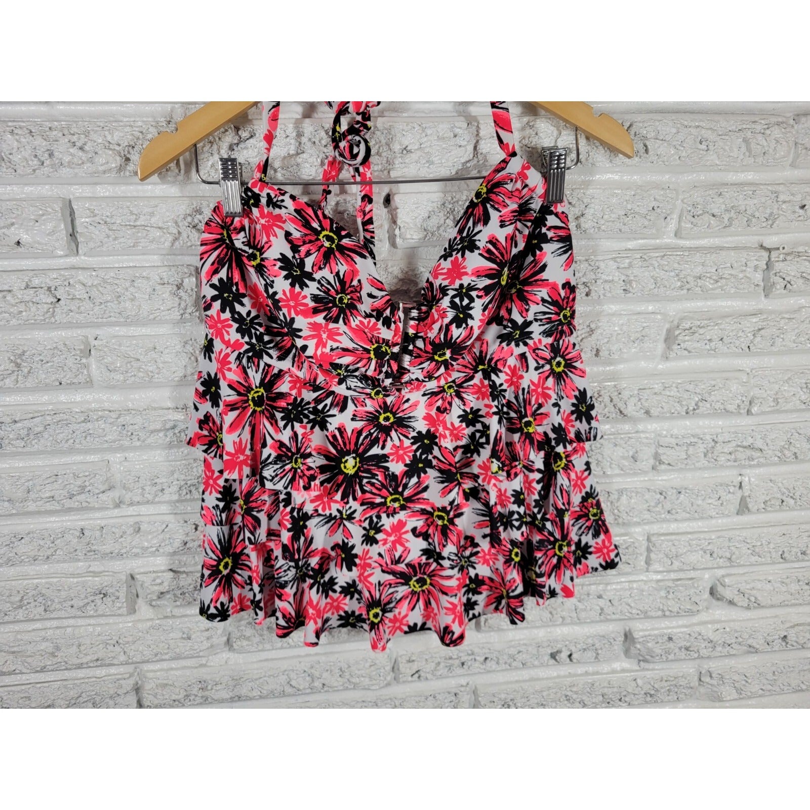 Catalina Womens Swim Top 1X Halter Tiered Pink Floral Built in Bra Poly Blend