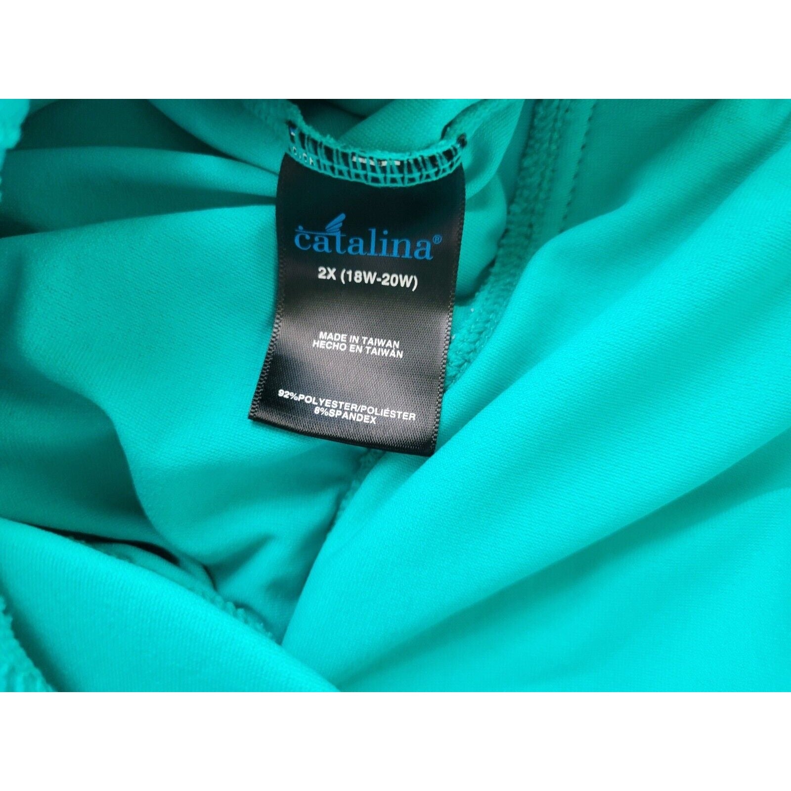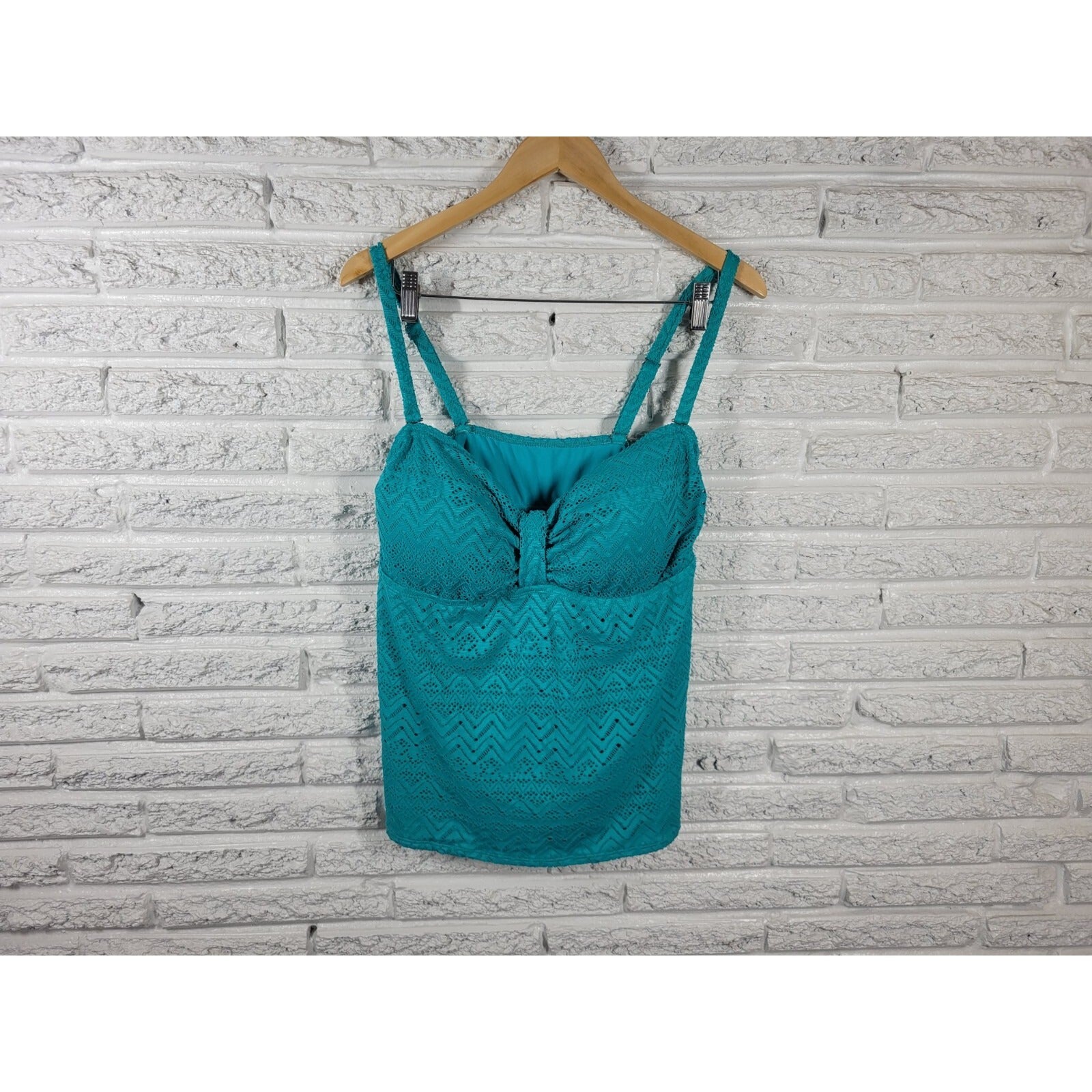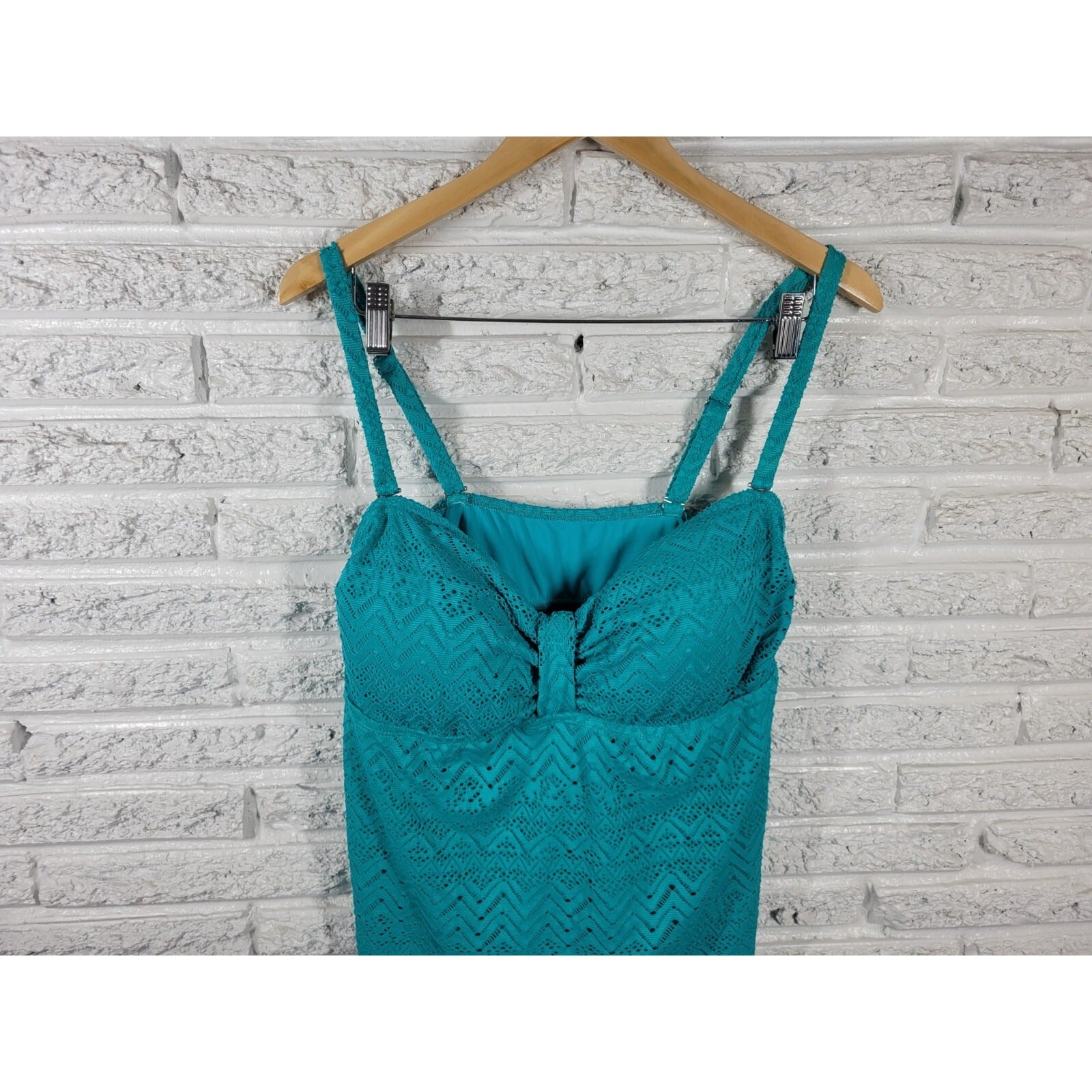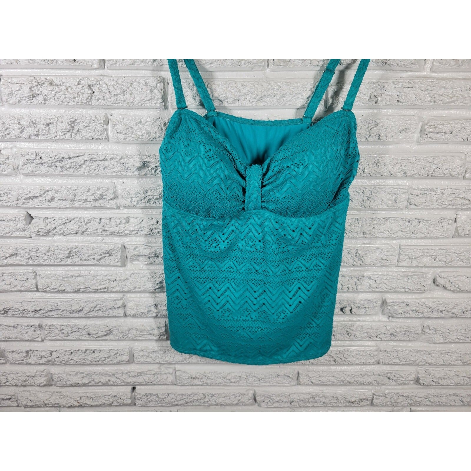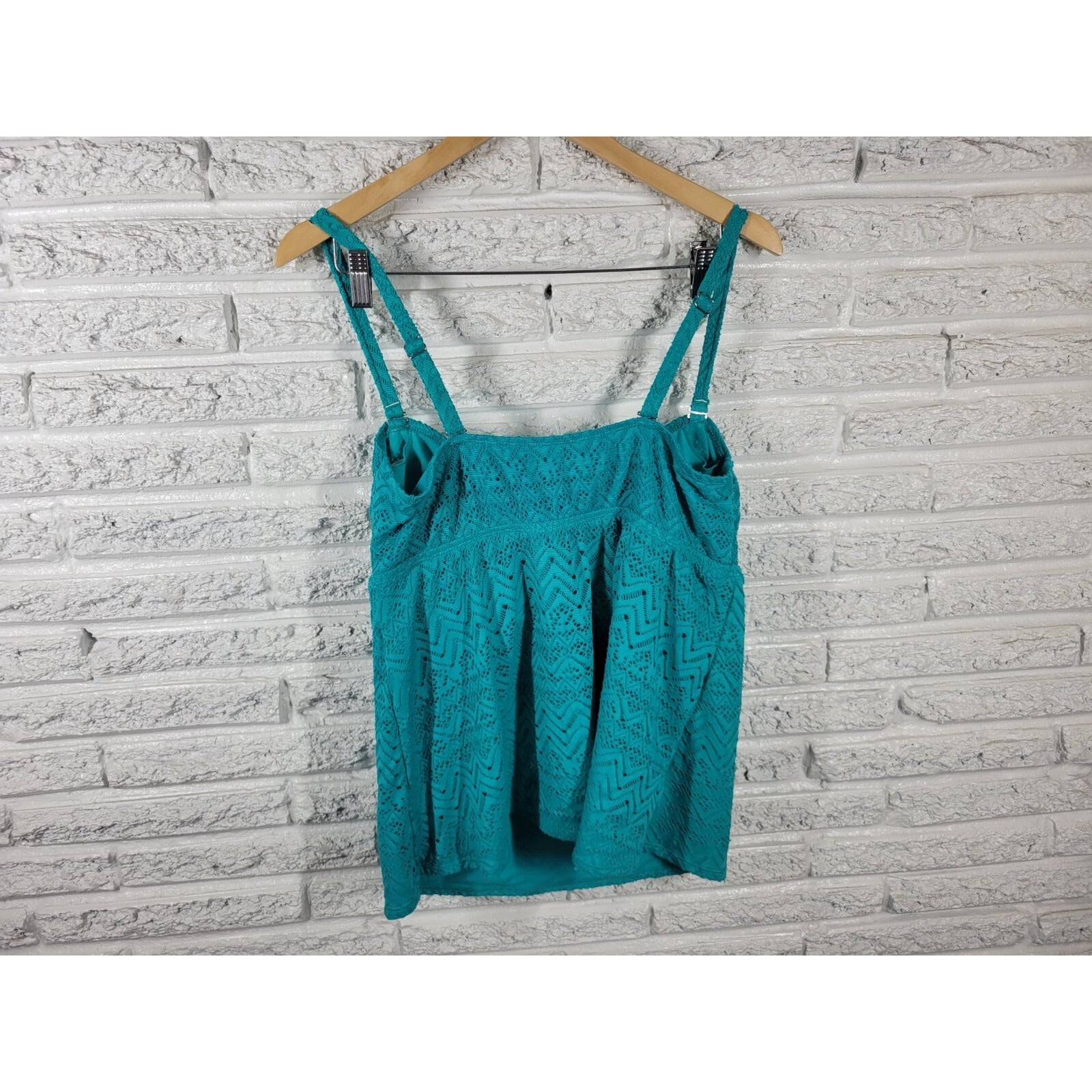 Catalina Womens Swim Top 2X Plus Adjustable Spaghetti Strap Aqua Blue Lace Bra