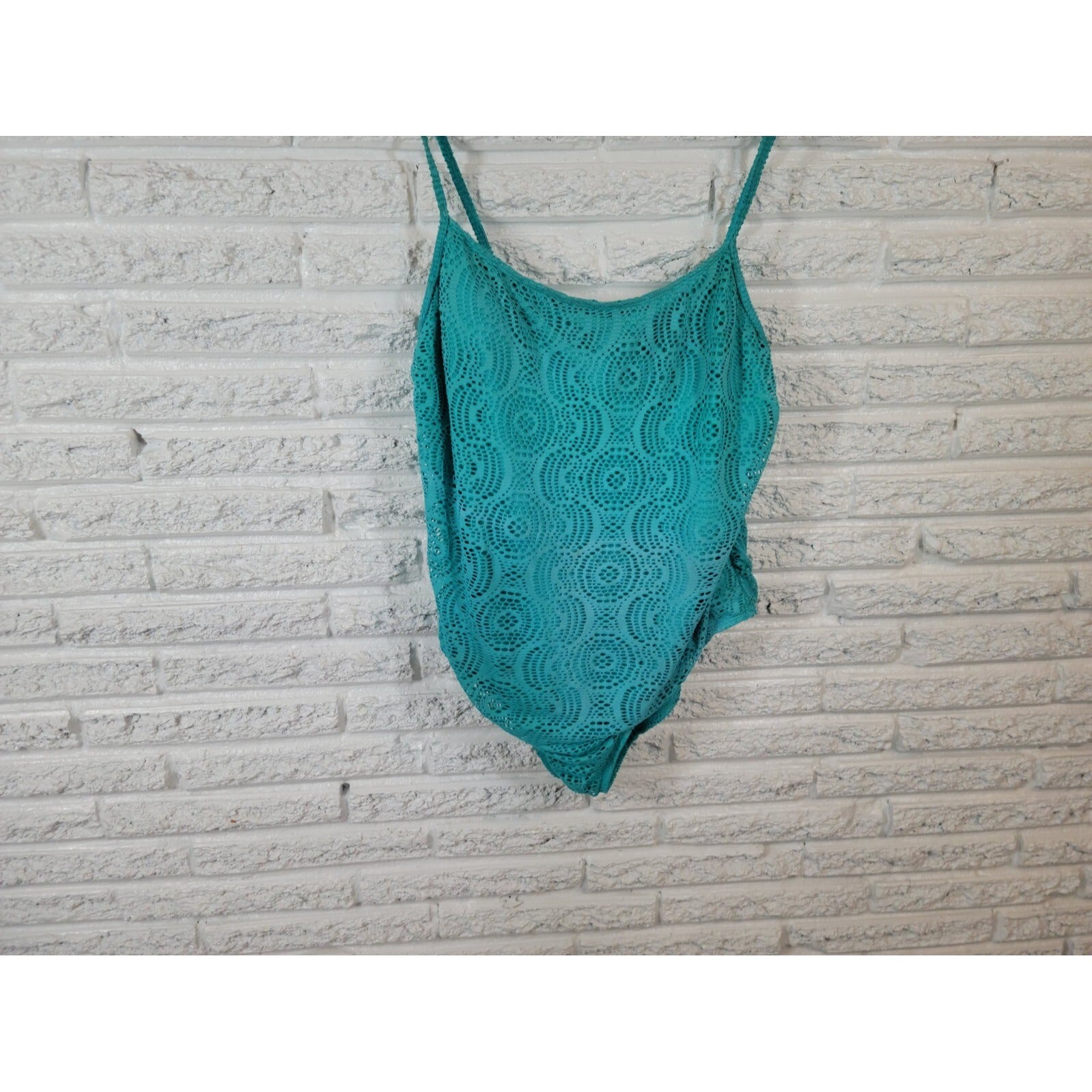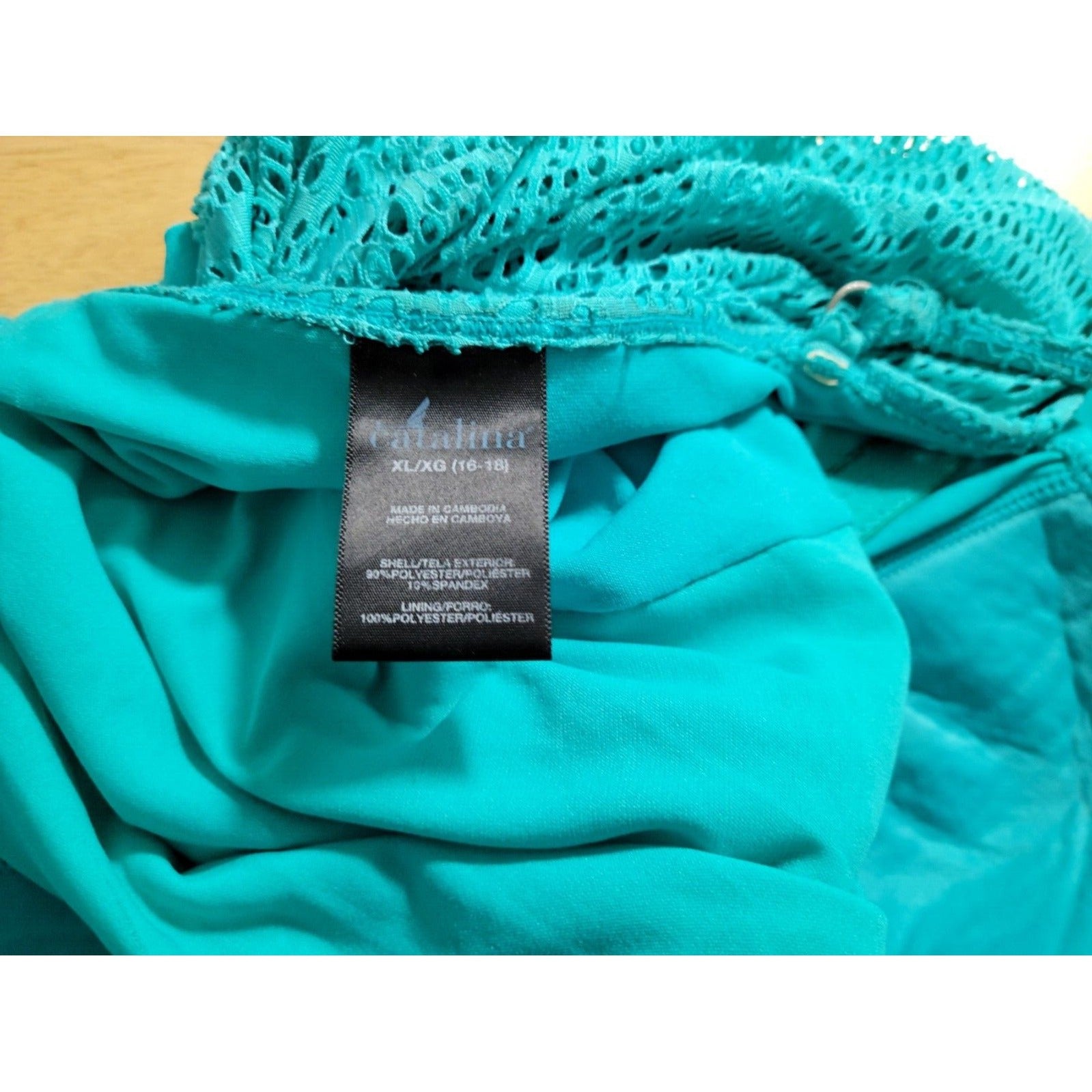 This Catalina women's swimsuit in size XL is the perfect addition to your summer wardrobe. The solid blue color and mesh material make it both stylish and comfortable. The swimsuit features spaghetti straps, adjustable to your liking, and a built-in bra for added support.   Additionally, the swimsuit is lined and made with stretch material for a perfect fit. Hand wash only for optimal care. Made in Cambodia, this one-piece swimsuit is perfect for any woman looking for a comfortable and stylish option.