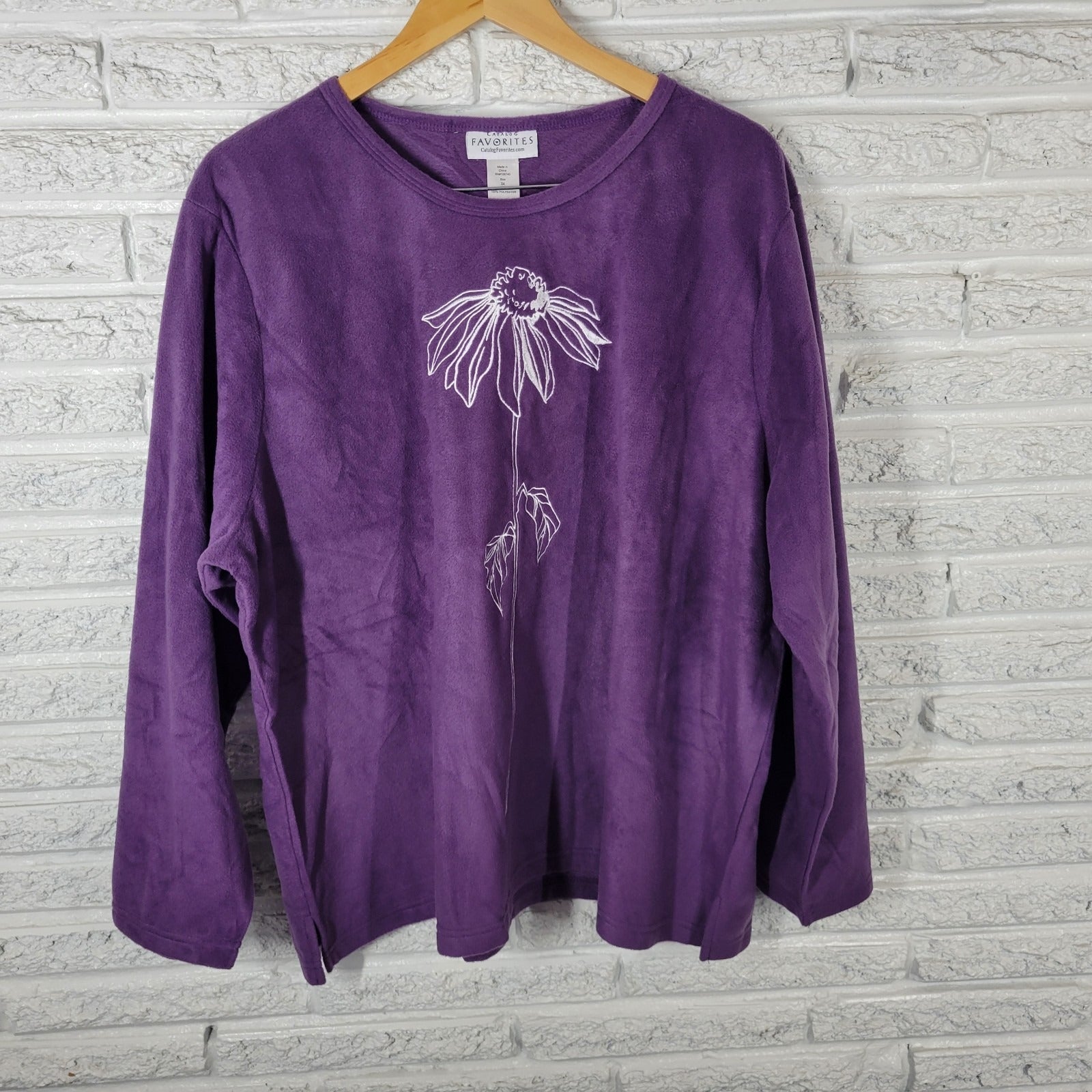 Catalog Favorites Womens Top 3X Plus Sweatshirt Purple Embroider Floral Velour