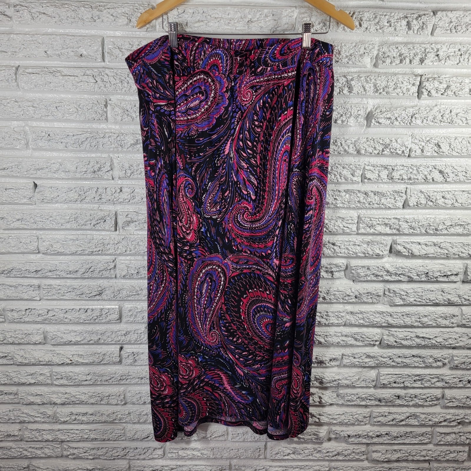 Catherines Anywear Womens Skirt 1X Plus Midi Purple Pink Paisley Poly Blend