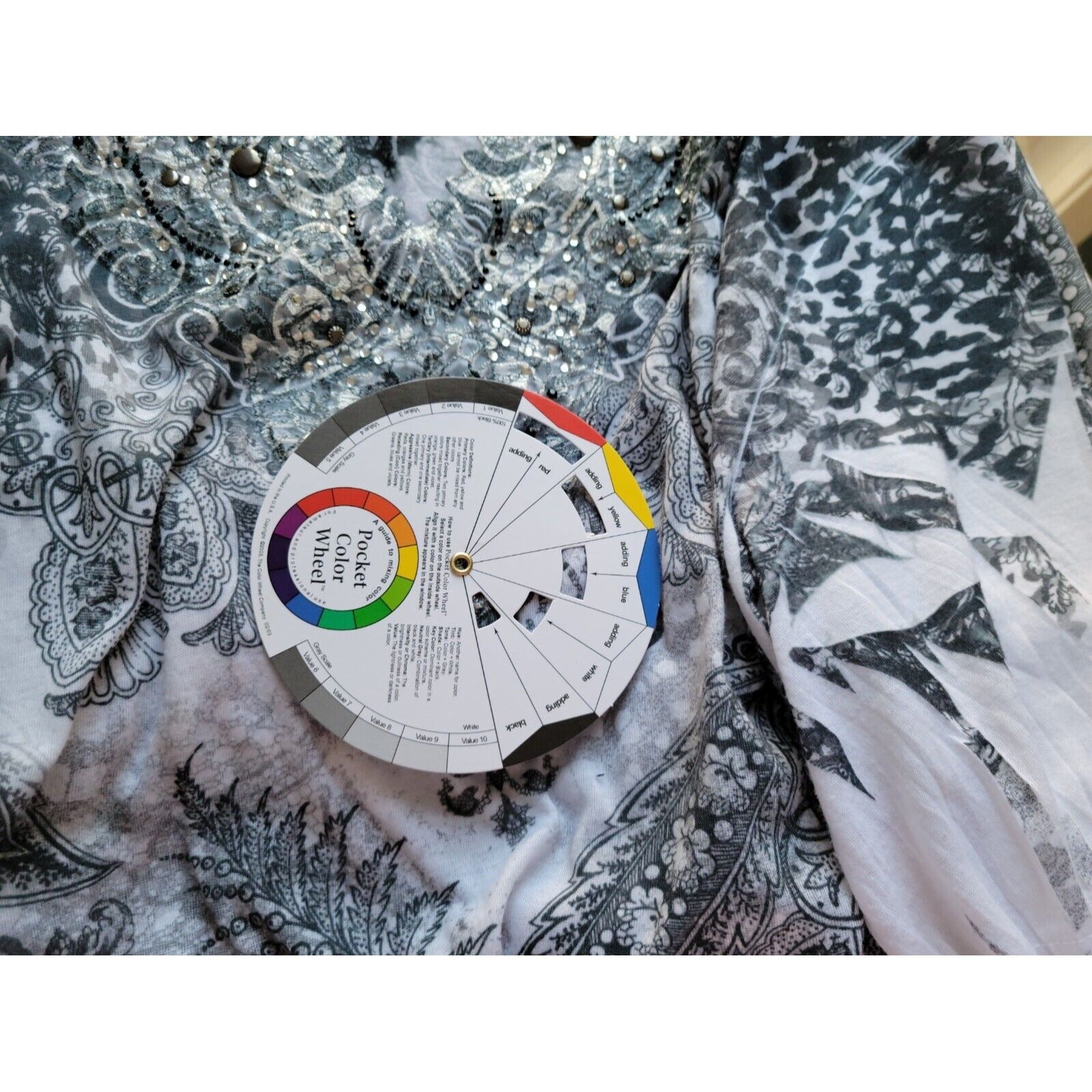 Elevate your wardrobe with this stunning gray paisley blouse from CATHERINE'S. The V-neckline and short casual sleeves create a flattering silhouette, while the studded, beaded and rhinestone accents add a touch of glamour. The pullover closure and polyester blend material make it comfortable and easy to wear, perfect for any casual occasion. This regular fit blouse comes in 1X size and is machine washable for easy care. Its stretchy fabric and all-season features make it suitable for winter, summer, fall and spring. The blouse is a basic style with a unique twist and is perfect for plus-sized women.