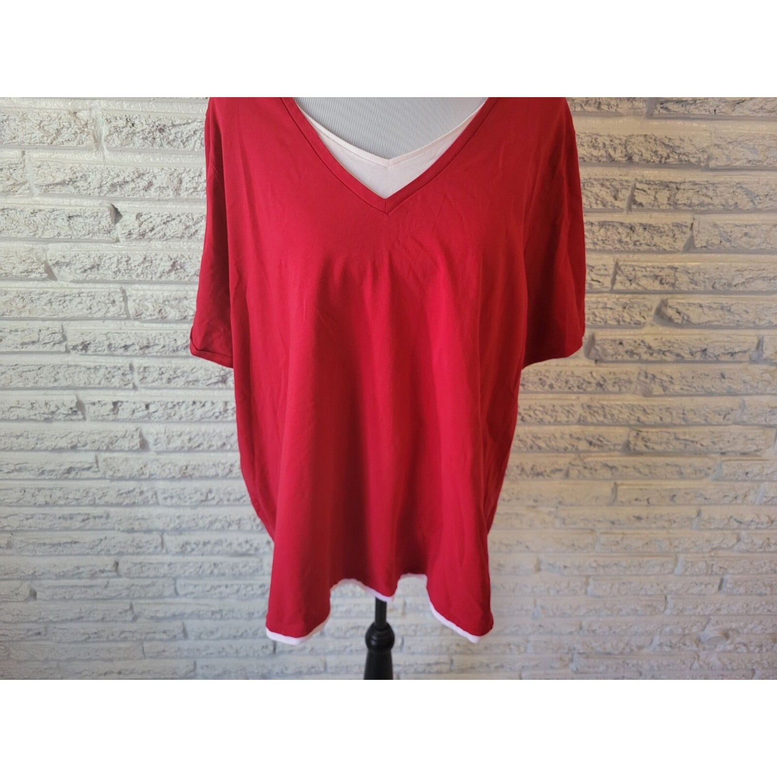 Catherines Suprema Womens Top 2X 22W 24W Plus Tee Short Sleeve Cotton Blend Red