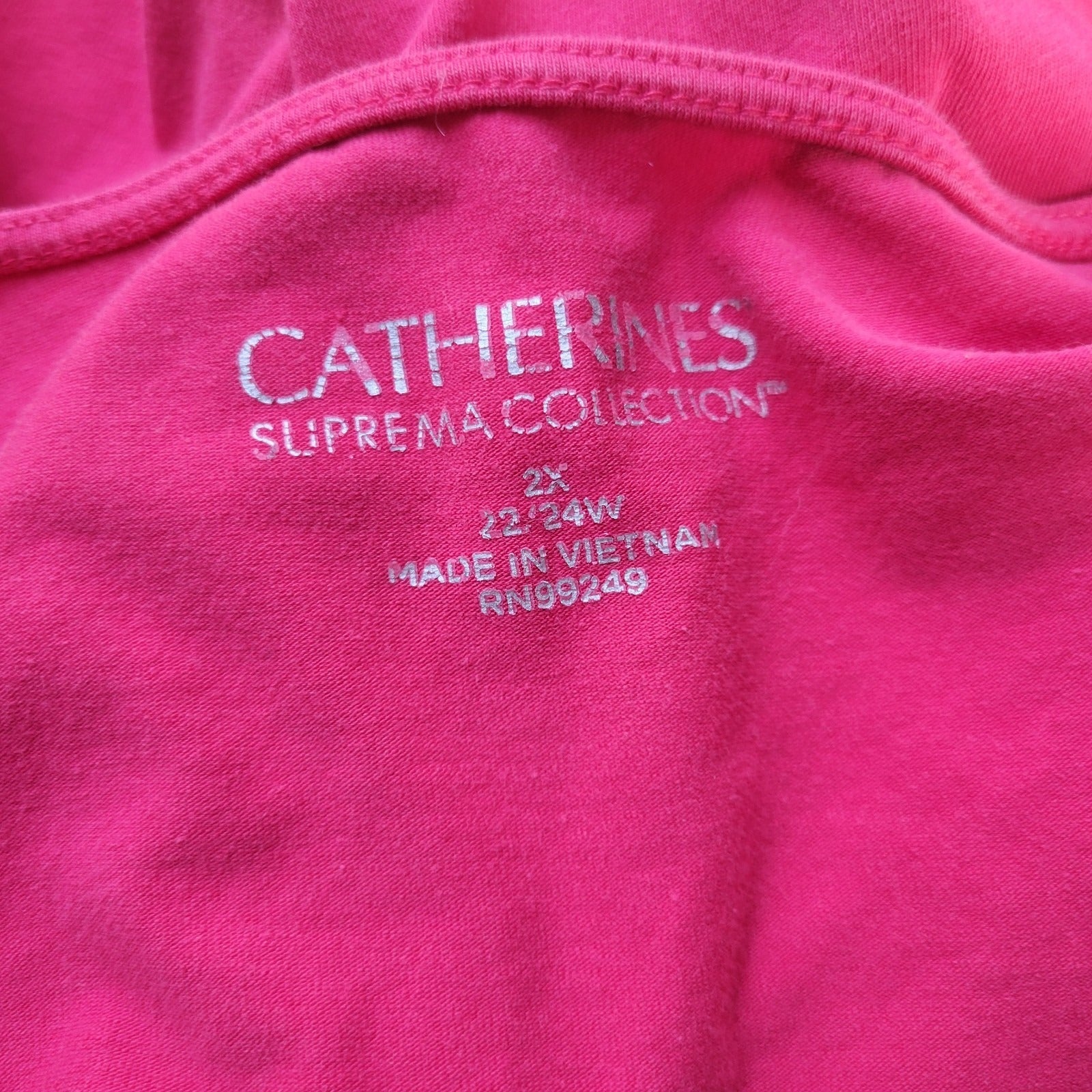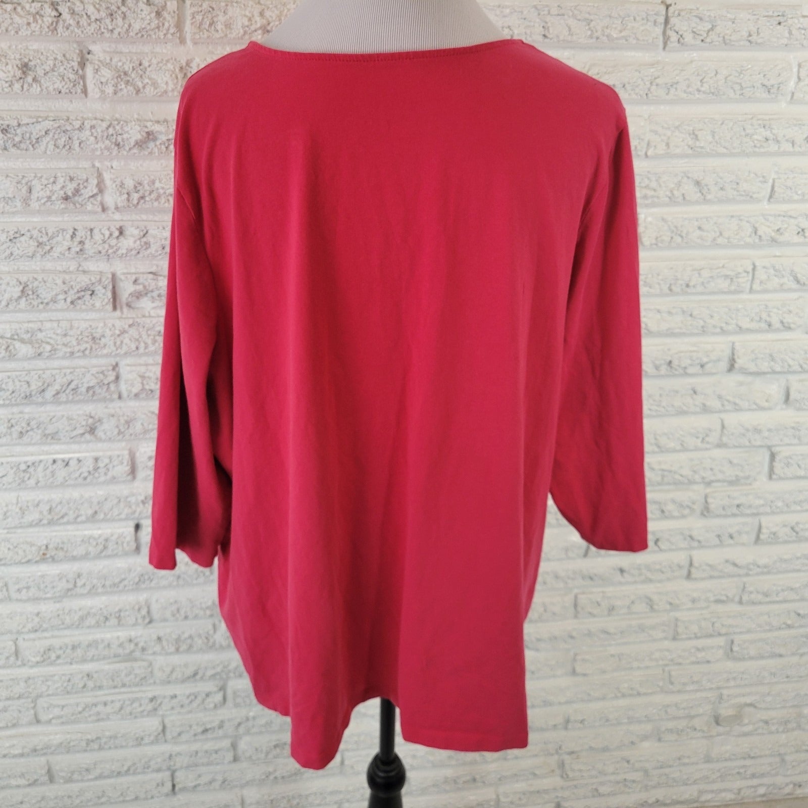 Catherines Suprema Womens Top 2X Plus 3/4 Sleeve Red Comfy Crochet Neckline