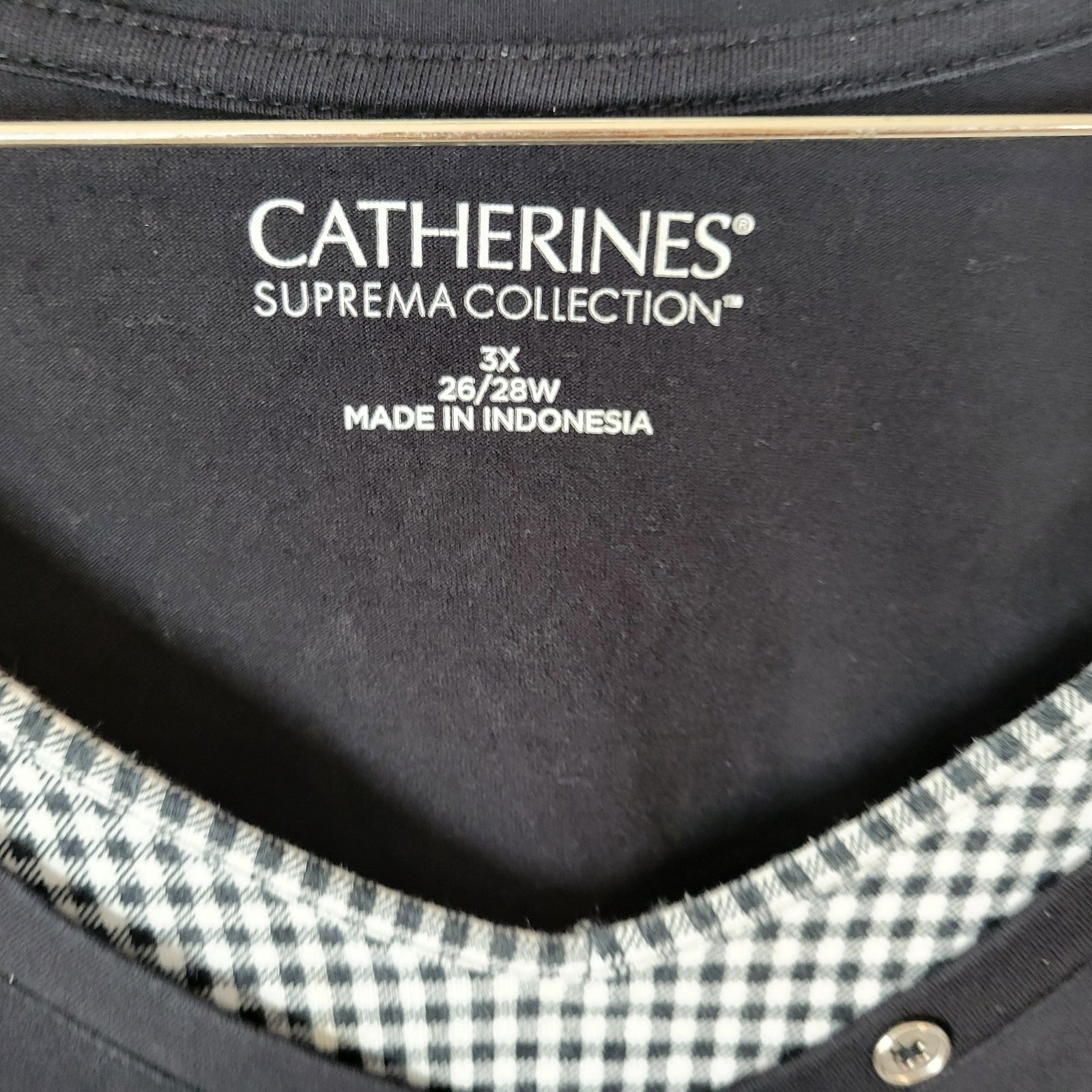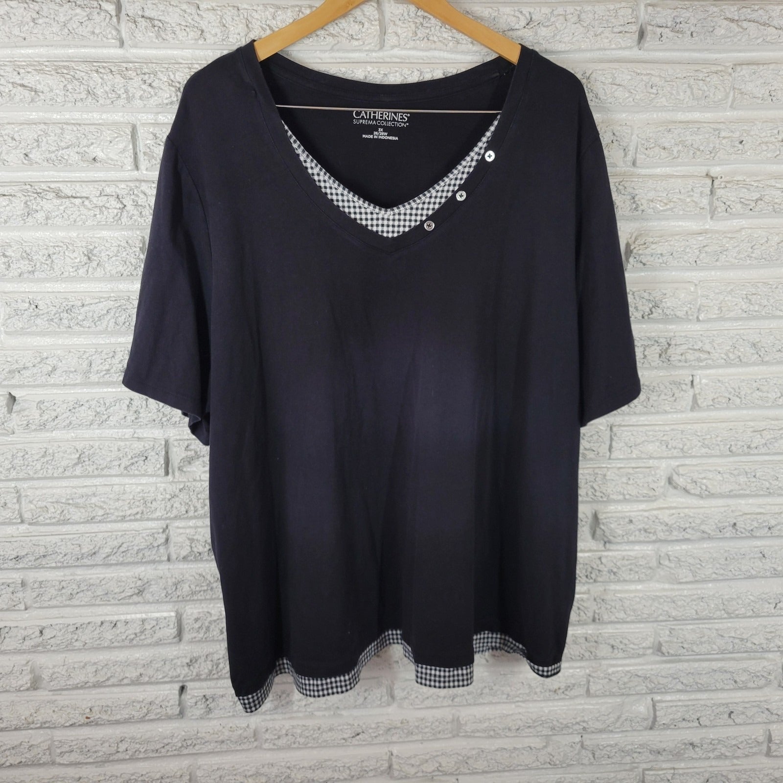 Catherines Suprema Womens Top 3X Plus Tunic Short Sleeves Black Deco Buttons