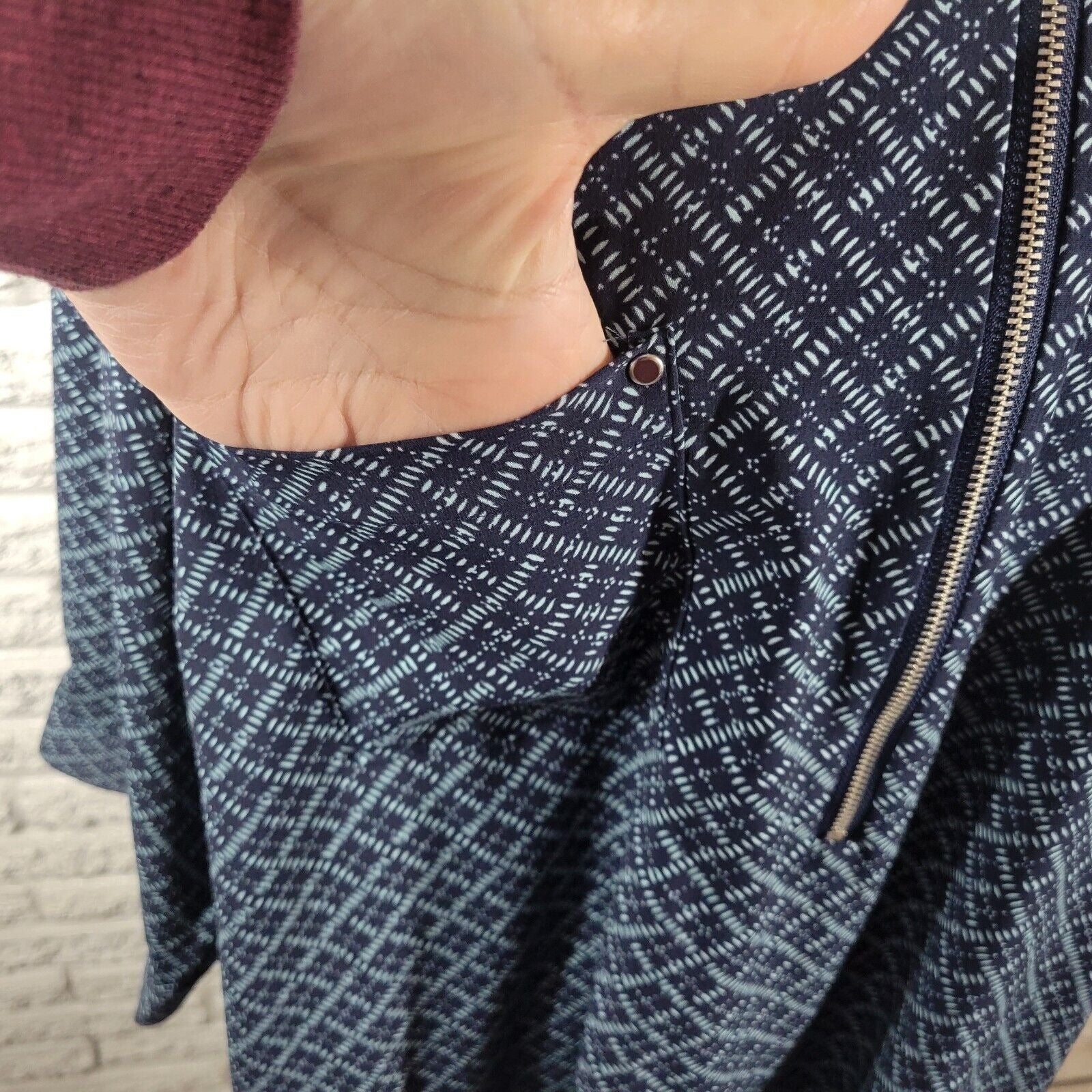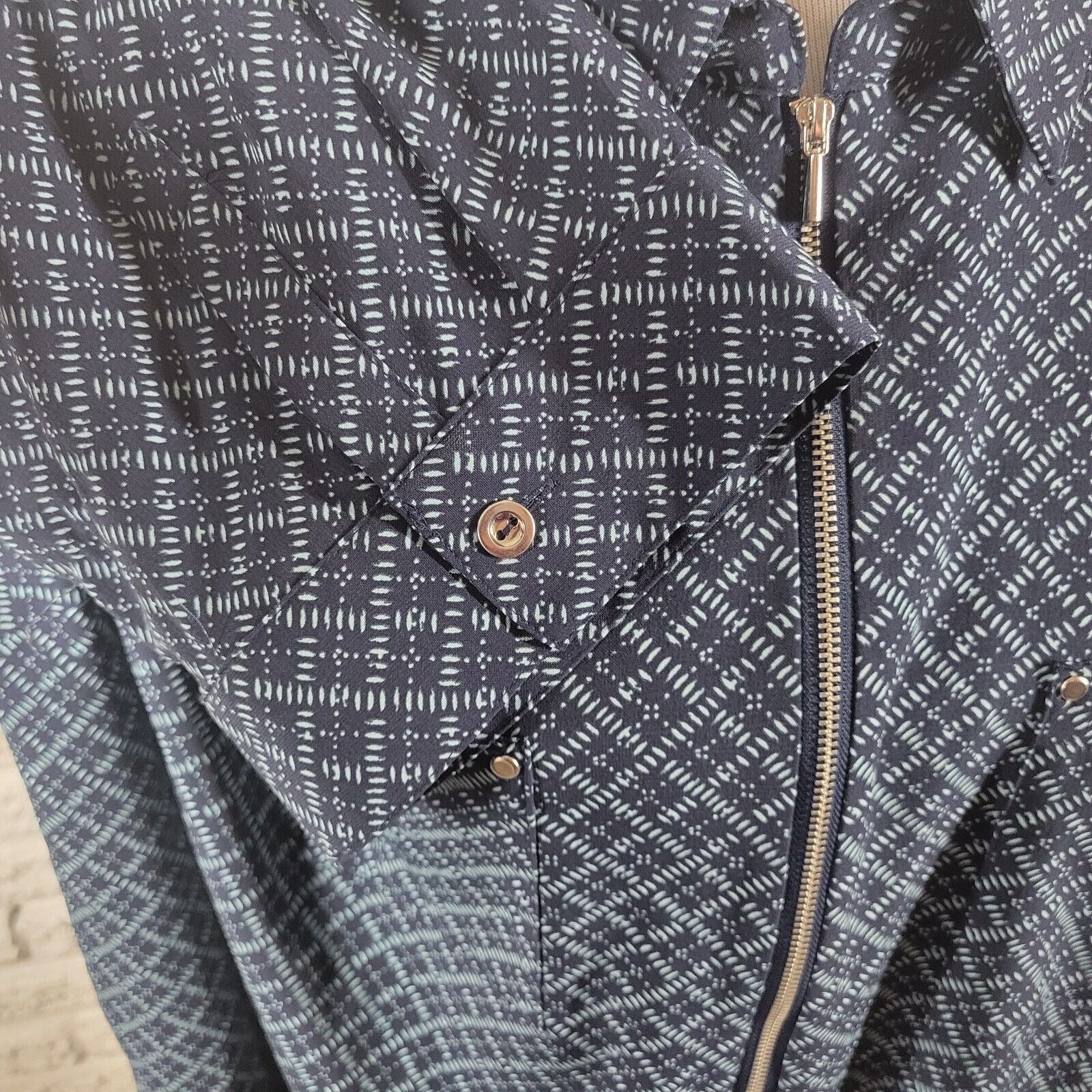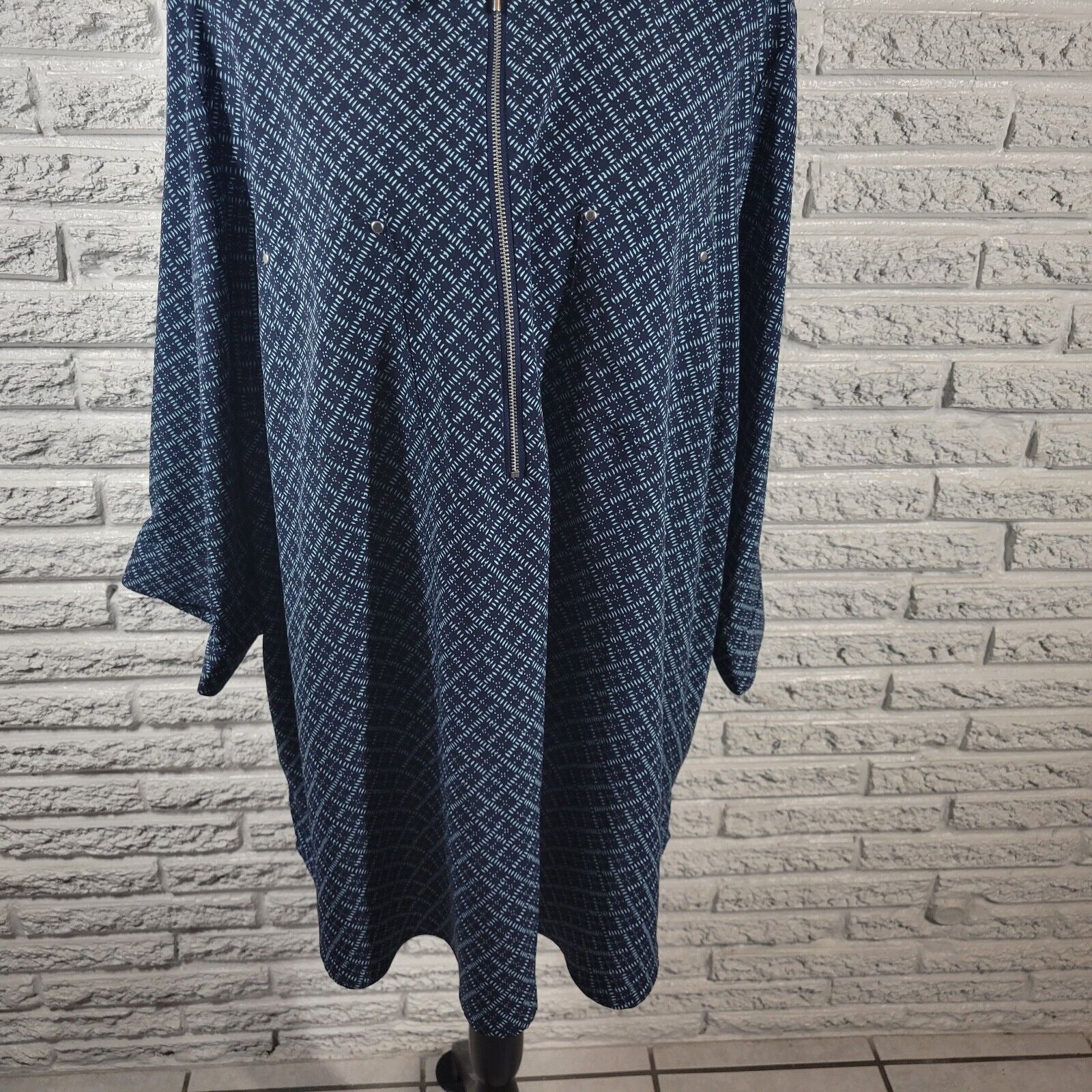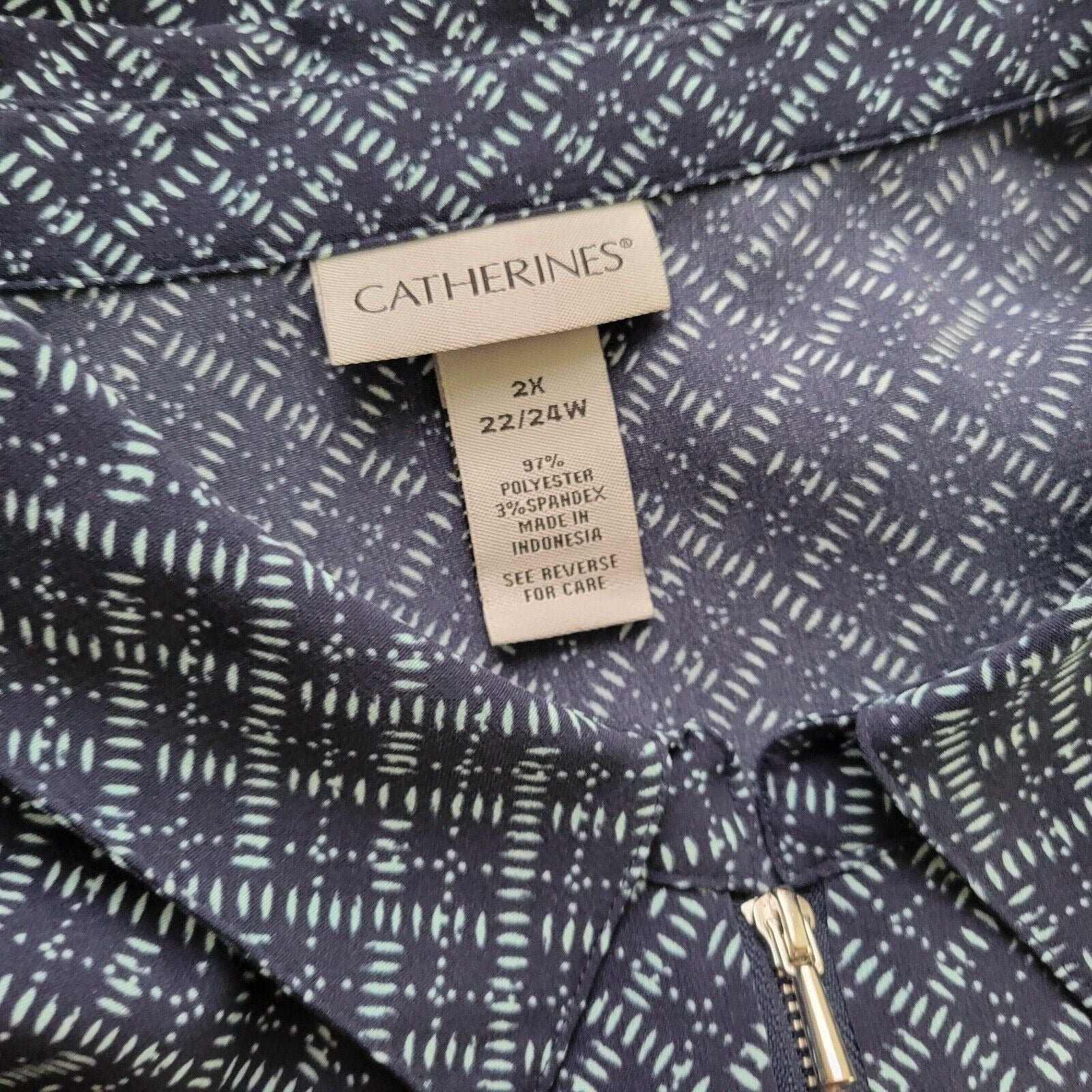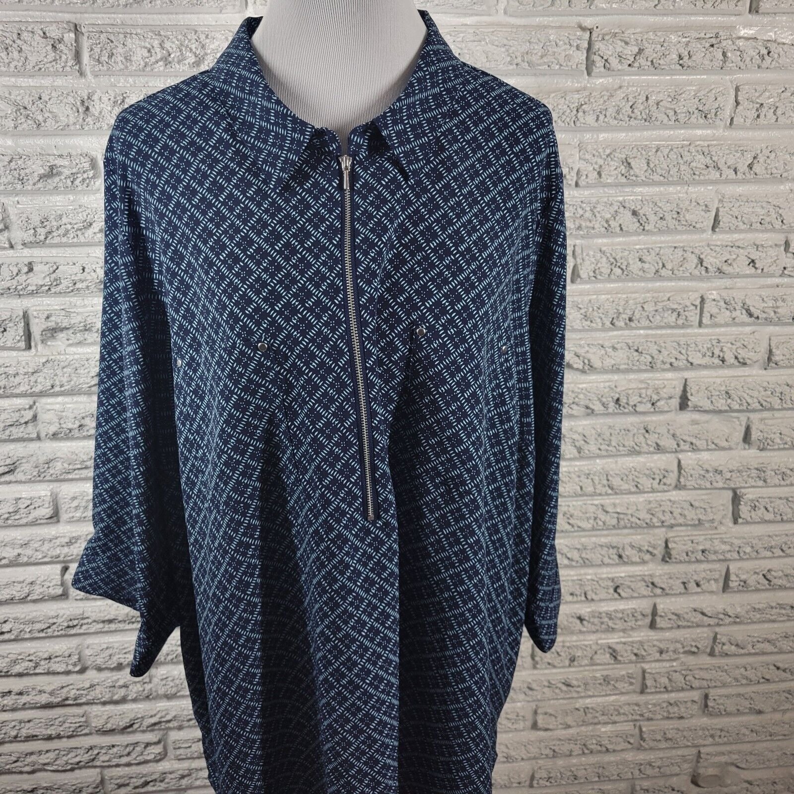 Catherines Women Top 2X Plus Tunic 3/4 Sleeve Blue Geometric Quarter Zip Pockets