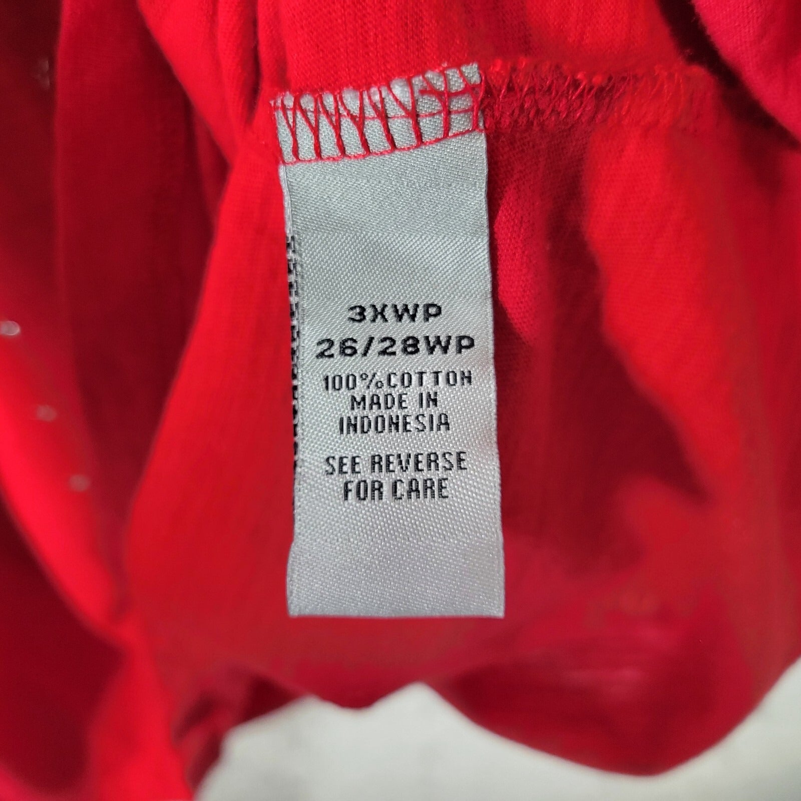 This Catherine's women's top is a perfect addition to your wardrobe. The V-neckline and short sleeves make it a great choice for casual occasions. The pullover closure and 100% cotton material make it comfortable to wear all year round.   The red color and studded accents add a touch of style to the basic T-shirt. It is machine washable and fits true to size. This top is perfect for plus-sized women and is suitable for all seasons. Made in Indonesia, this top is a great choice for anyone looking for a comfortable and stylish addition to their wardrobe.