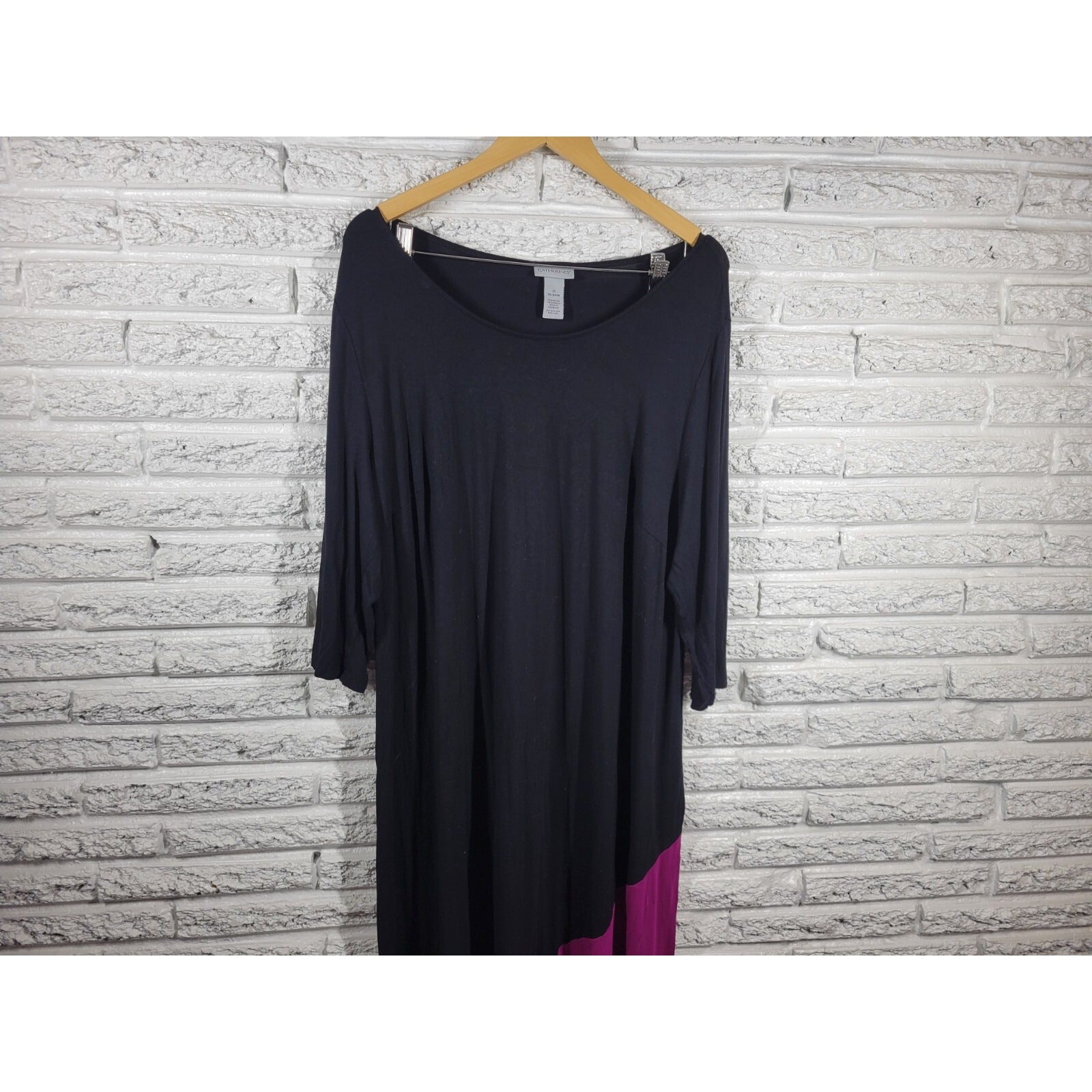 Catherines Womens Dress 1X Plus Short Sleeve Purple Color Block Rayon Blend