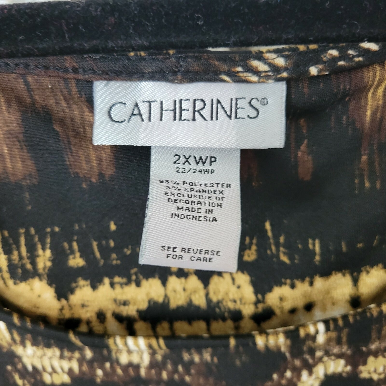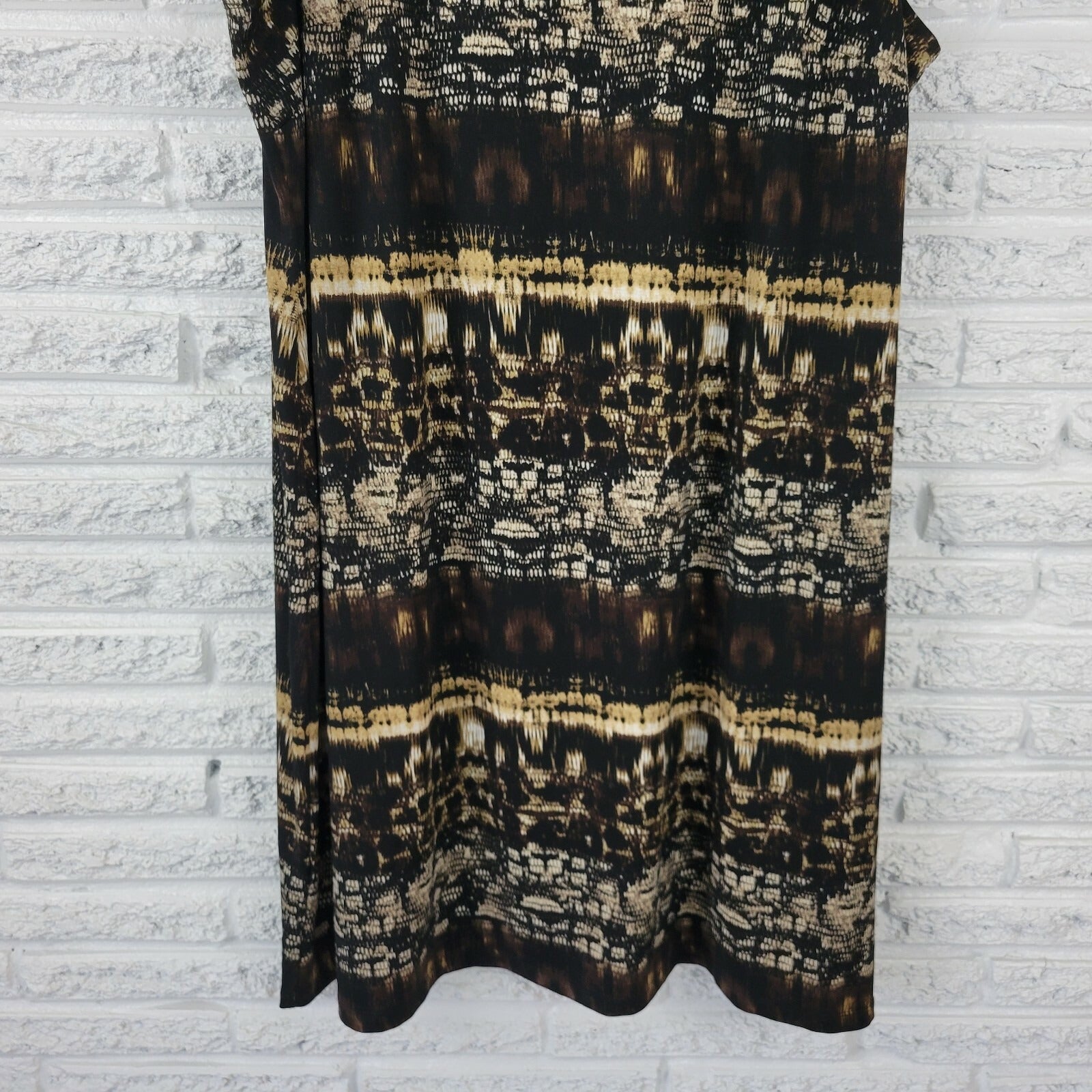 Catherines Womens Dress 2XWP Plus Sleeveless Shift Black Tan Animal Print