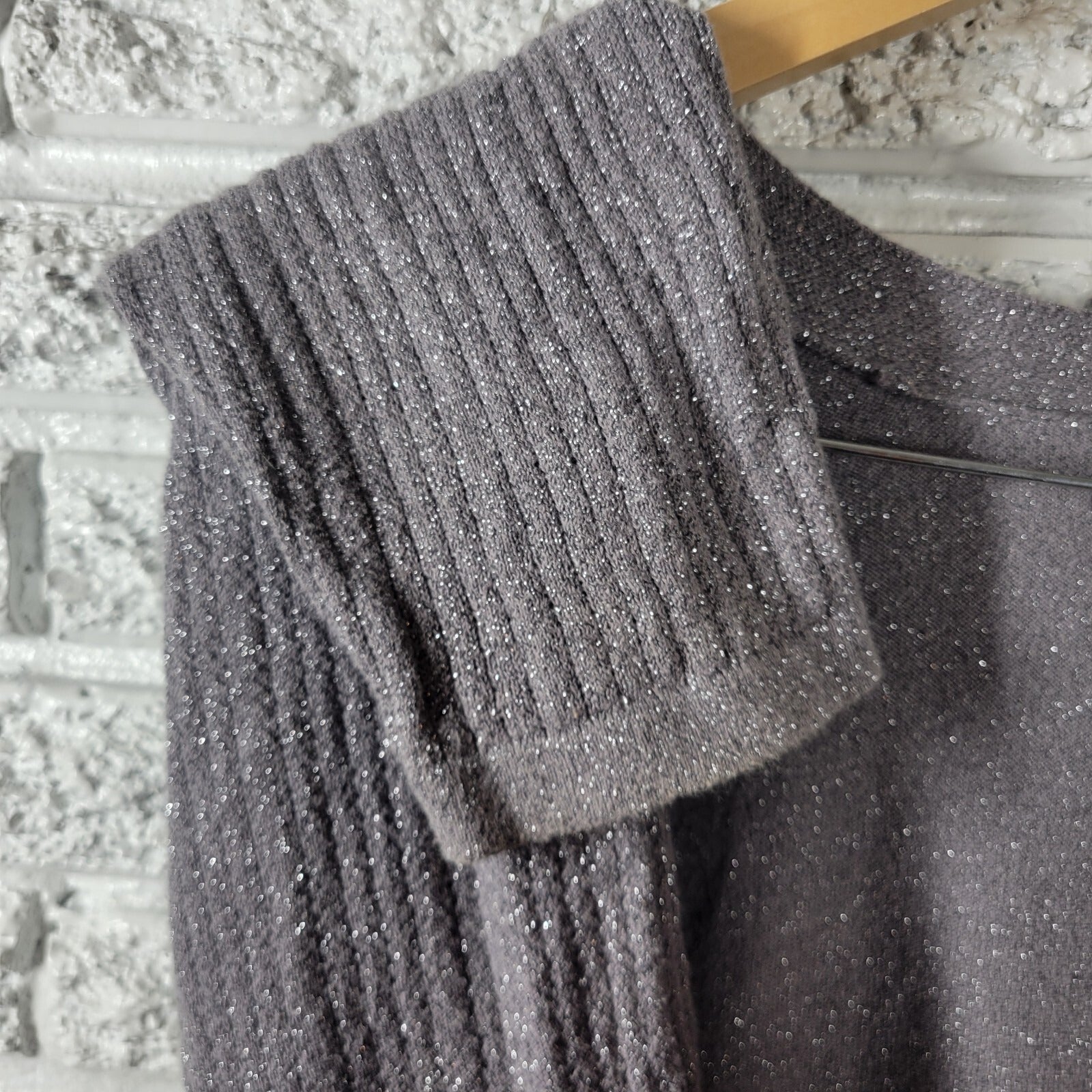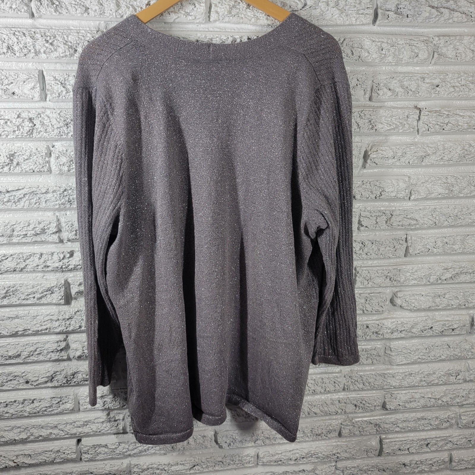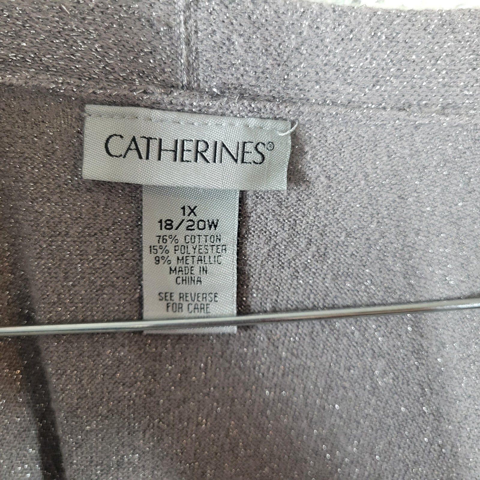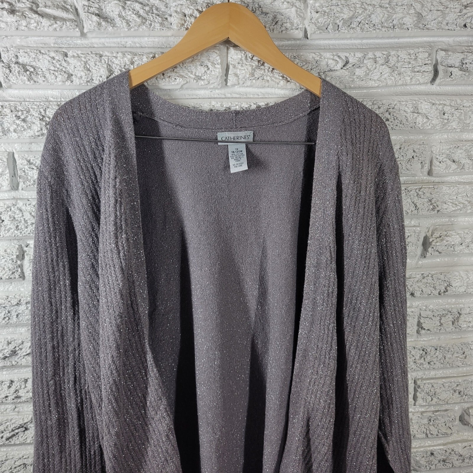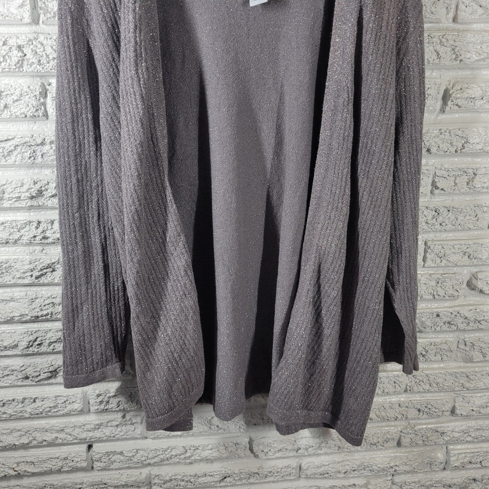 Catherines Womens Sweater 1X Plus Cardigan Open Gray Silver Metallic Thread