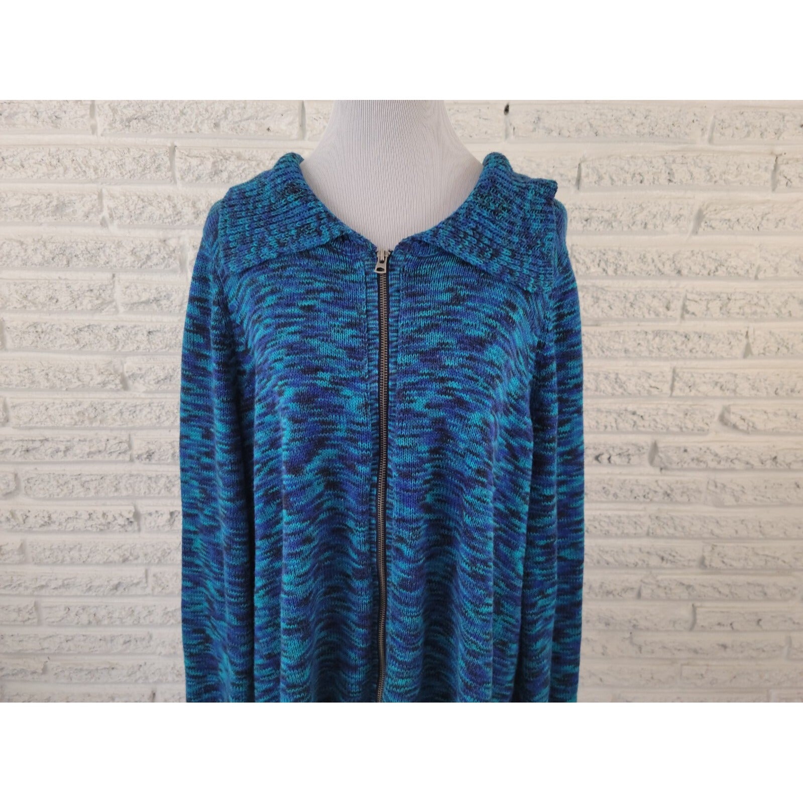 Catherines Womens Sweater 1X Plus Zip Up Long Sleeve Office Blue Marled Speckle