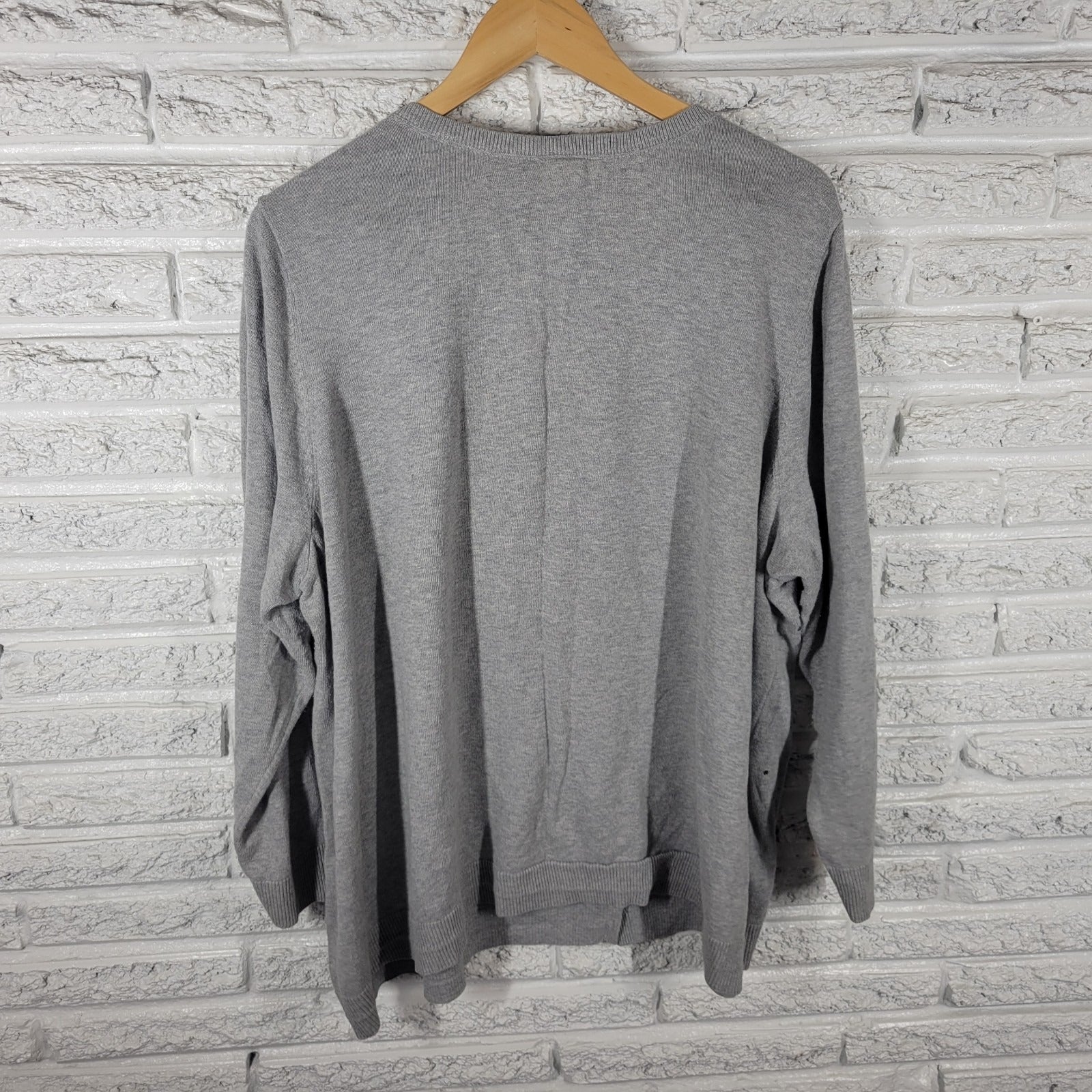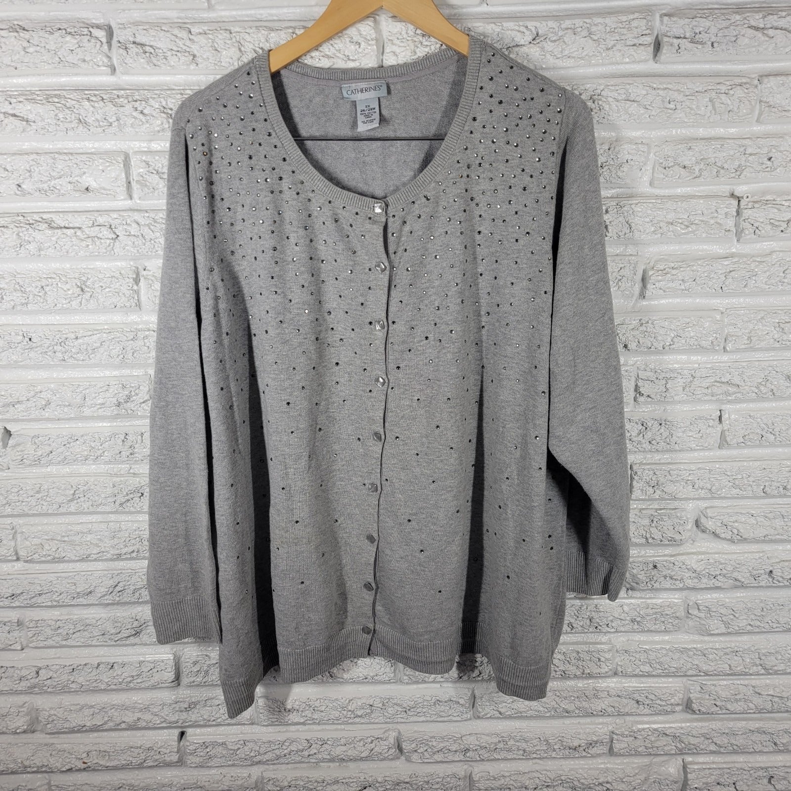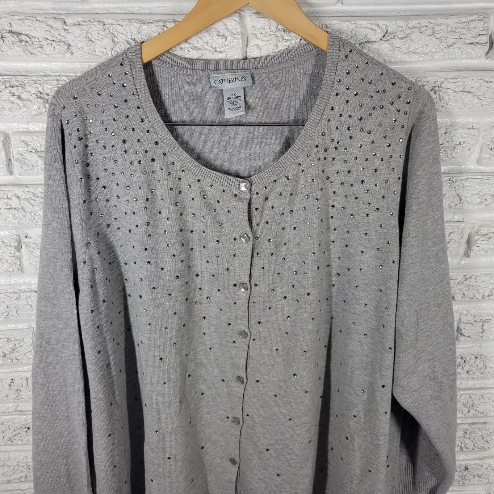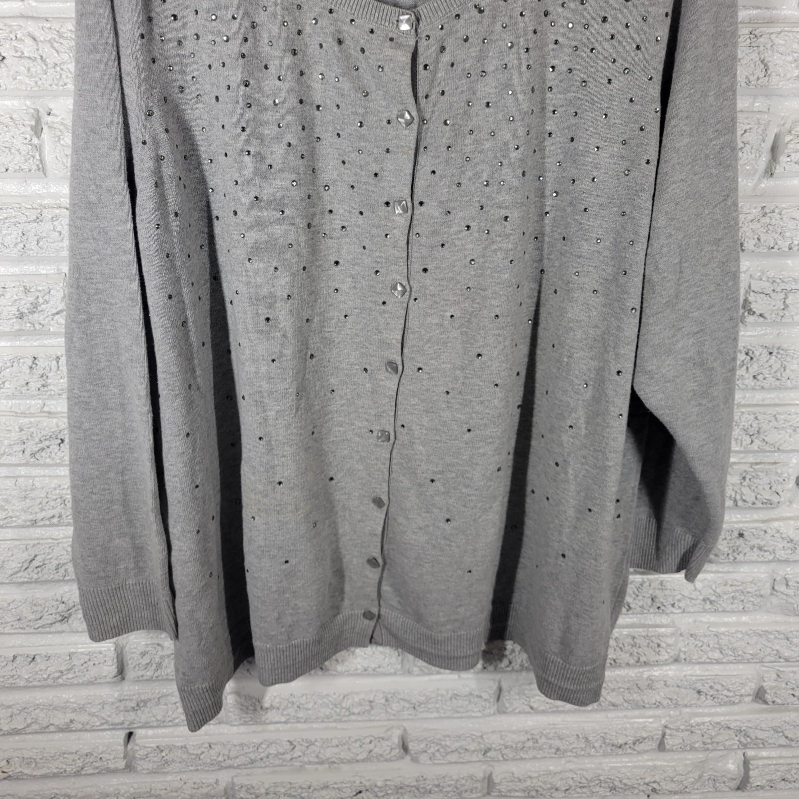 Catherines Womens Sweater 3X Plus Cardigan Gray Rhinestones Casual Comfy Cotton