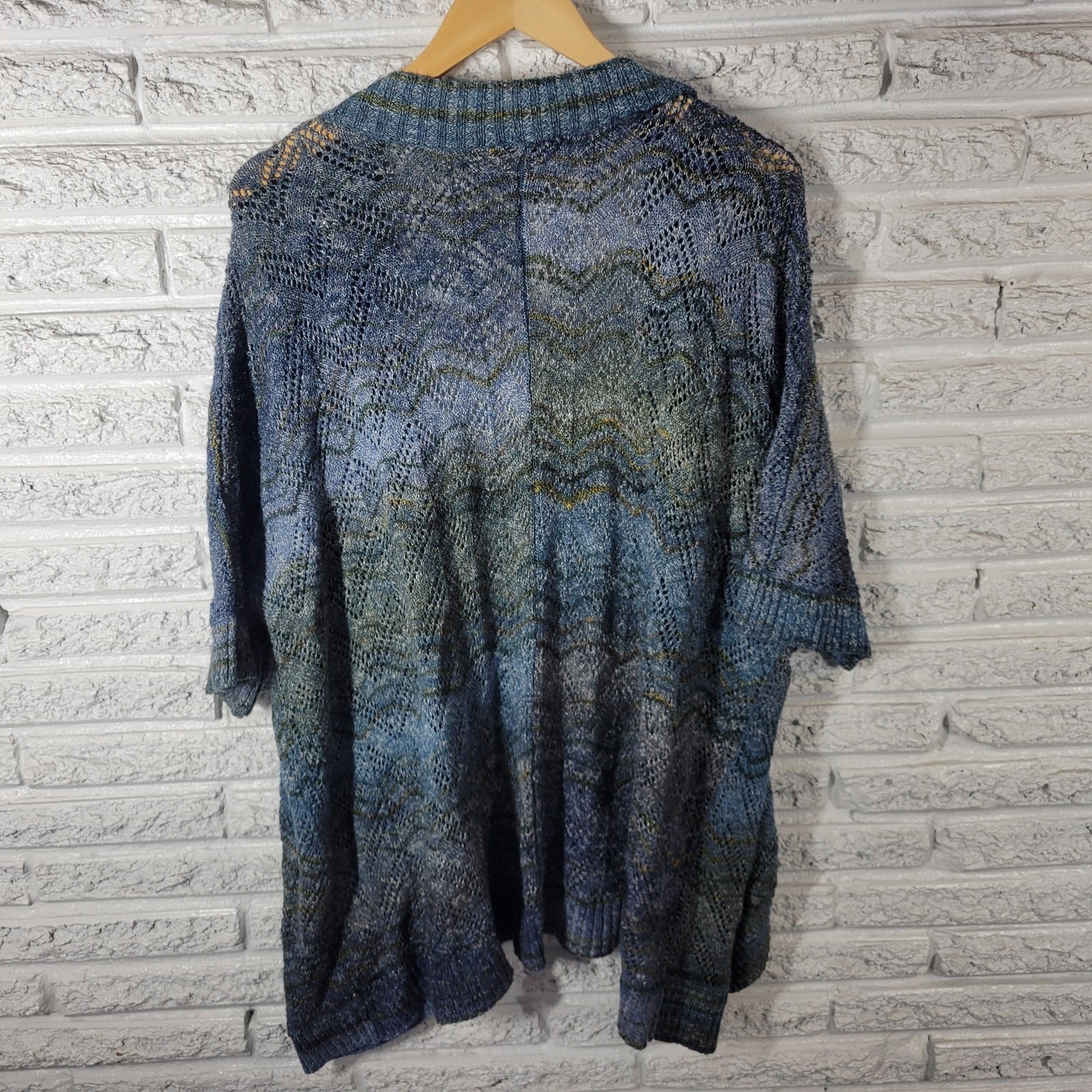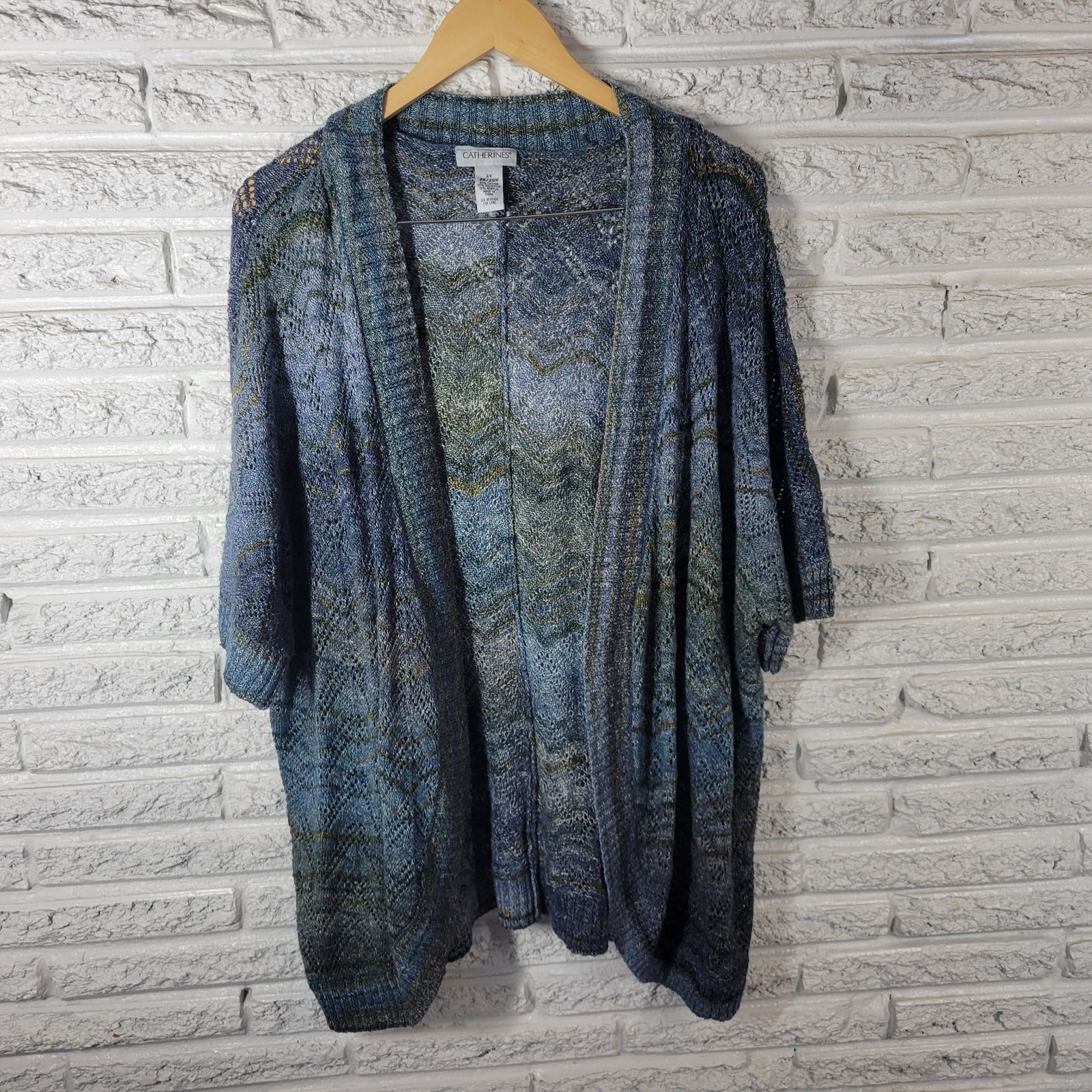 Catherines Womens Sweater 3X Plus Cardigan Open Short Sleeve Blue Cotton Blend