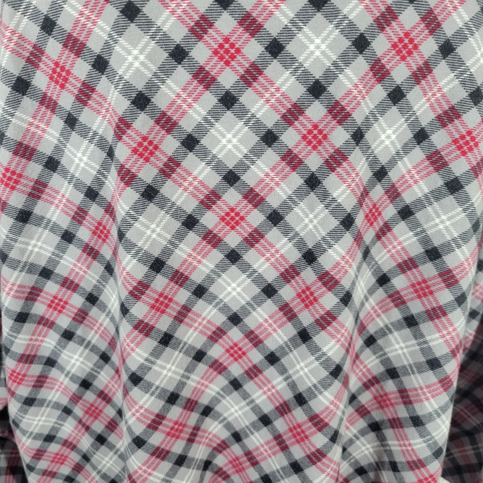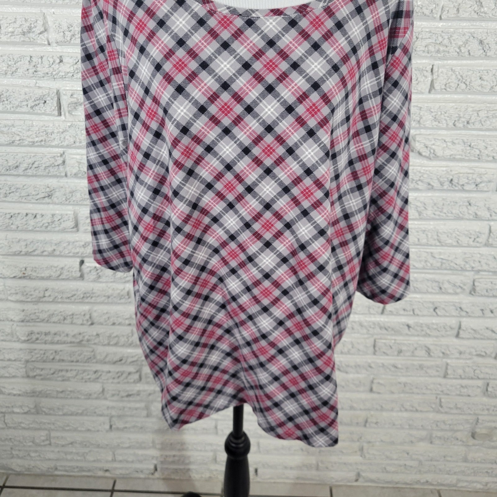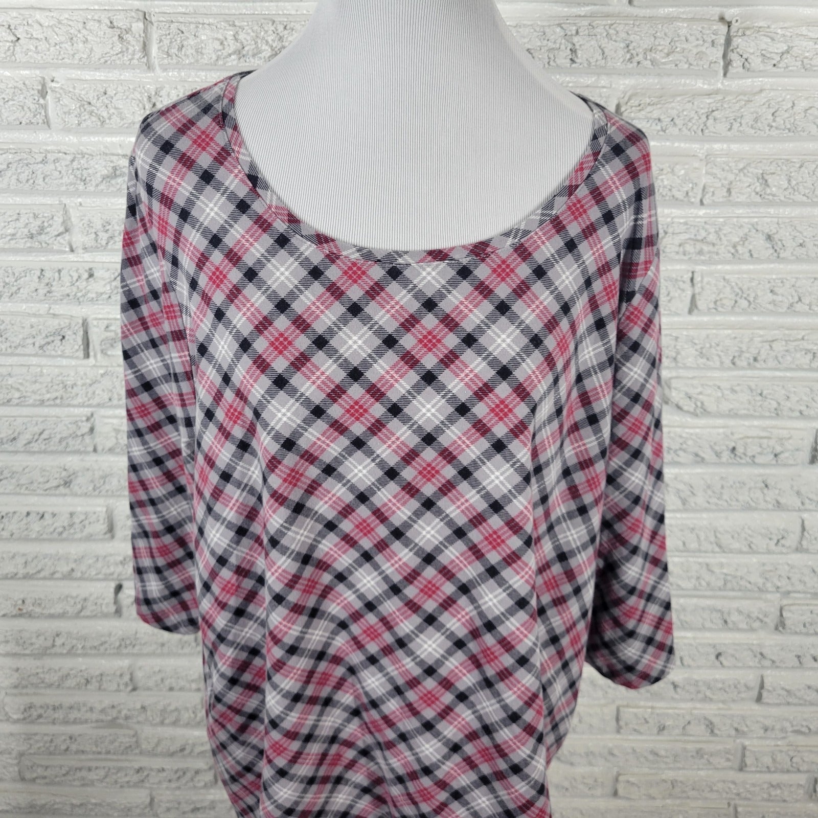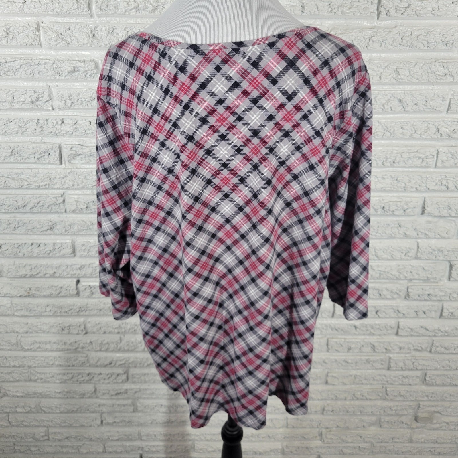 Catherines Womens Top 1X Plus 3/4 Sleeve Gray Red Plaid Casual Cotton Blend