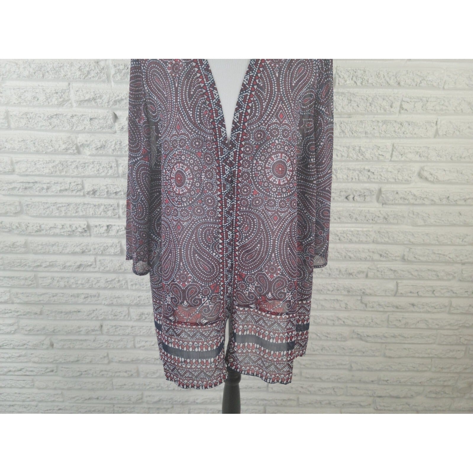 Catherines Womens Top 1X Plus Open Duster Sheer Blue Red Paisley Polyester