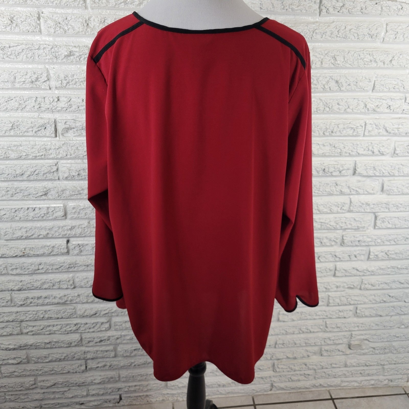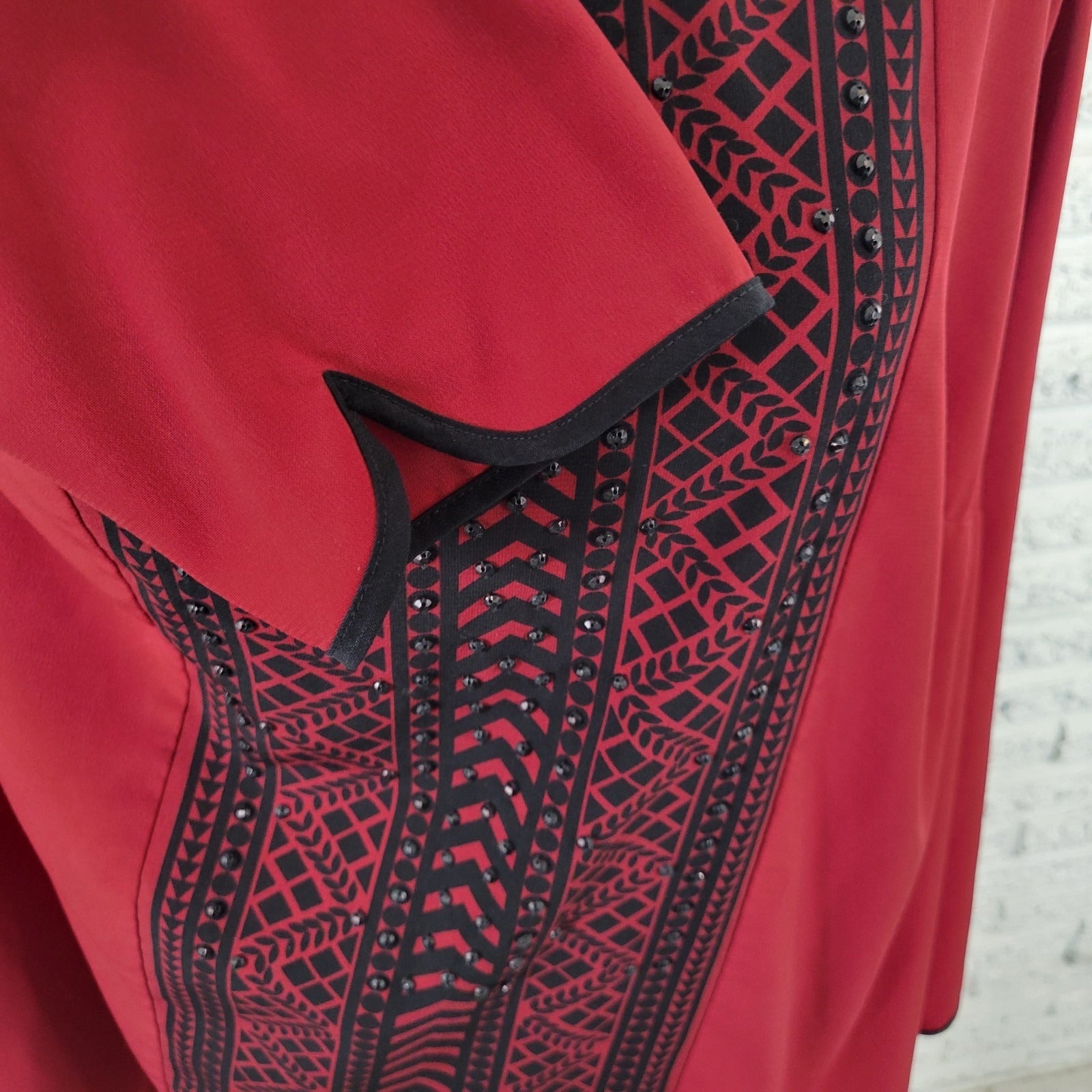 Catherines Womens Top 1X Plus Tunic Red Geometric Keyhole Beaded Poly Blend