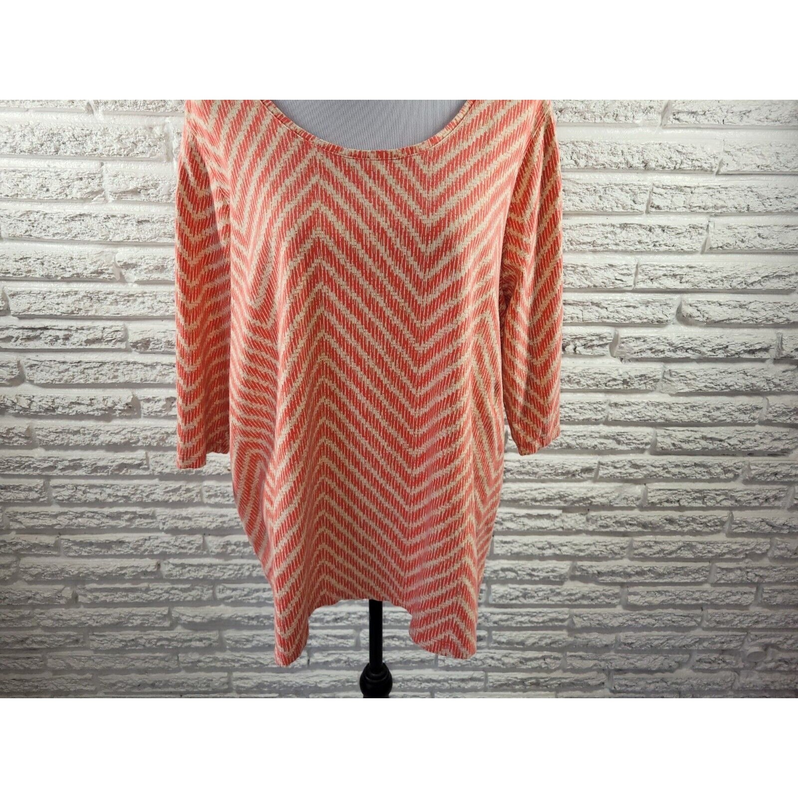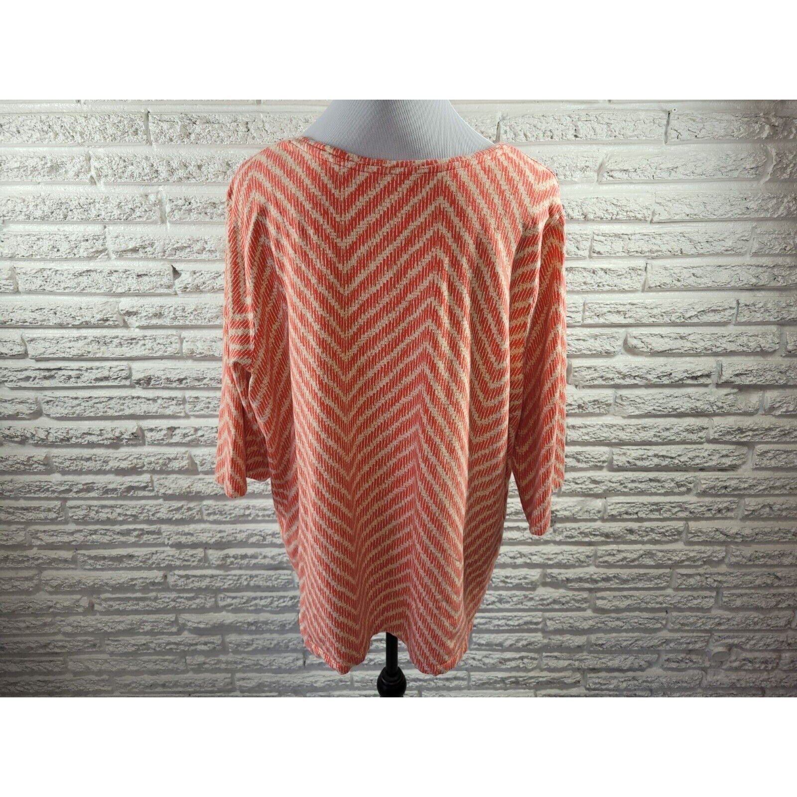 Catherines Womens Top 2X Plus Tee Short Sleeve Zig Zag Pink Cotton Blend