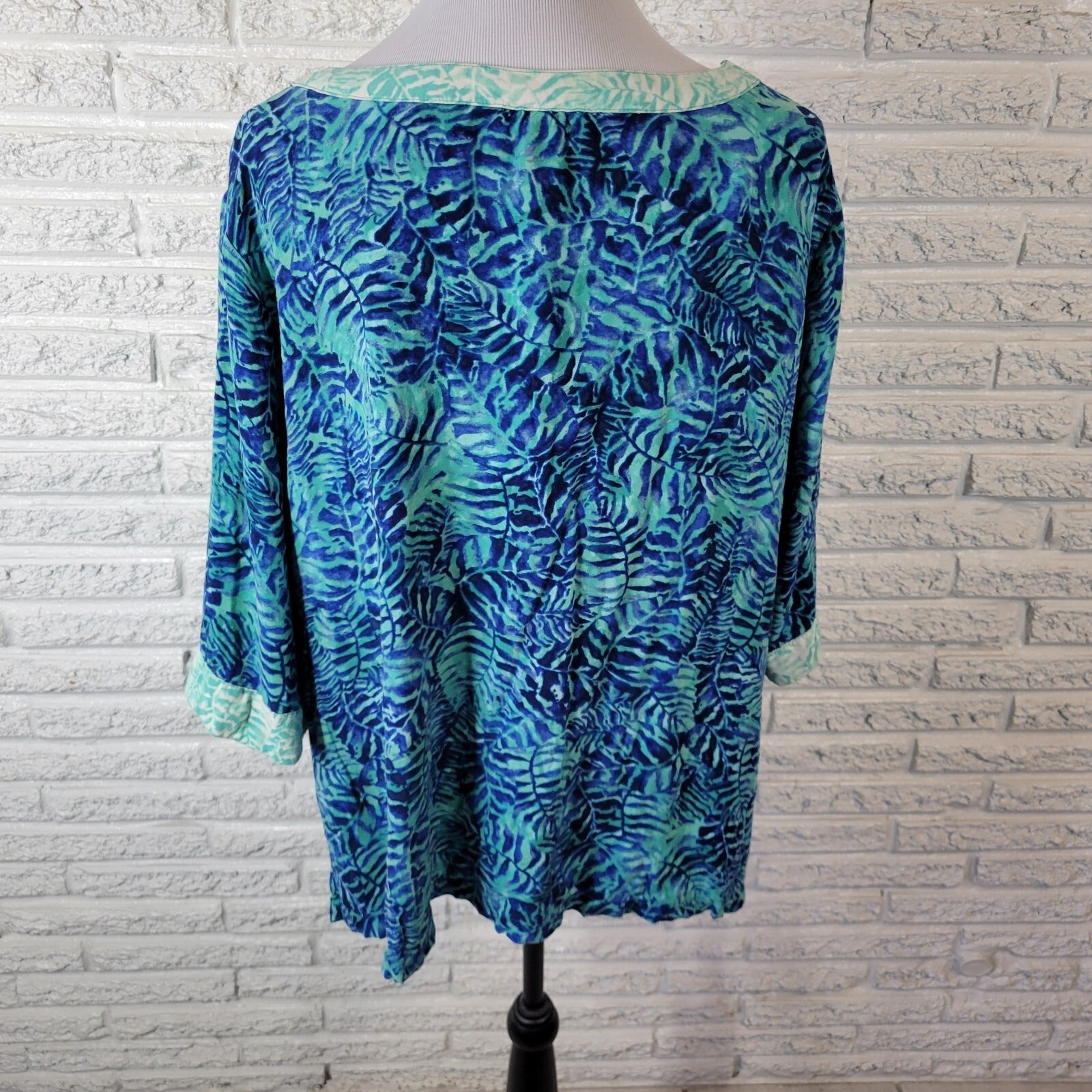 Catherines Womens Top 2XWP Plus Petite 3/4 Sleeve Blue Floral Rayon Lightweight