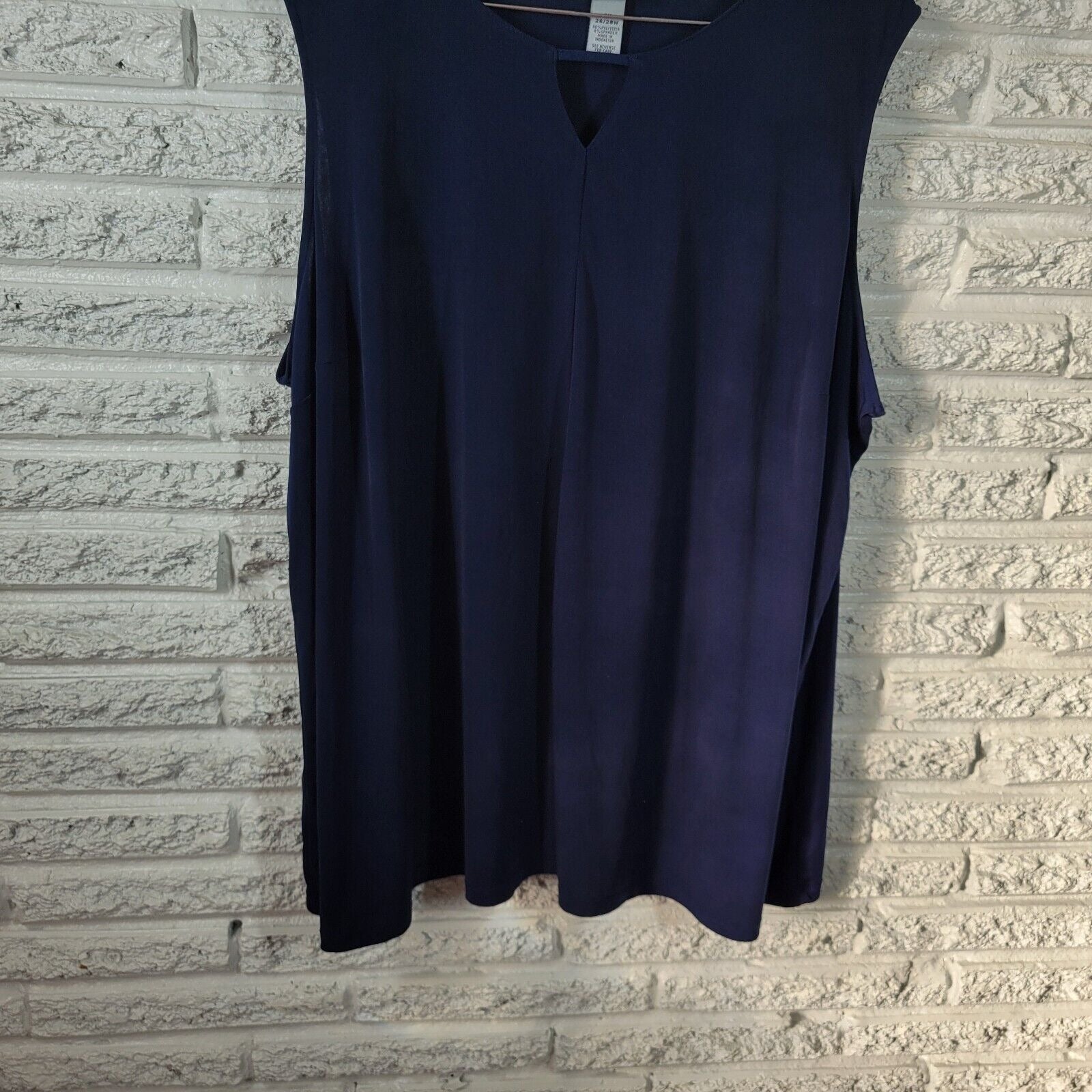 Catherines Womens Top 3X 26W 28W Knit Sleeveless Blue Keyhole Poly Blend Office