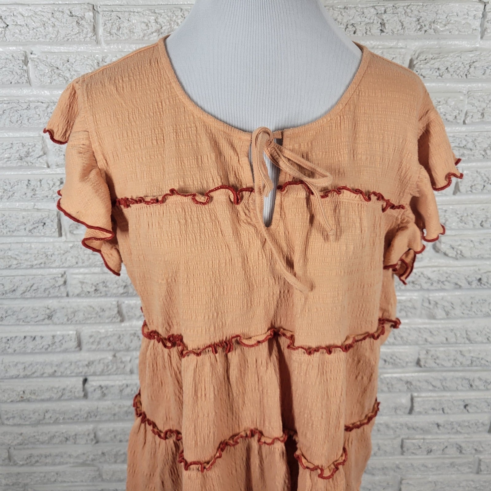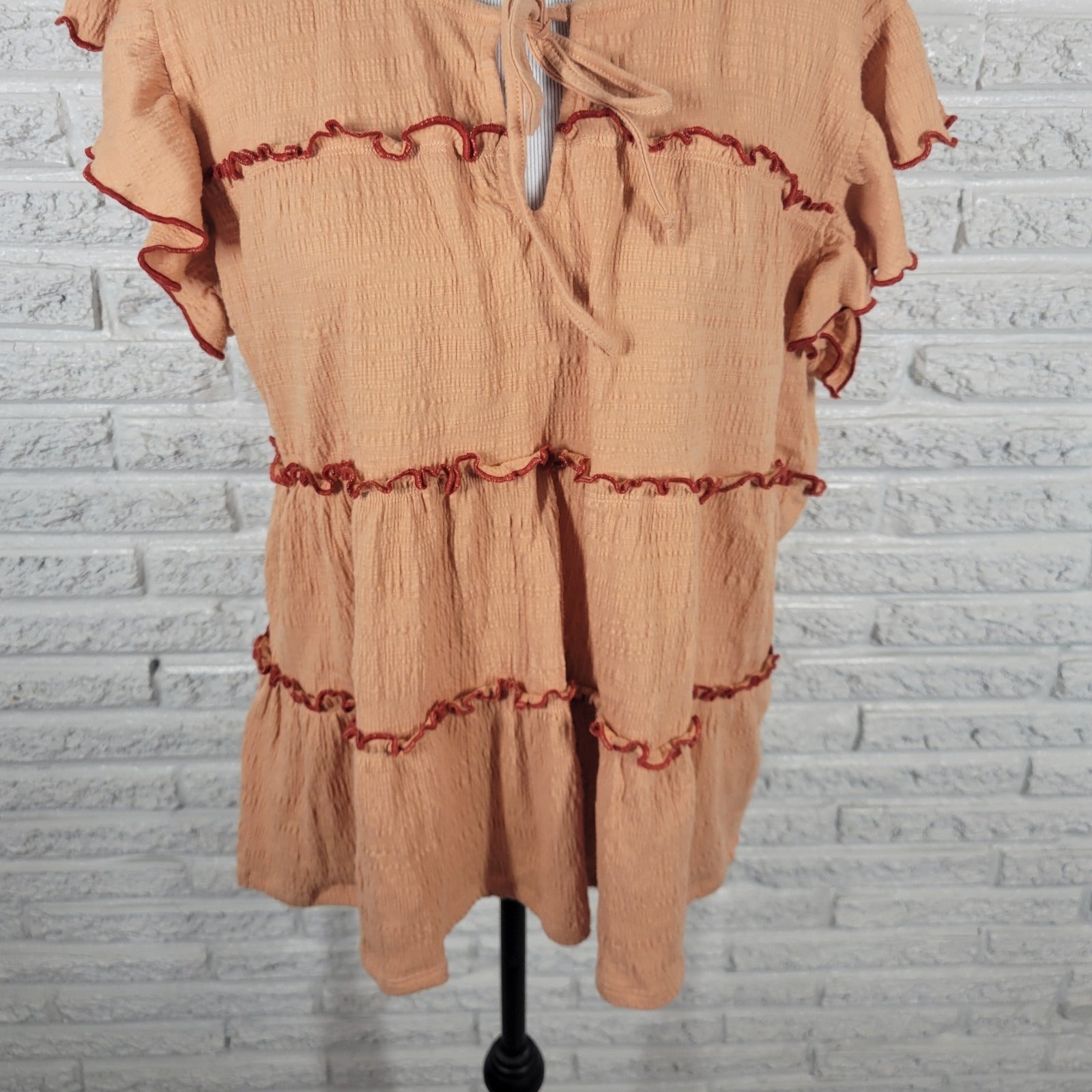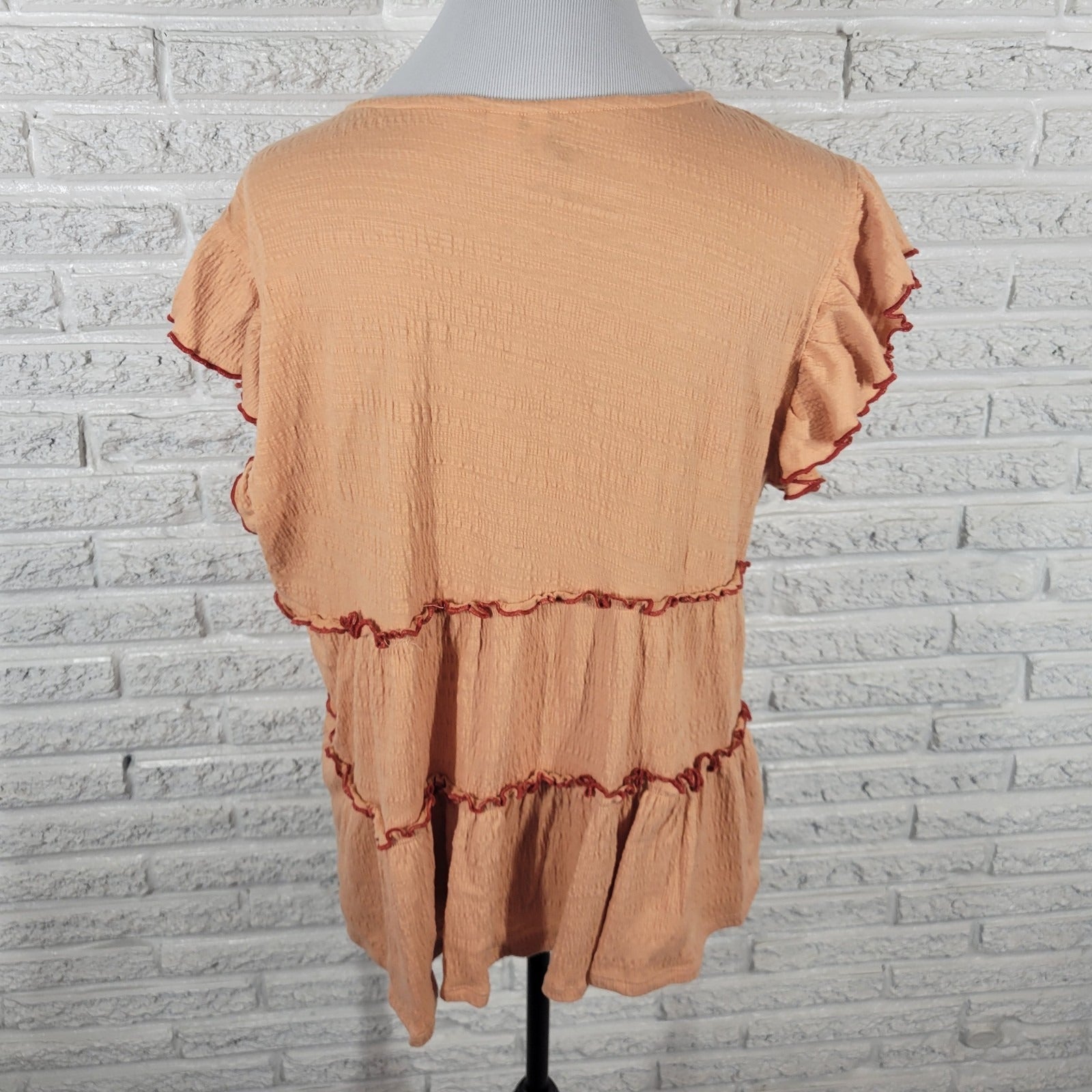 Cato Est 1946 Women Top Extra Large Flutter Sleeve Orange Keyhole Ruffles Casual