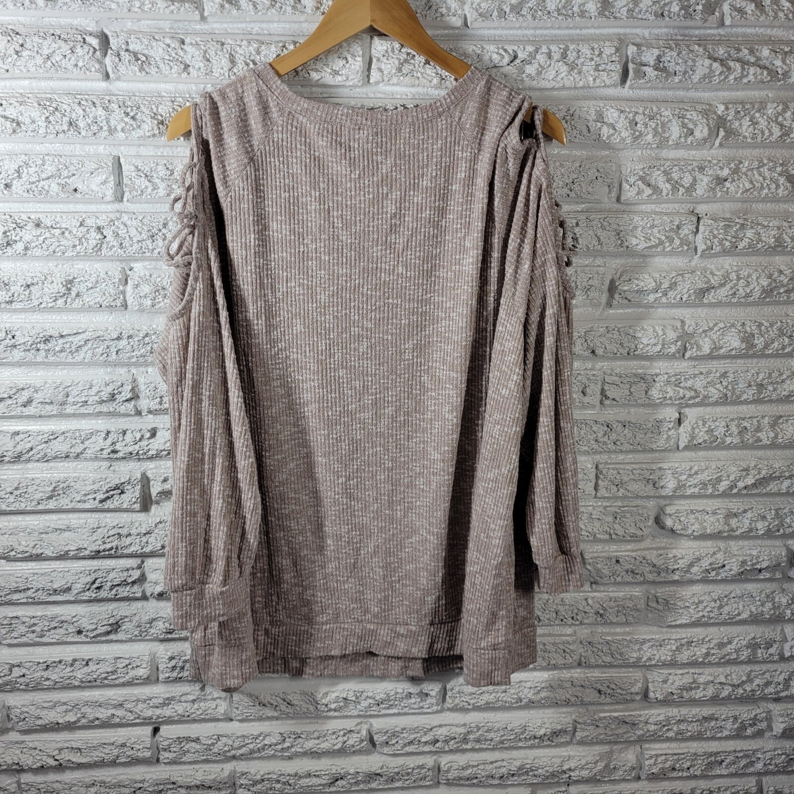 Cato Est 1946 Womens Sweater 22W 24W Lattice Sleeve Beige Lightweight Comfy