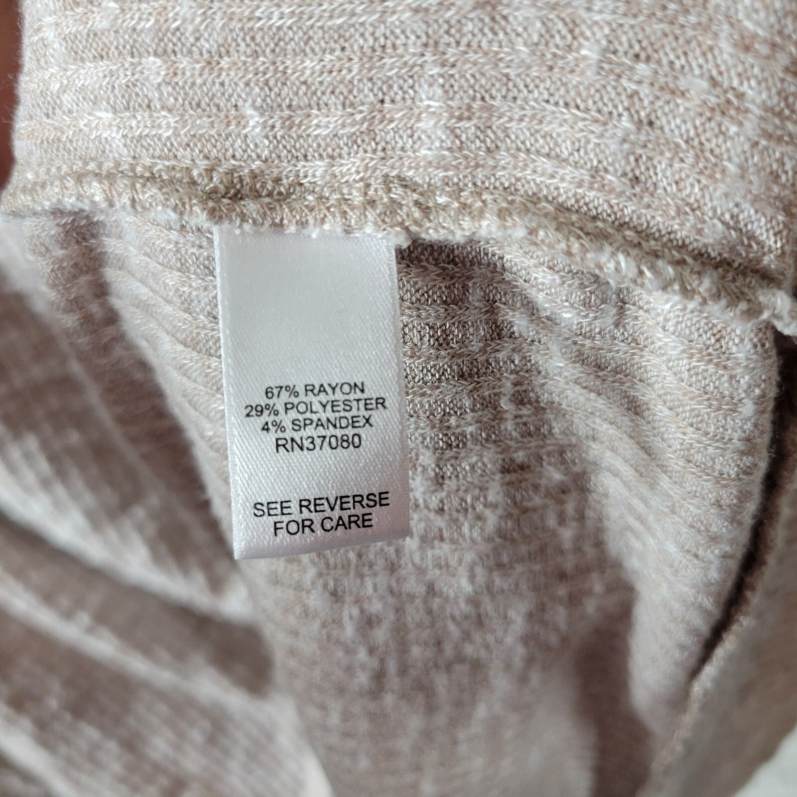 Elevate your casual wardrobe with this lightweight and comfortable Est 1946 women's sweater. The sweater features a solid pattern with a tight-knit fabric type and long sleeves with lattice detailing. It comes in a beautiful beige color that is perfect for all seasons.   This sweater is made of a blend of polyester, spandex, and rayon, making it stretchy and machine washable for easy care. It has a crew neck and a regular fit, perfect for plus-sized women. The sweater is perfect for casual occasions and can be worn in any season, including winter, summer, fall, and spring.