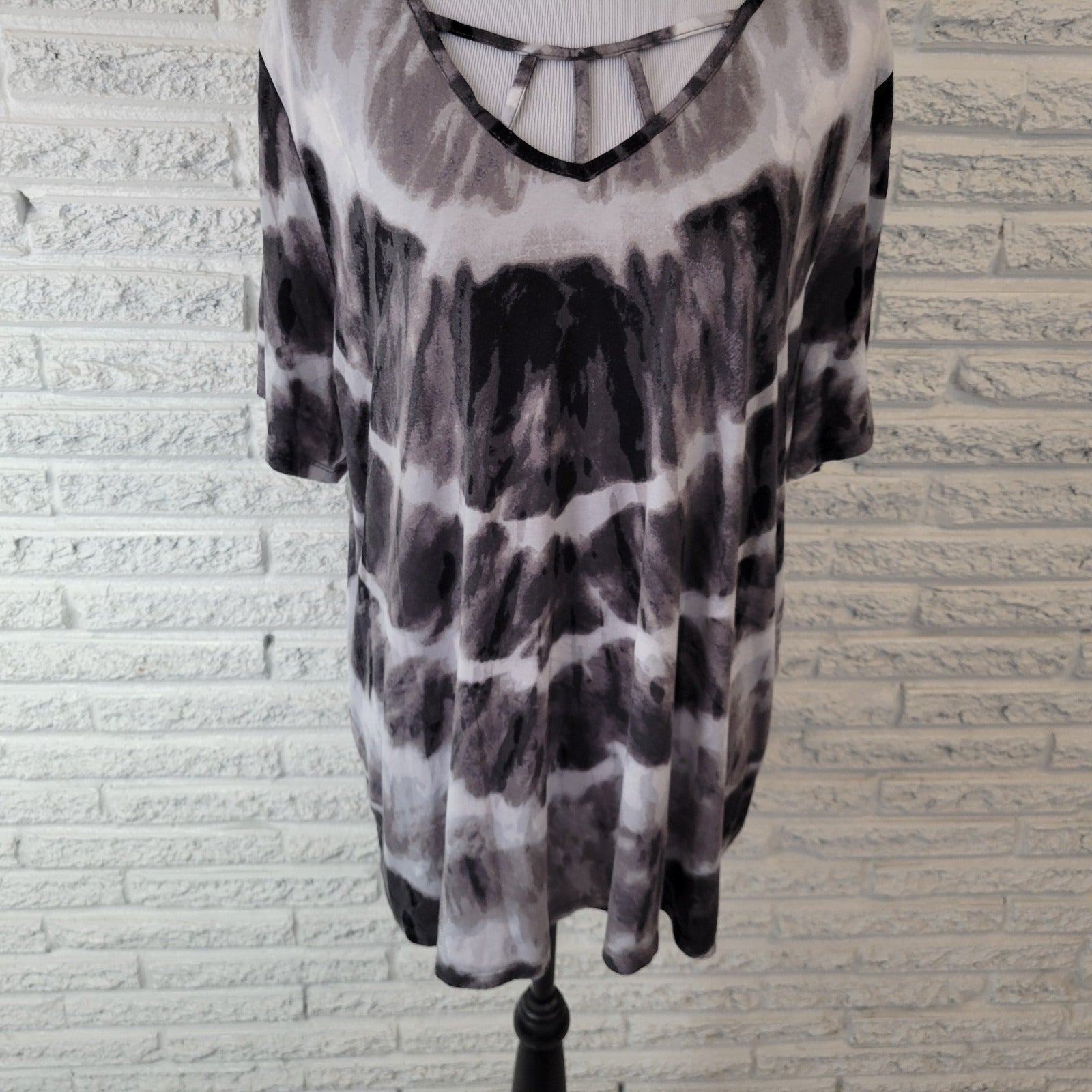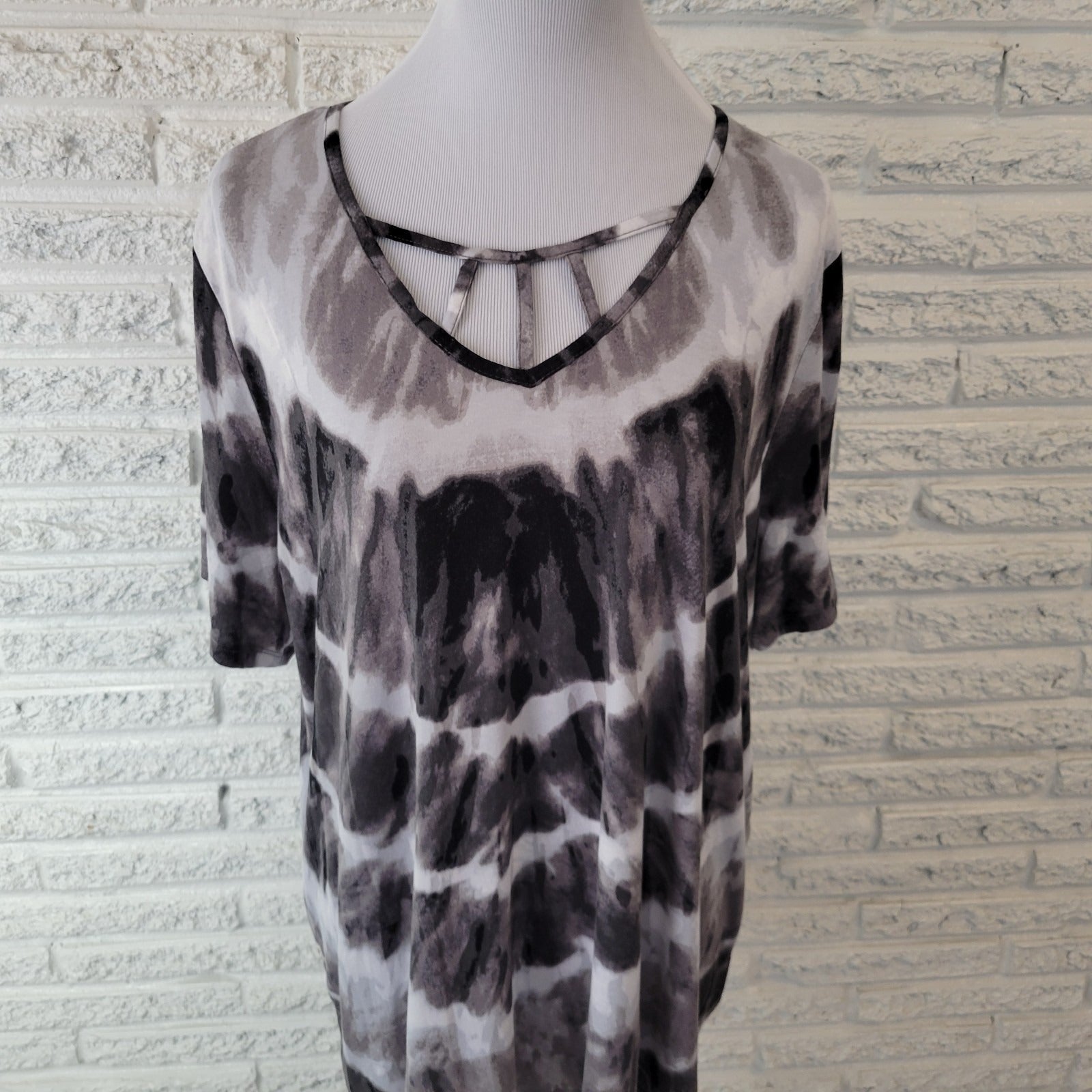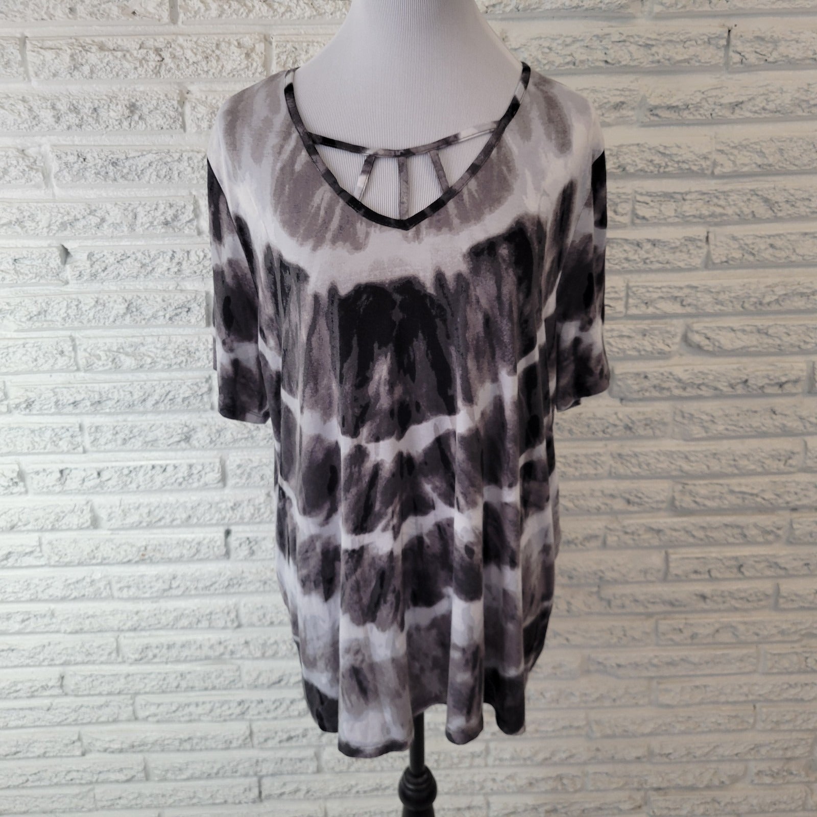 Cato Est 1946 Womens Top 18W 20W Plus Tee Short Sleeve Lattice Neck Gray Tie Dye