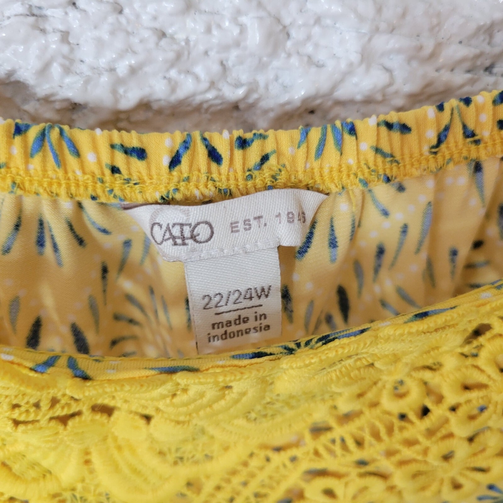 Cato Est 1946 Womens Top 22W 24W Cold Shoulder Yellow Starburst Lace Trim Comfy