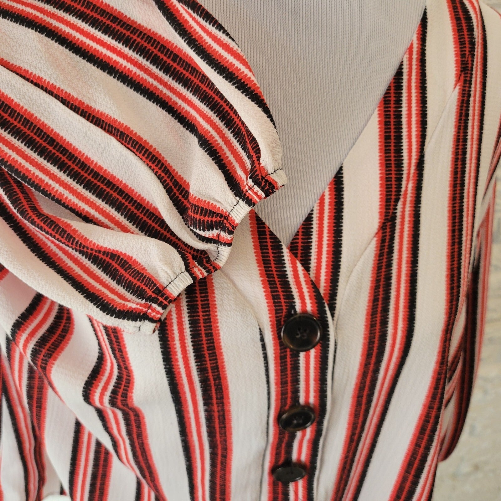This Cato Est 1946 women's top in XL size is a stylish and versatile addition to any wardrobe. The pink and black striped design gives it a fun and classic look, perfect for casual or travel occasions. Made from a comfortable polyester blend knit fabric, this top features 3/4 sleeves and a quarter button closure for easy wear. With a lightweight and breathable feel, this top is suitable for all seasons, making it a must-have for any fashion-forward woman.