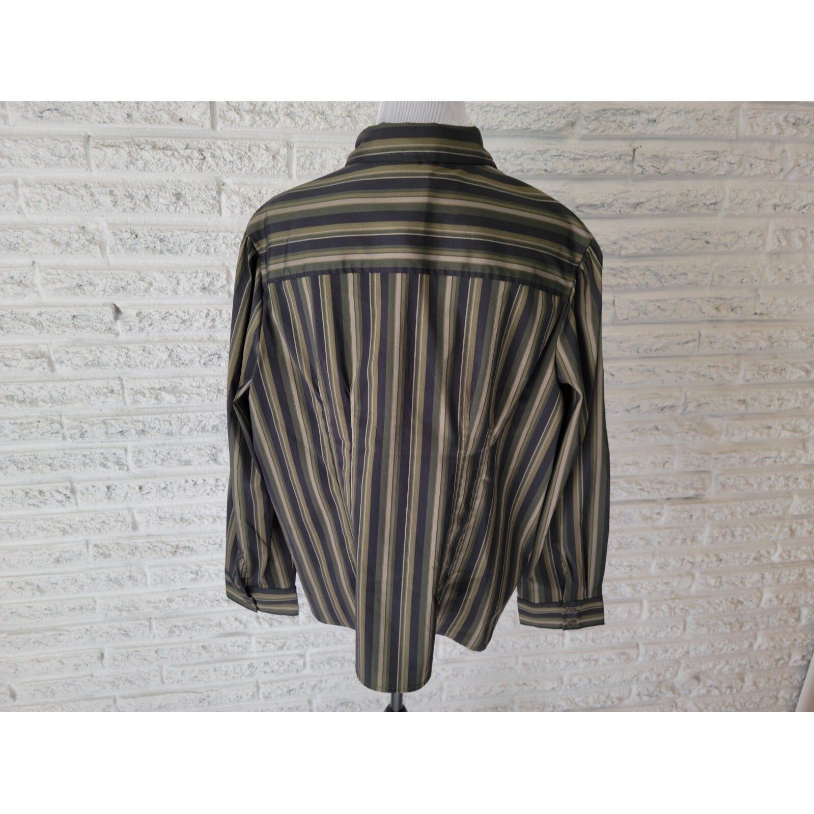Cato Womens Shirt 18W 20W Plus Collar Button Up Green Stripe Office Casual