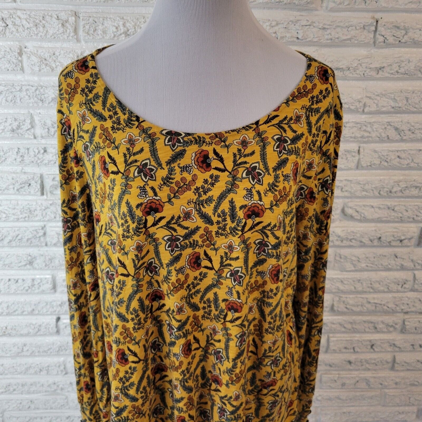 Cato Womens Top 18W 20W Long Sleeve Gold Orange Floral Cotton Blend Lightweight