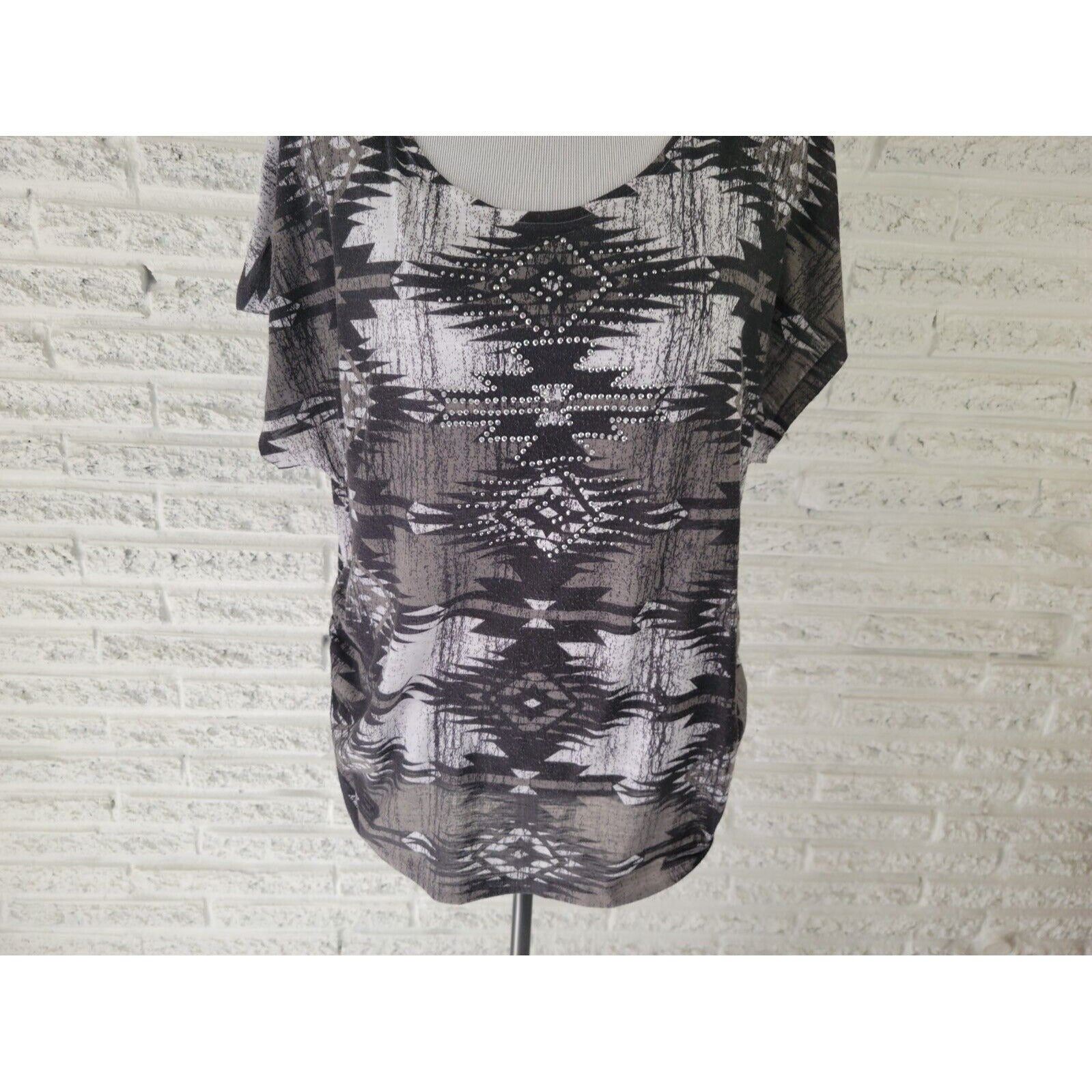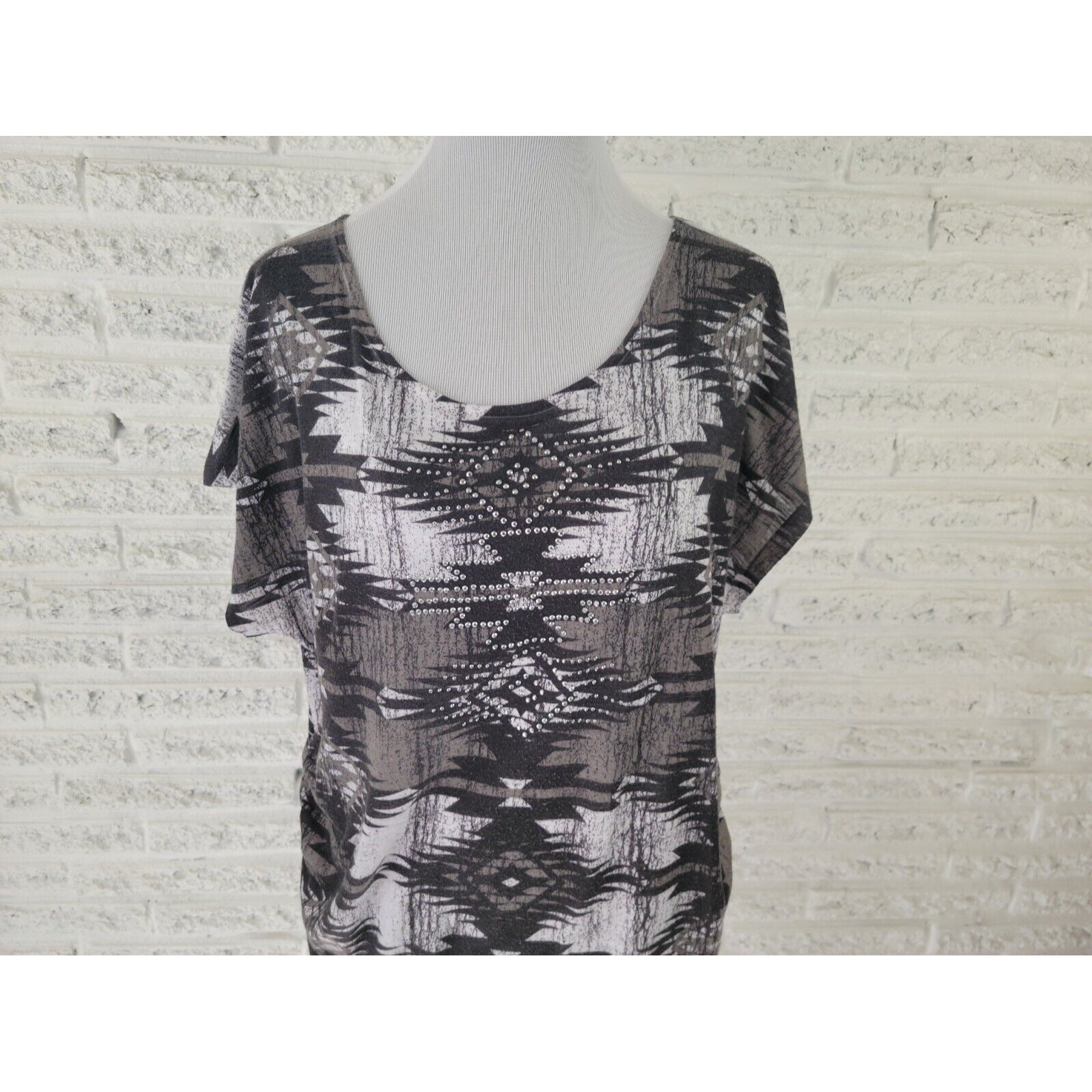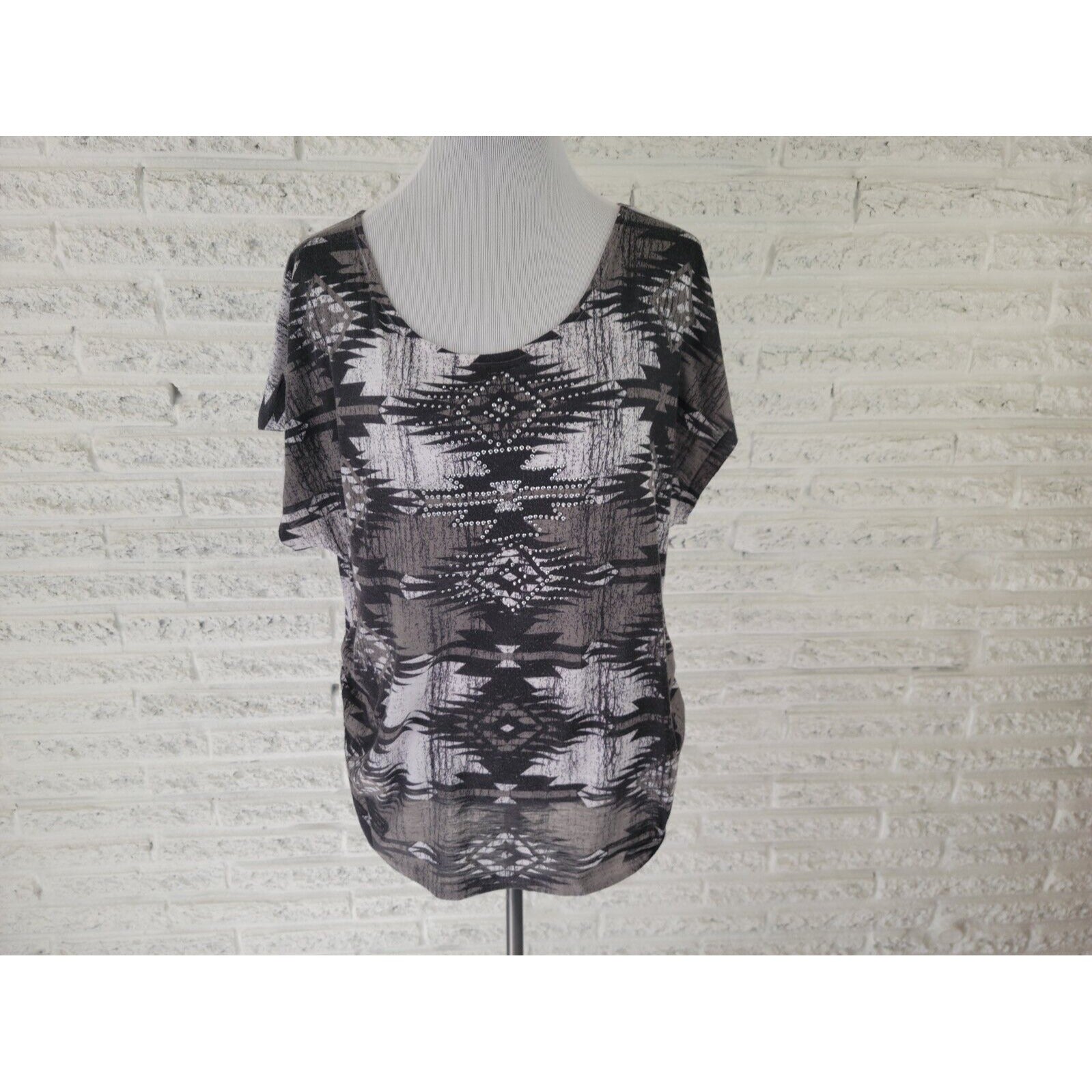 Cato Womens Top 18W 20W Plus Short Sleeve Pullover Studded Black Geometric