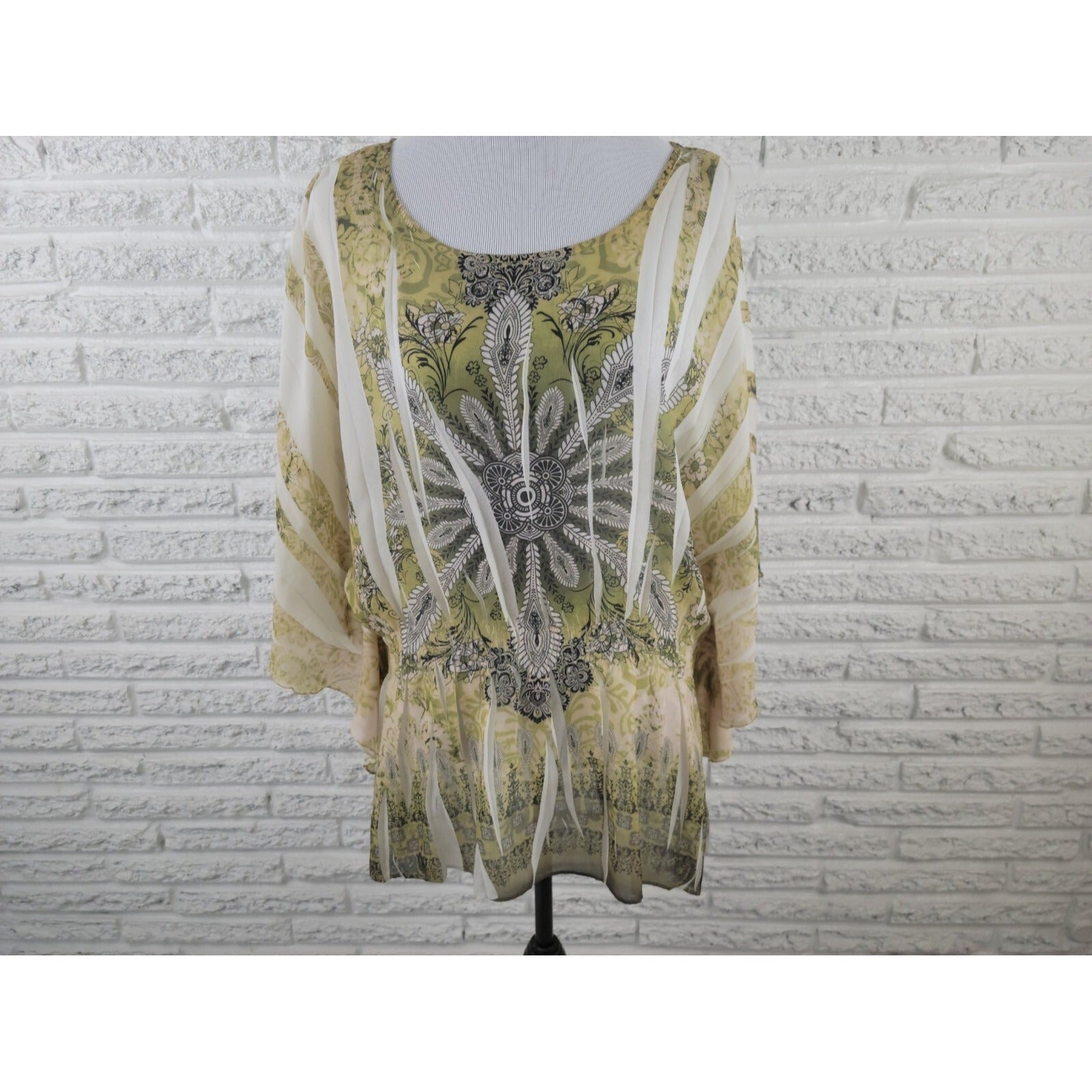 Cato Womens Top 18W 20W Plus Tunic Batwing Sleeve Sheer Green Floral Comfy
