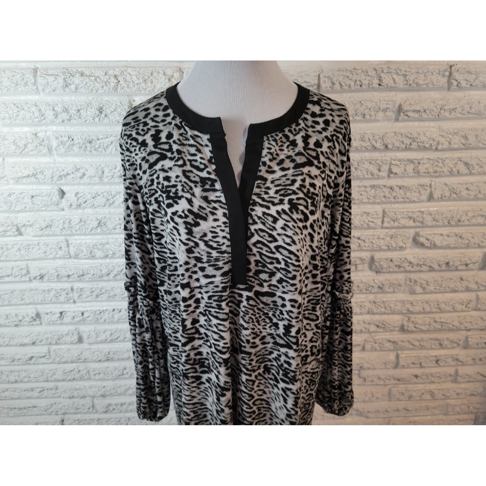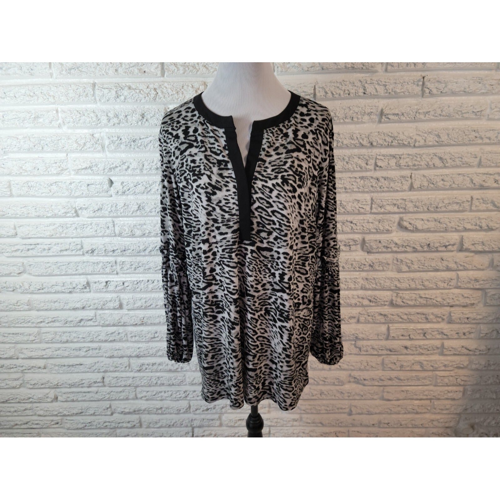 Cato Womens Top 18W 20W Plus Tunic Knit Black Gray Animal Print Long Ruffle